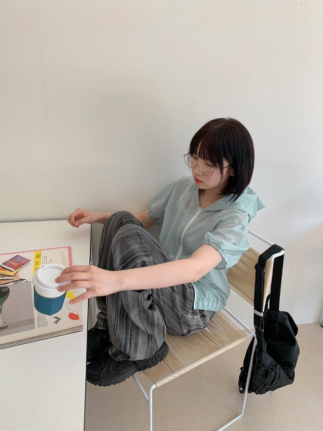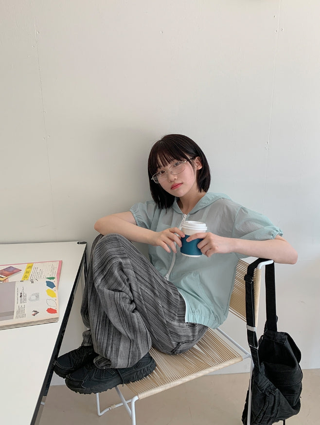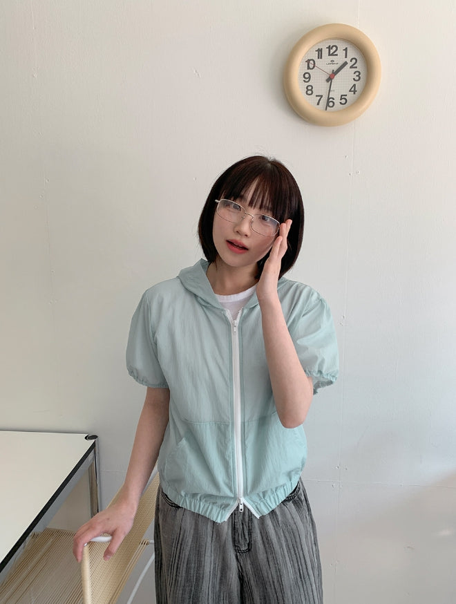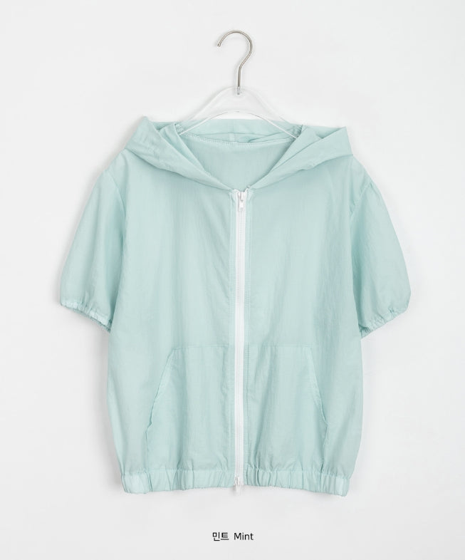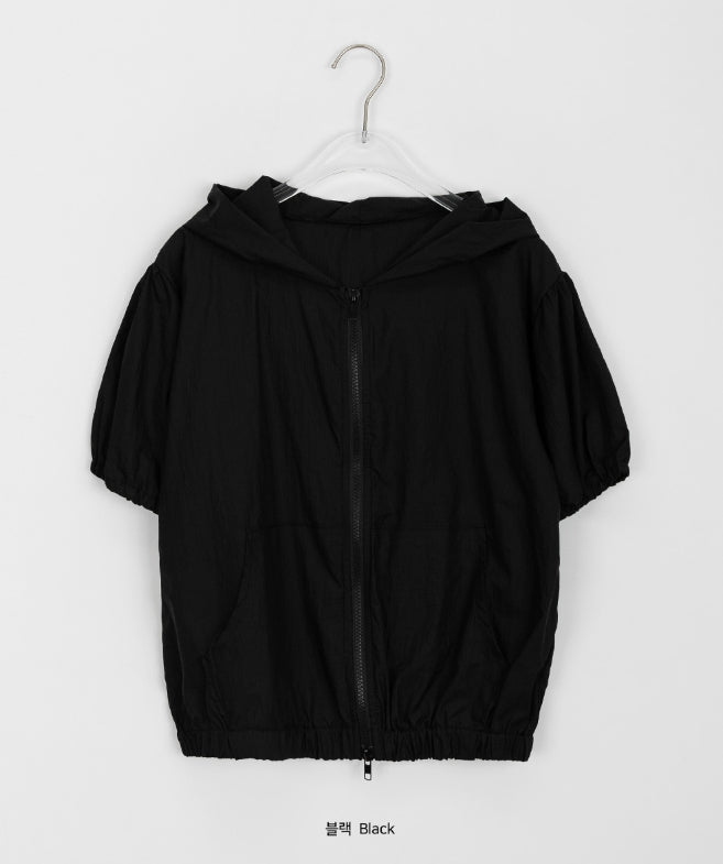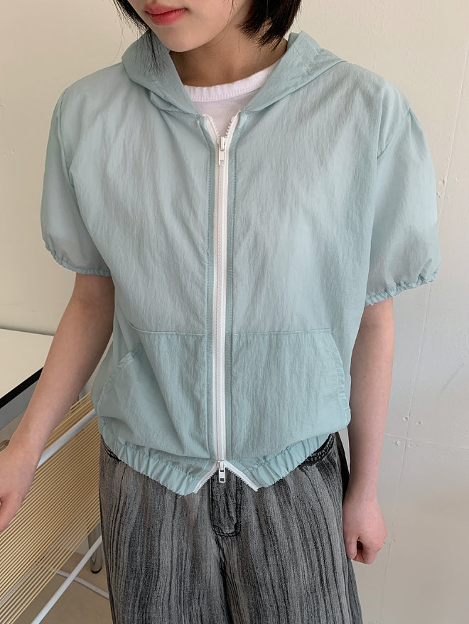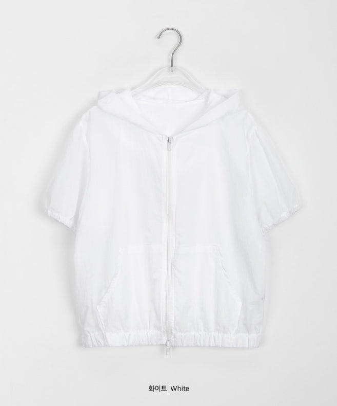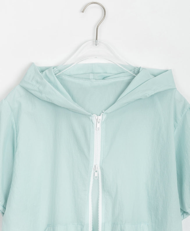 トリニツーウェイナイロン半袖ウィンドフードジップアップパーカー