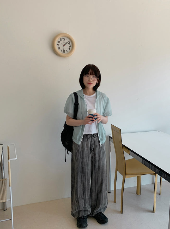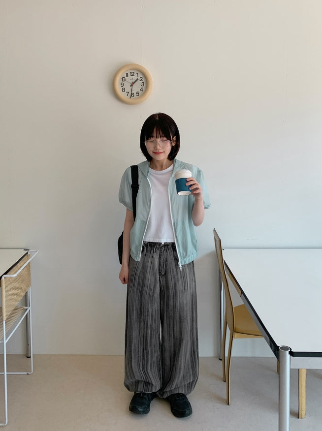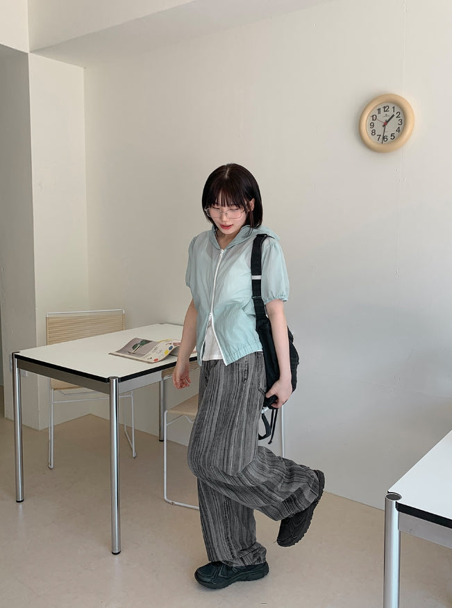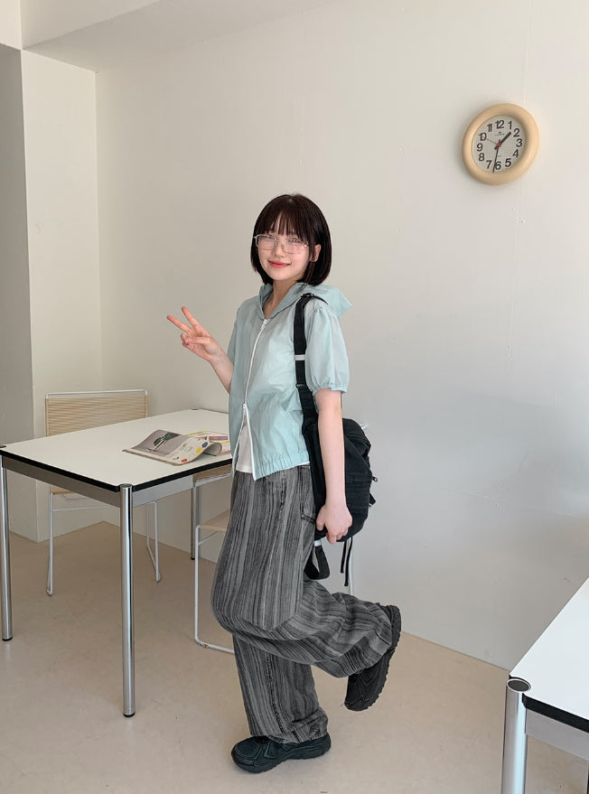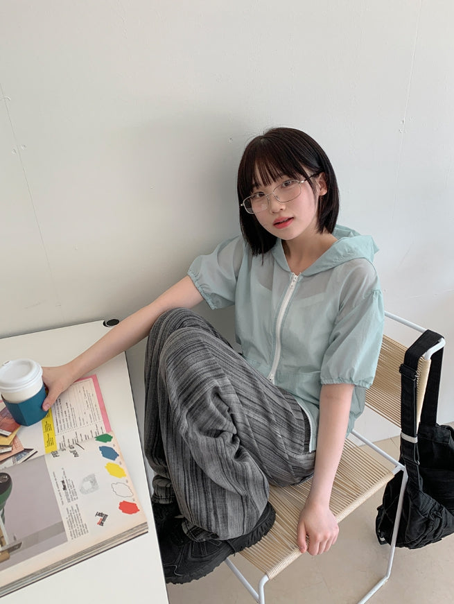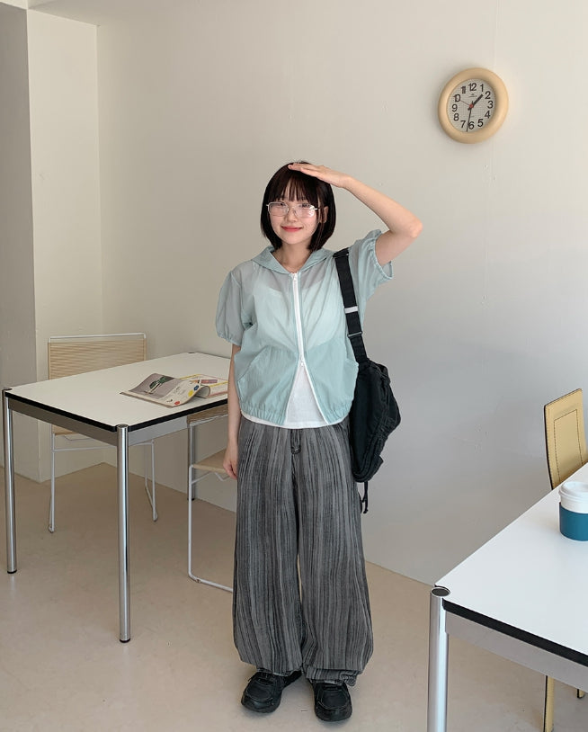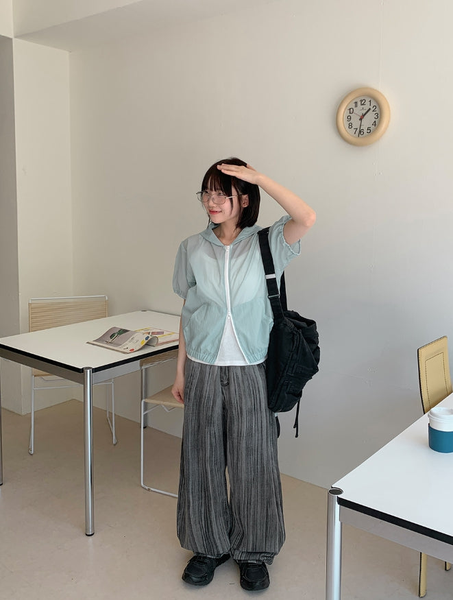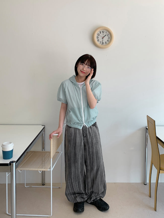 トリニツーウェイナイロン半袖ウィンドフードジップアップパーカー