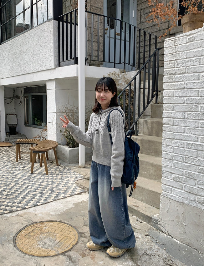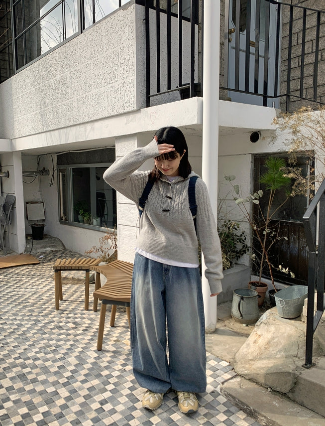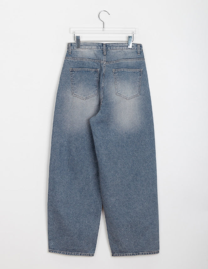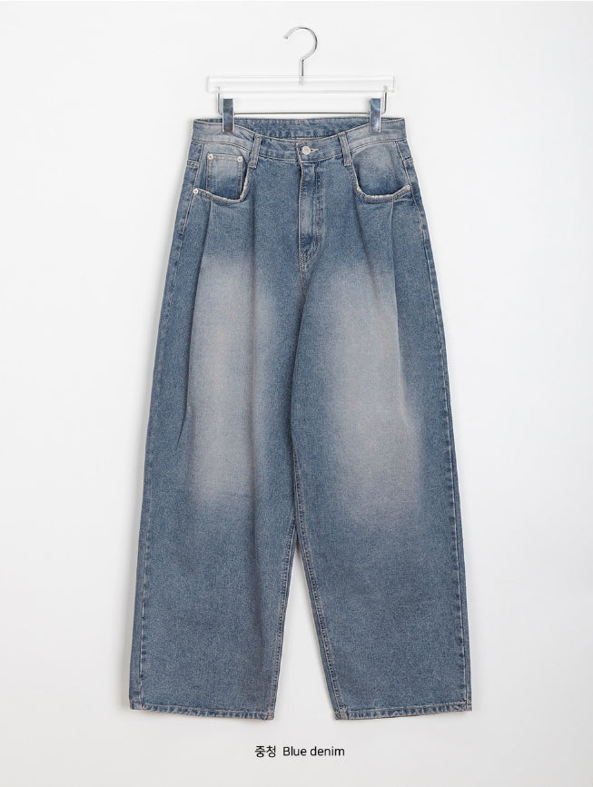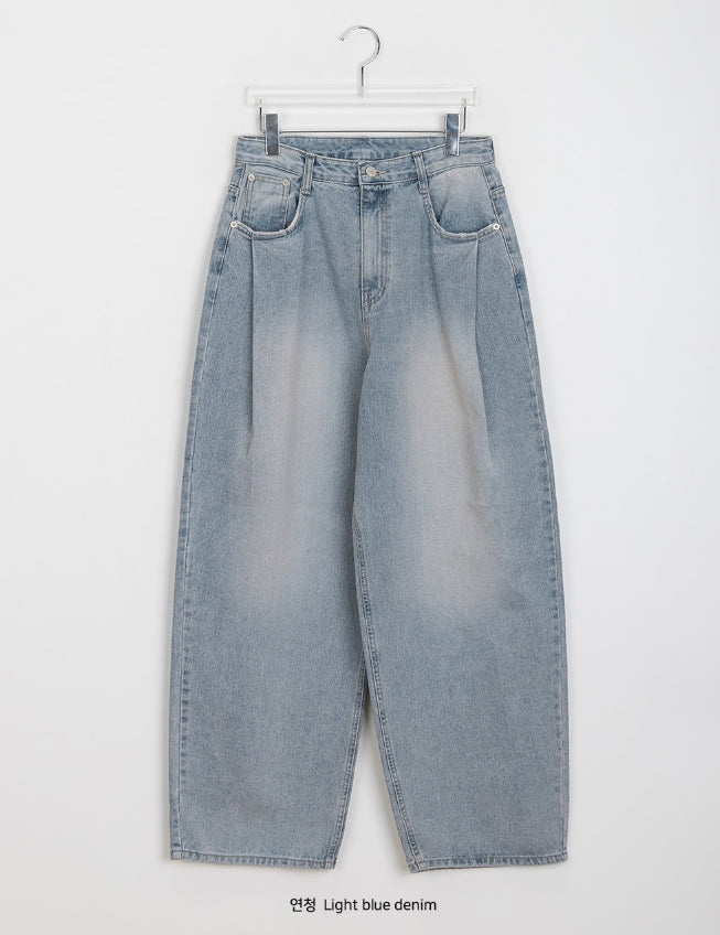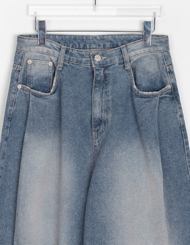 トロピンタックウォッシュ加工オーバーデニムパンツ
