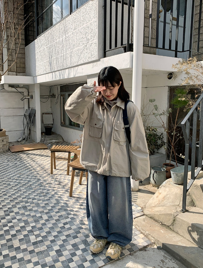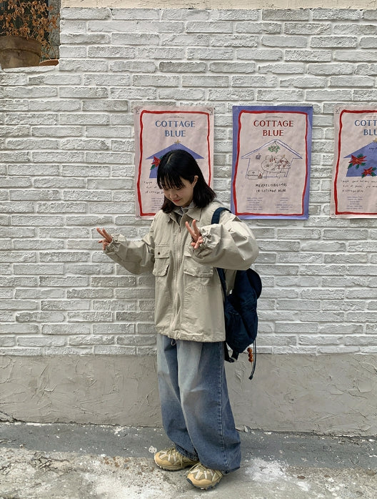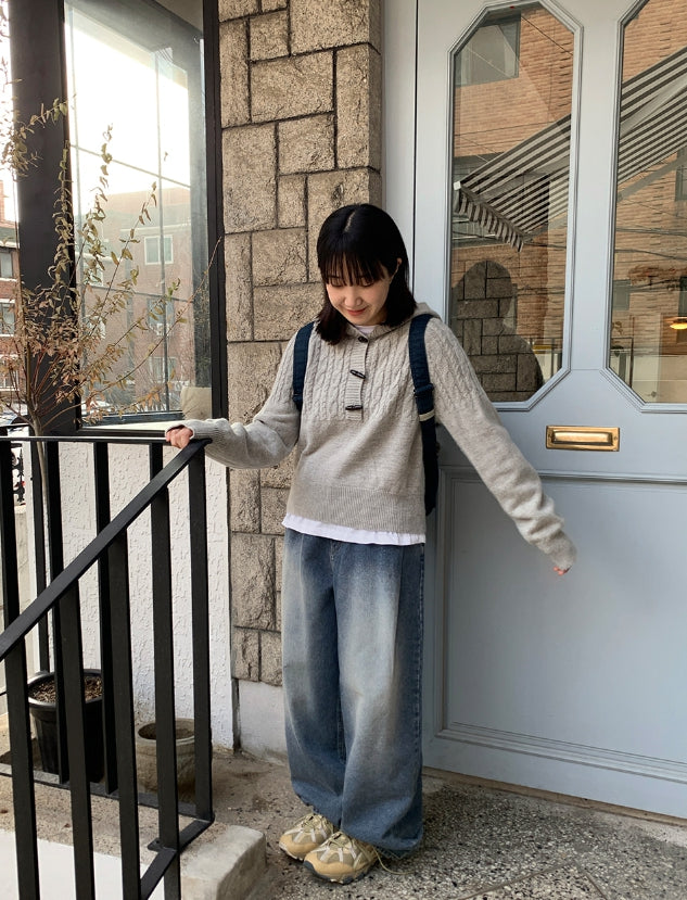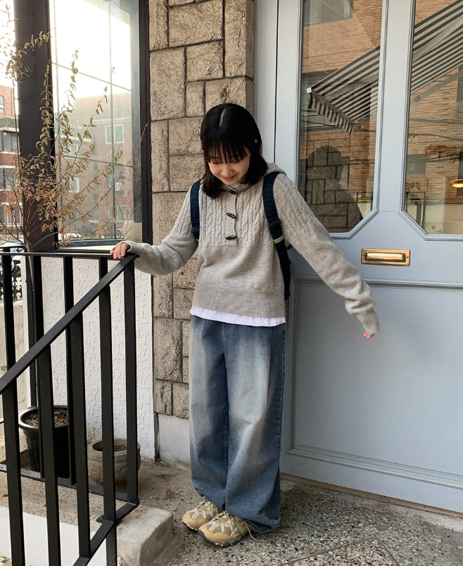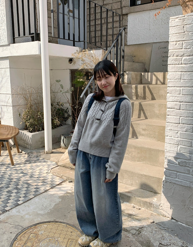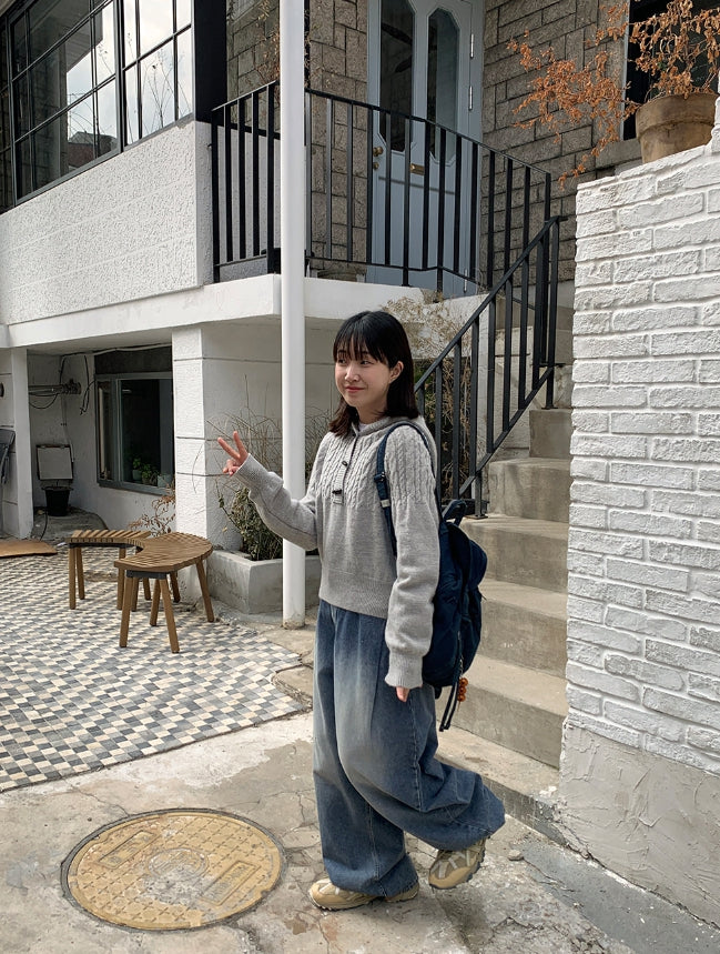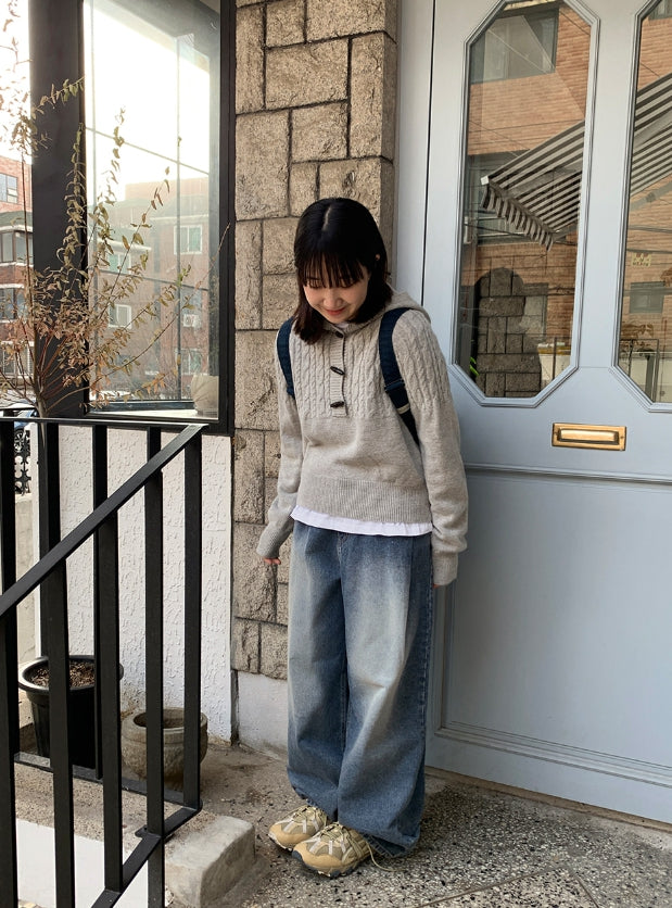 トロピンタックウォッシュ加工オーバーデニムパンツ