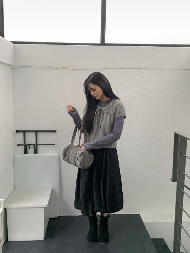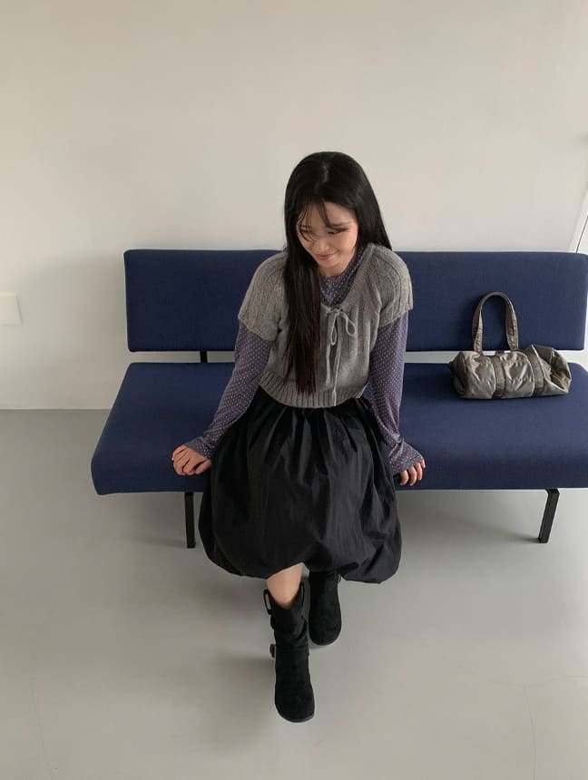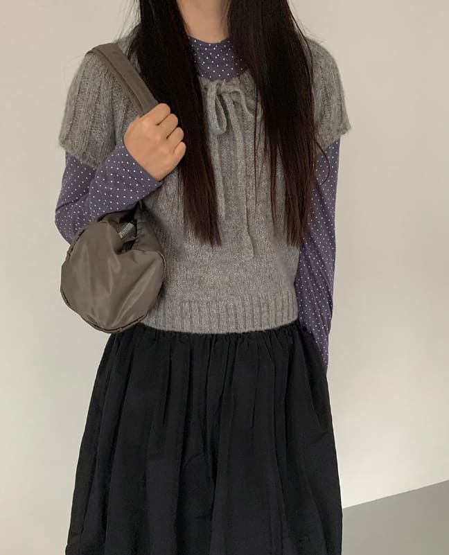 Trin Ribbon Rib Wool Round Short Sleeve Knit