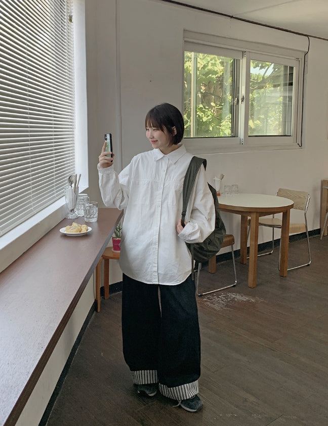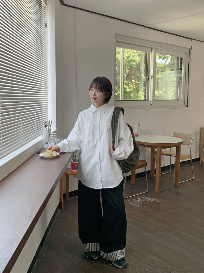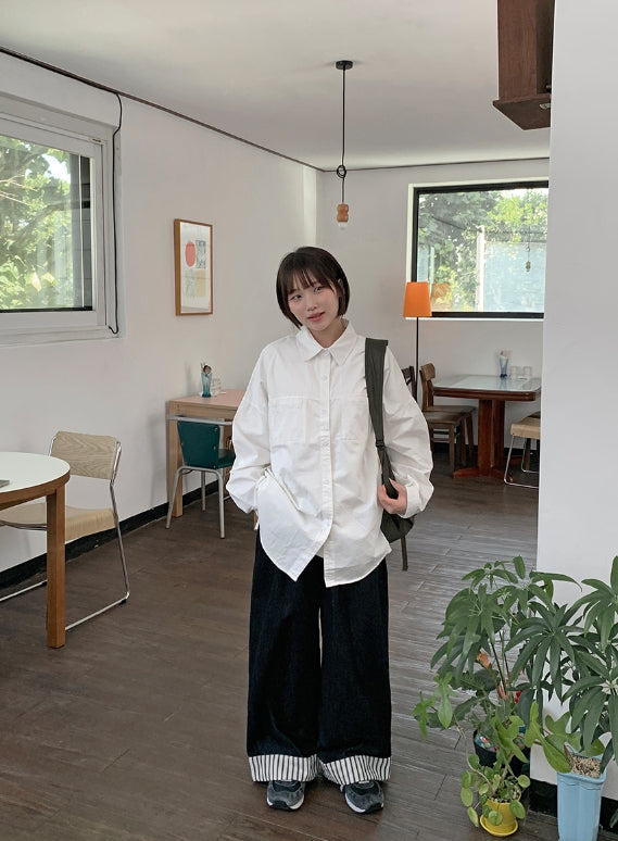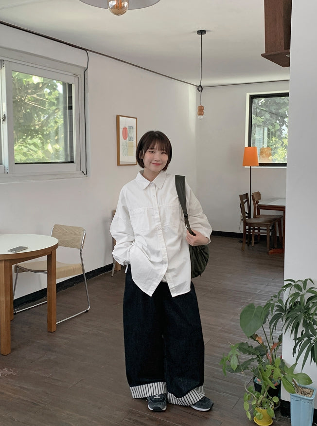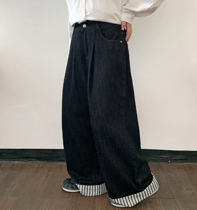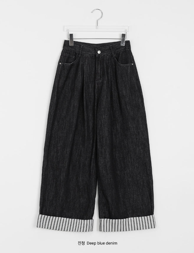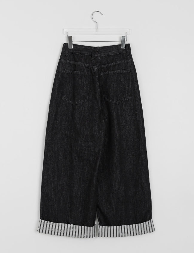 Tsumira Stripe Roll-Up Wide Denim Pants