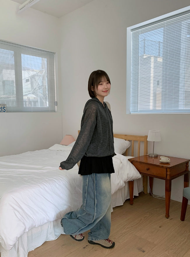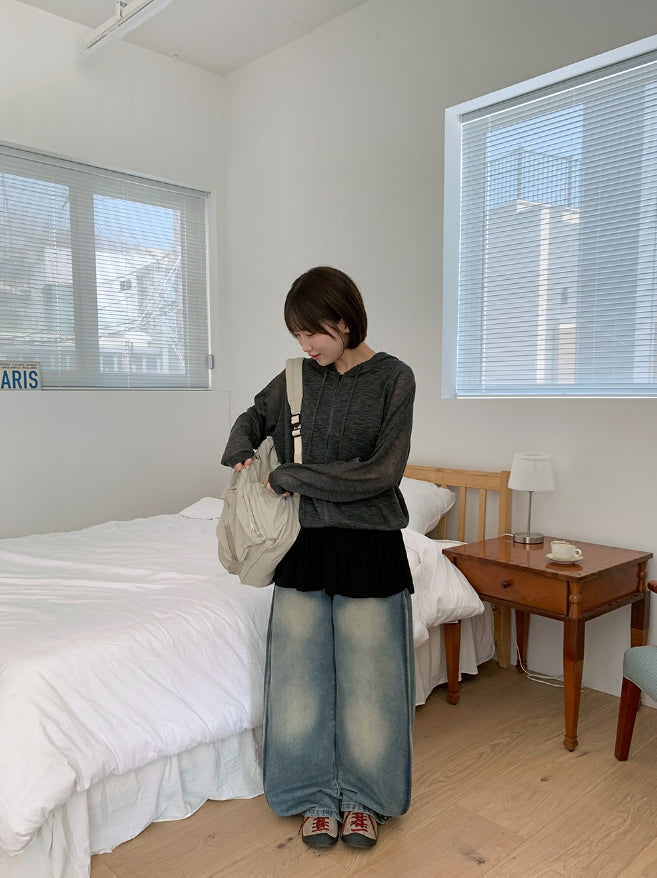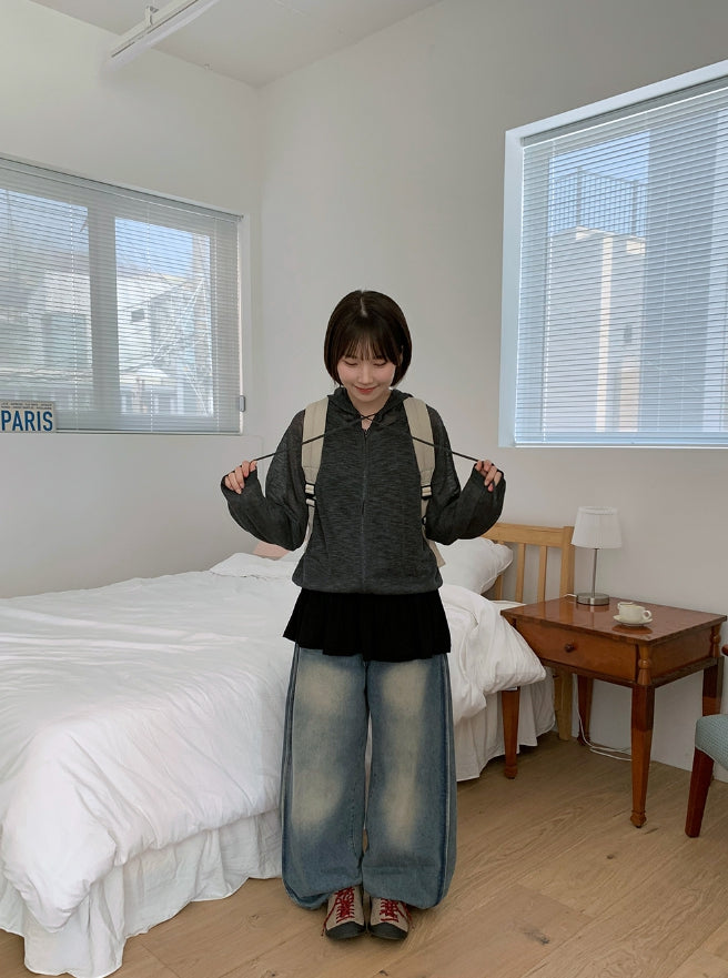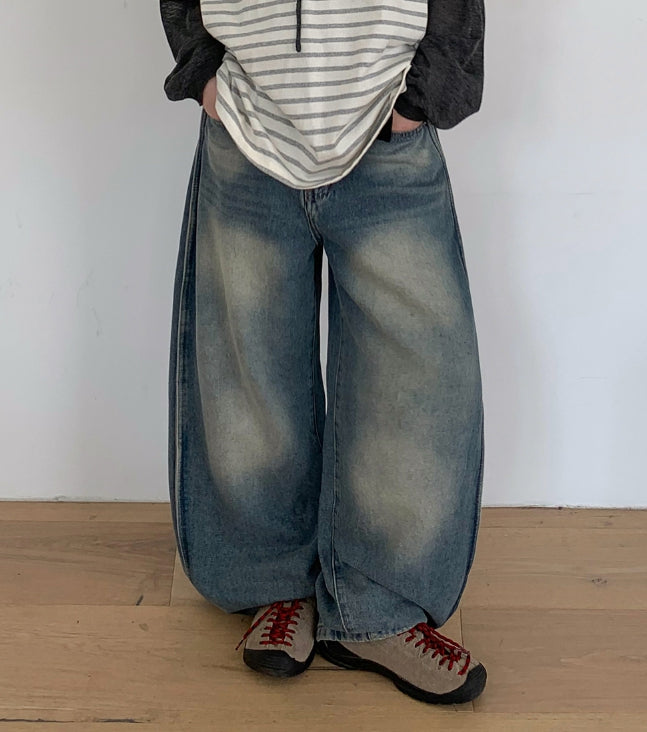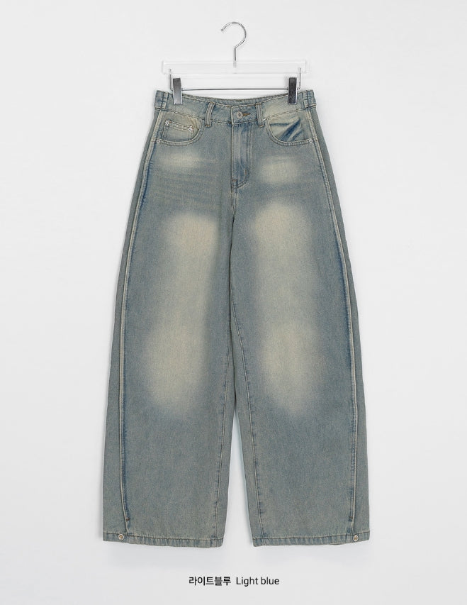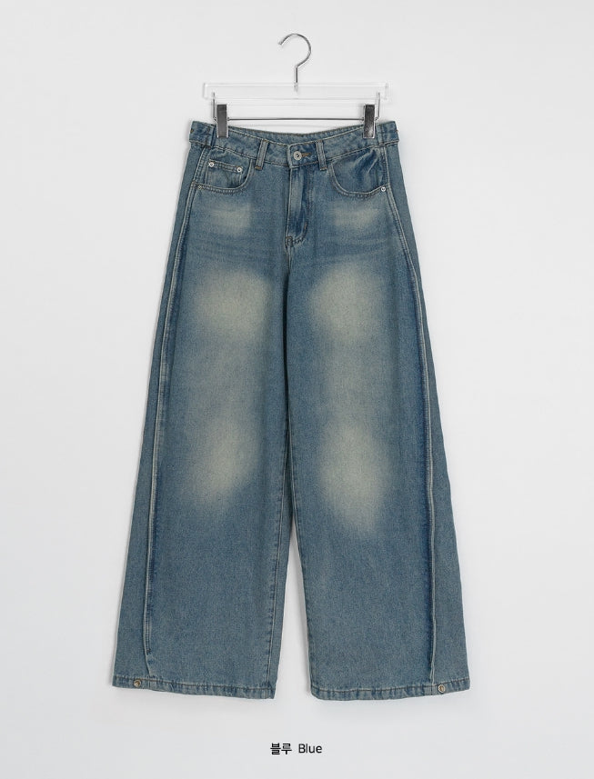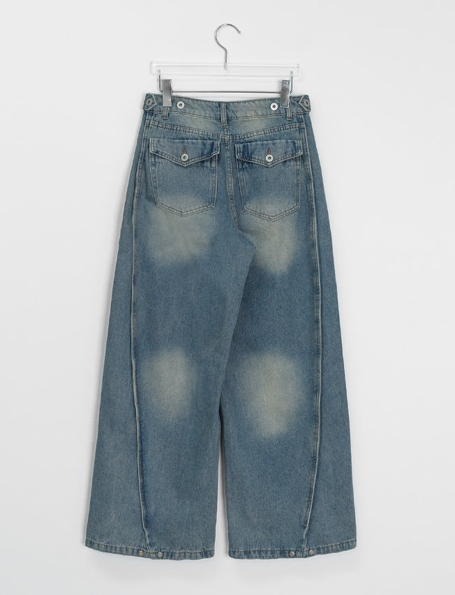 Tume Washing Cut Denim Wide Pants