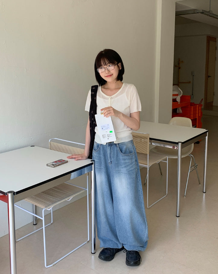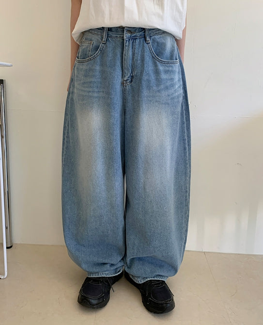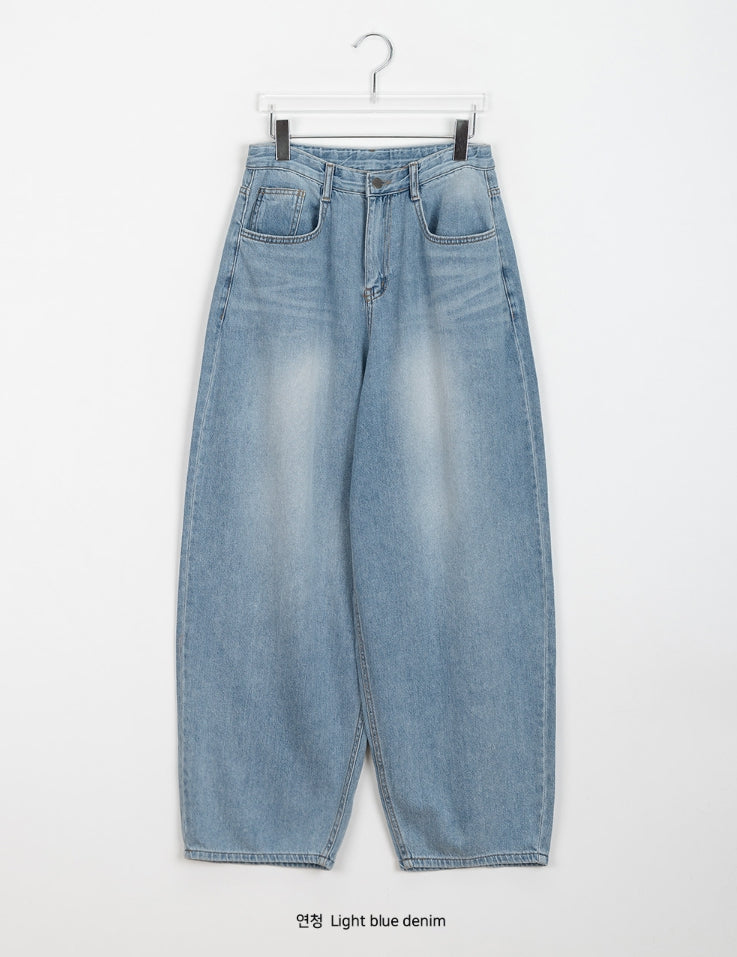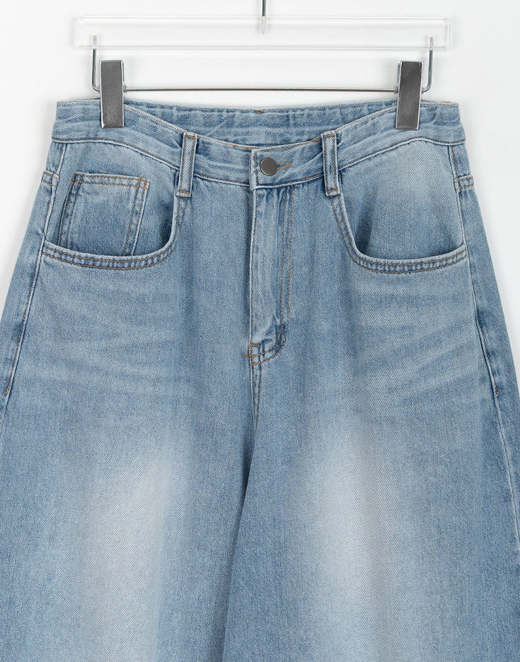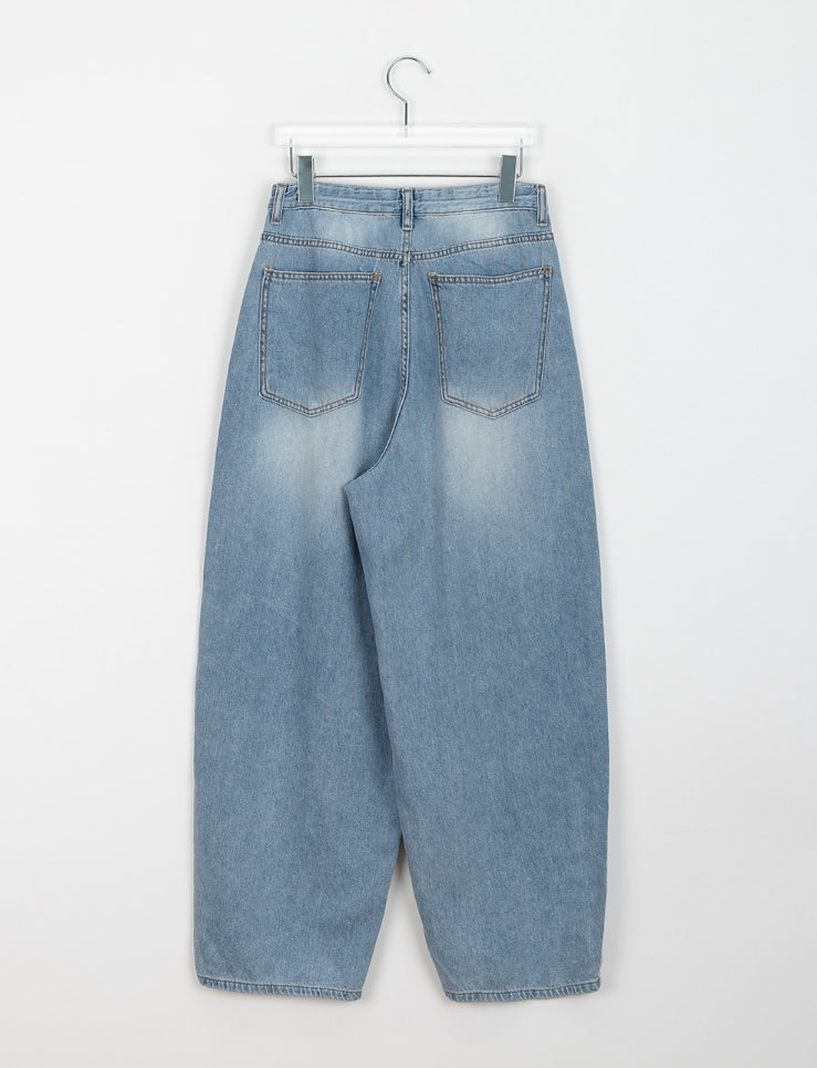 Tzuiti Cat Washing Light Blue Wide Denim Pants