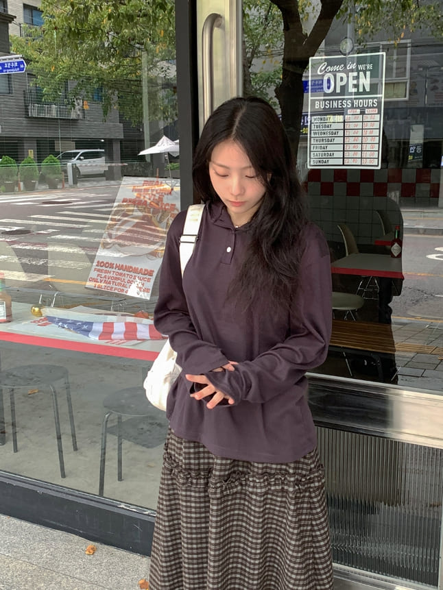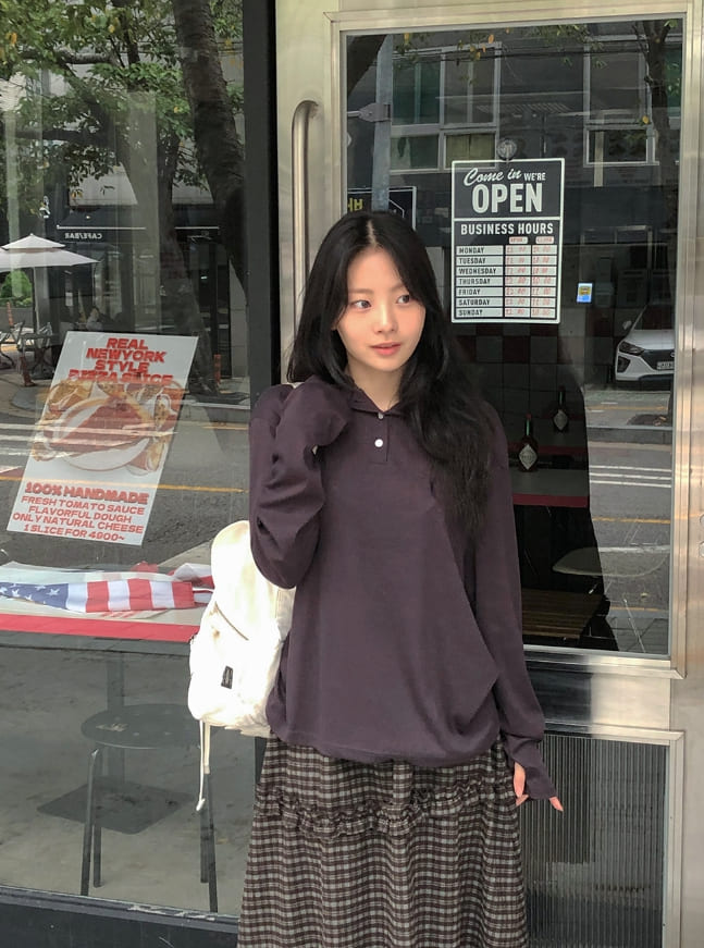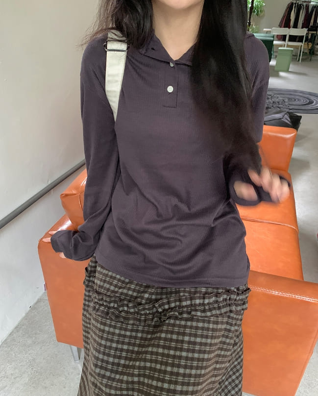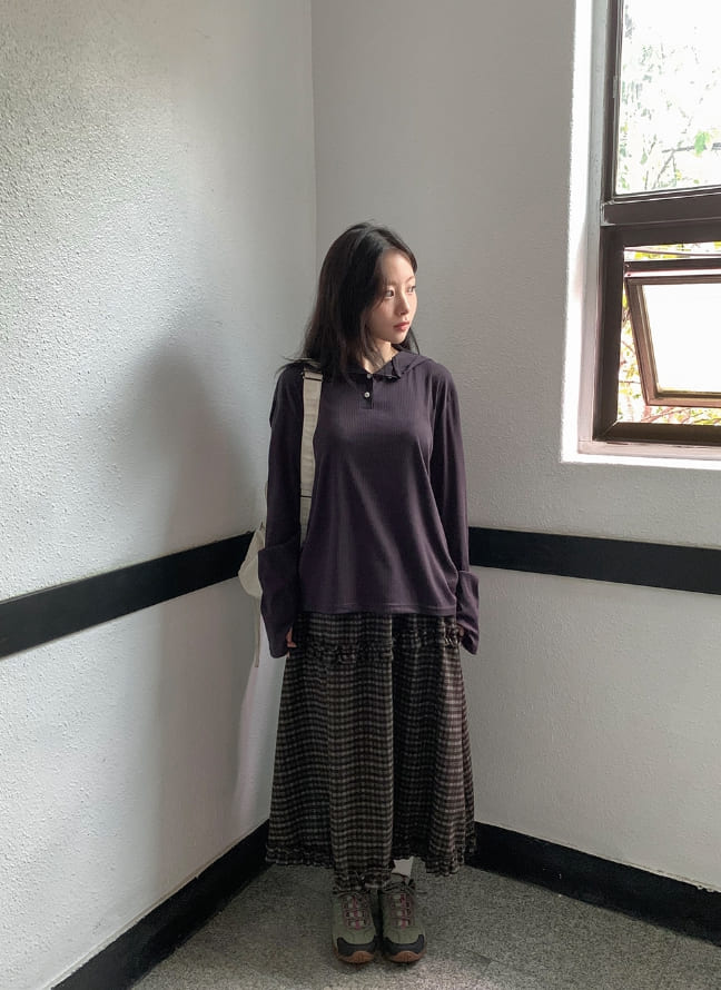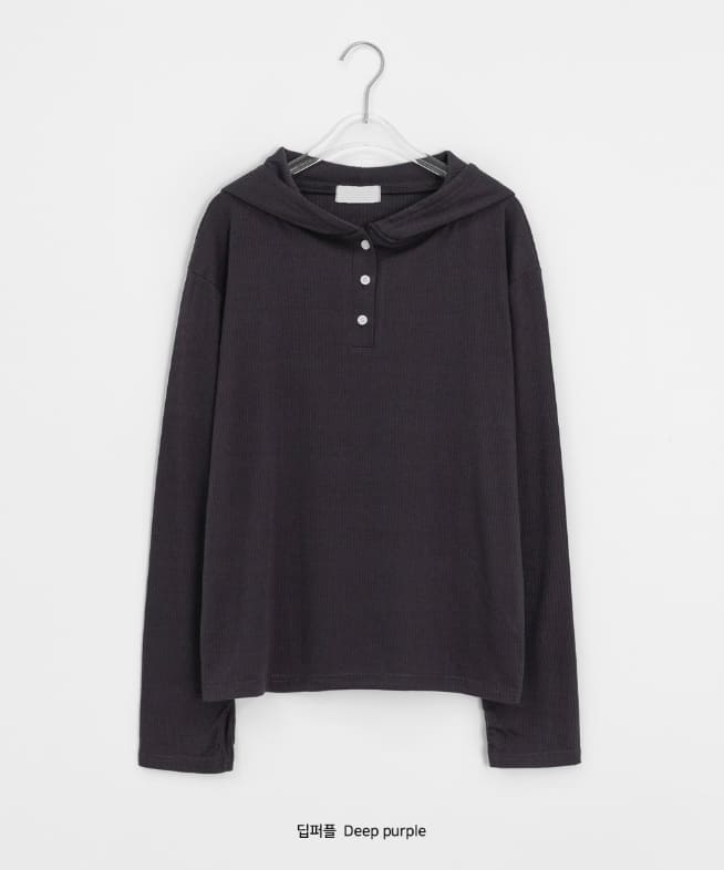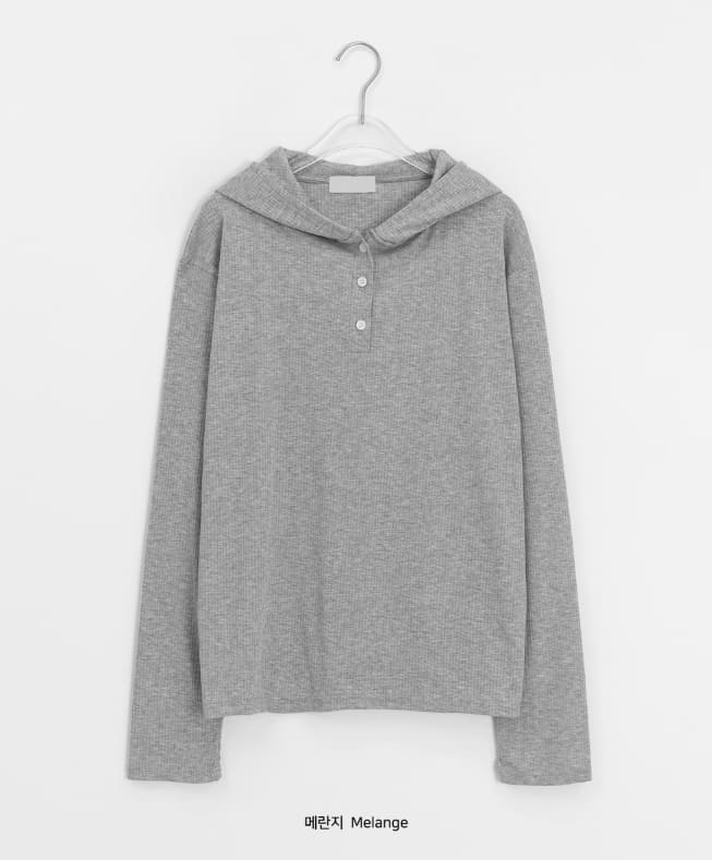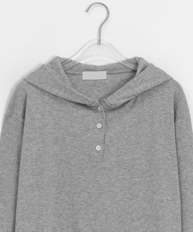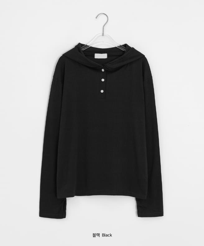 [Unisex] Ael Button Rib Hood Long Sleeve Tee
