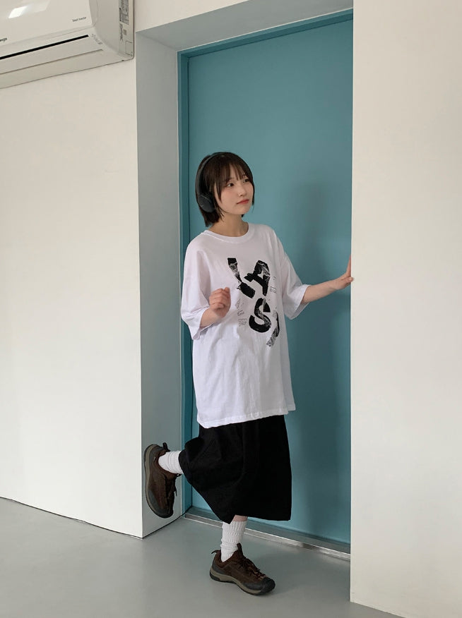 [男女兼用]アケルプリントオーバー半袖Tシャツ