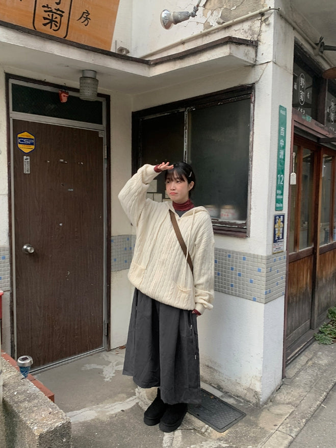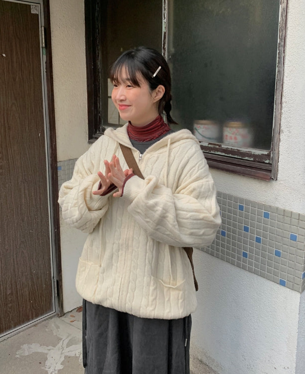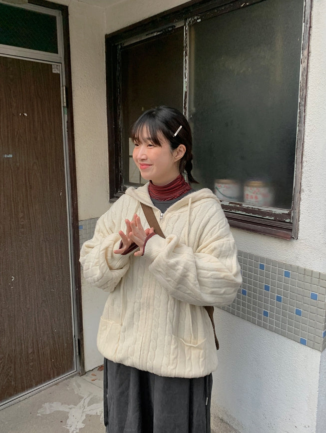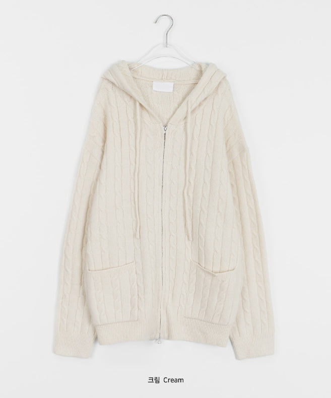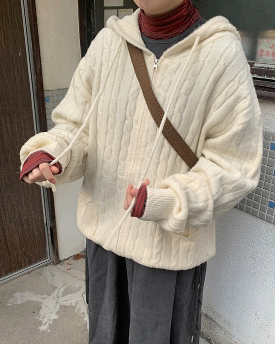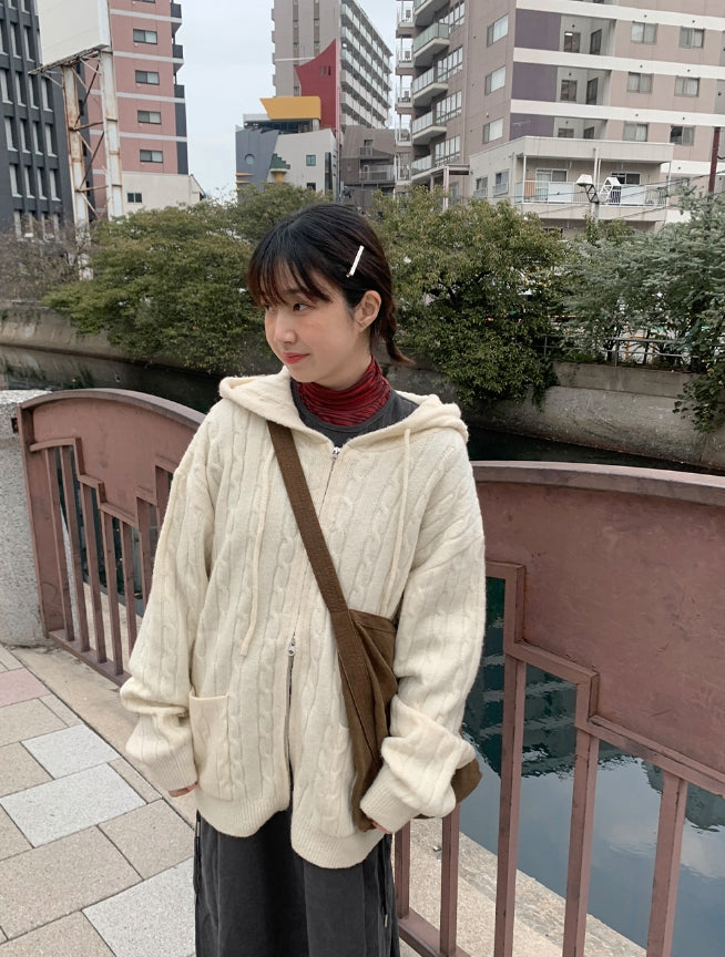 [男女兼用]アクノツーウェイケーブルオーバーニットフードジップアップ