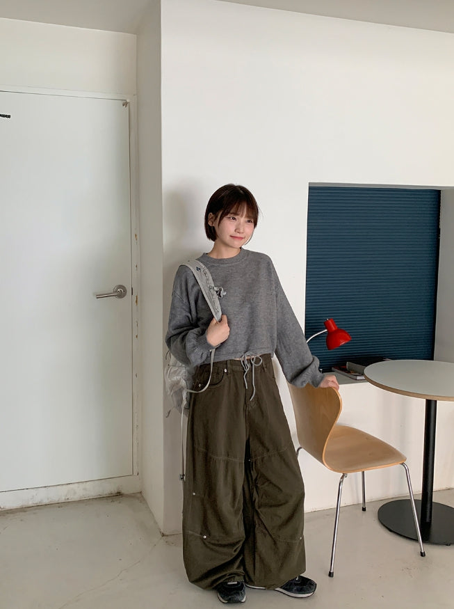 [unisex] Aruco incision rivet cotton wide pants