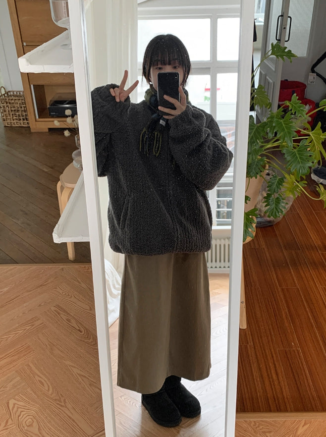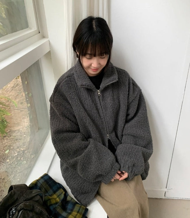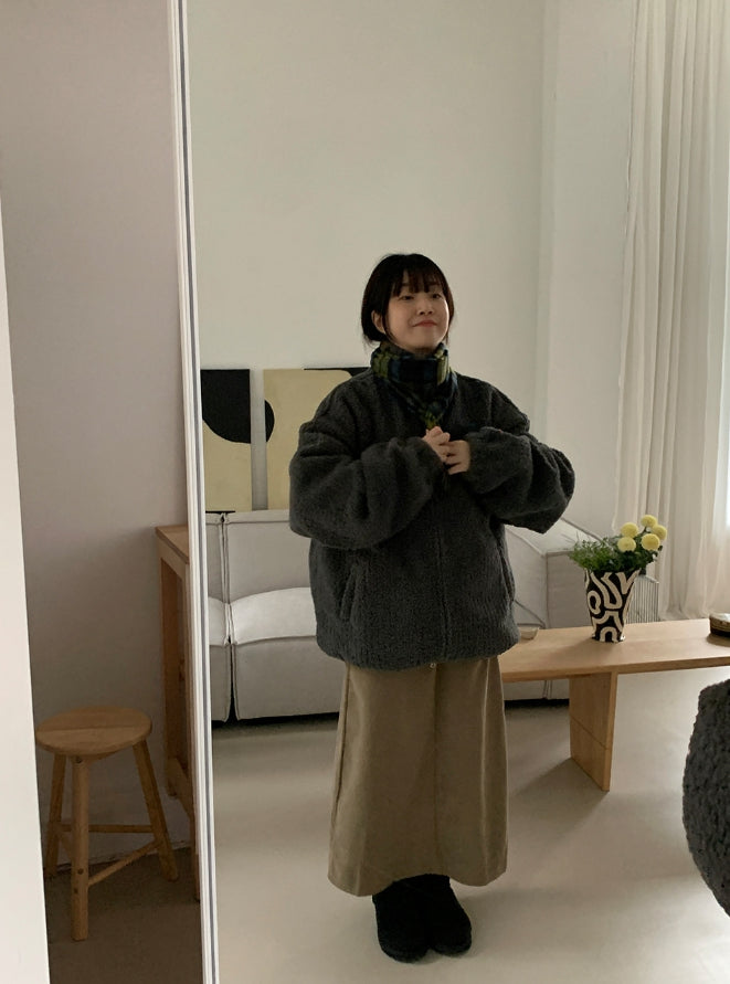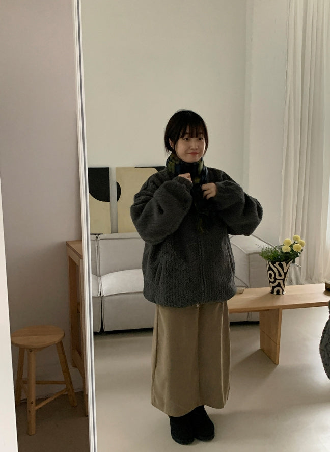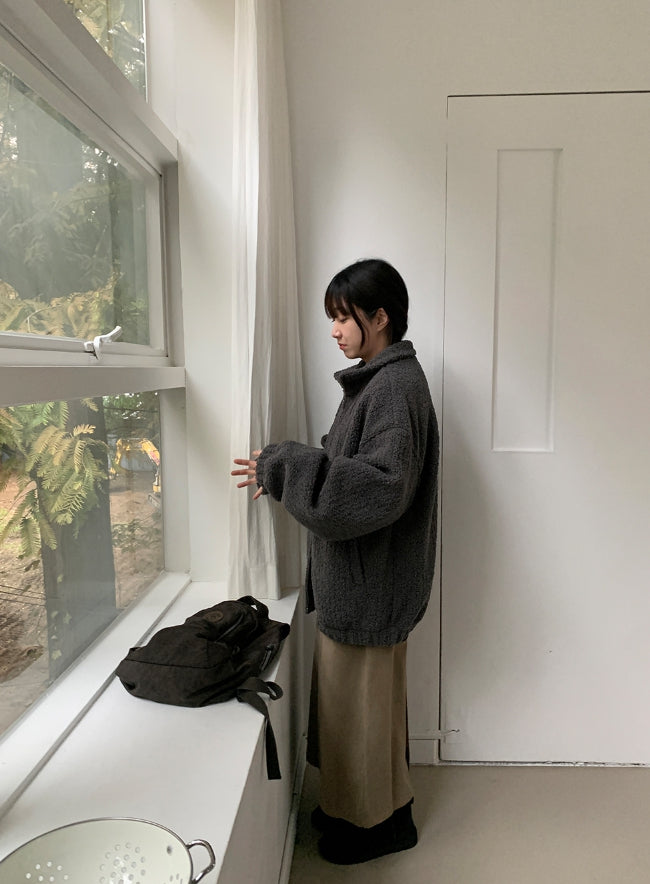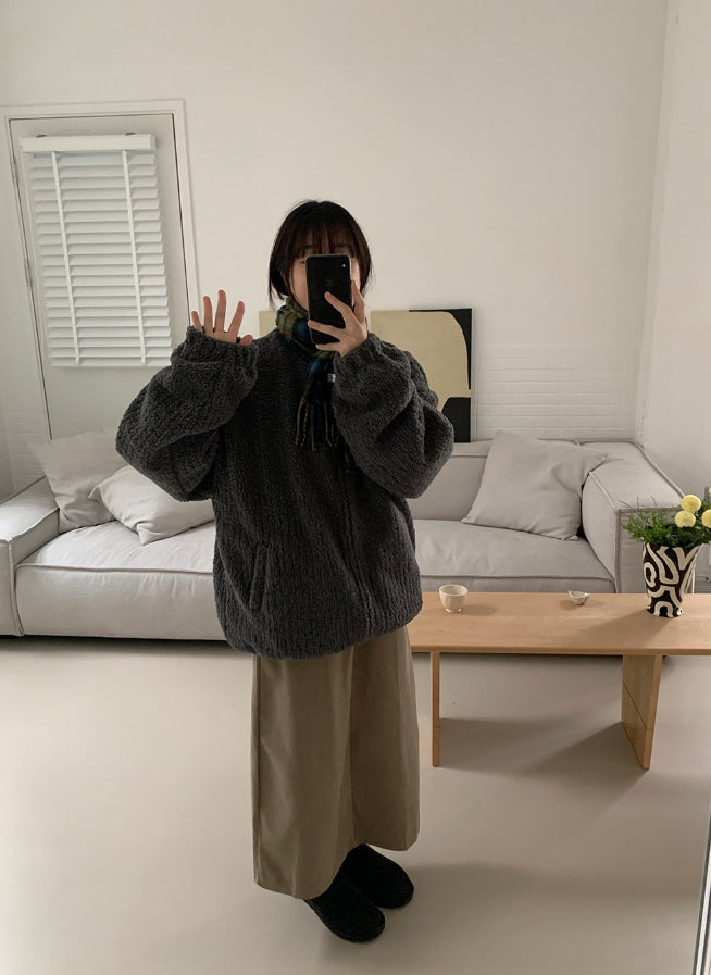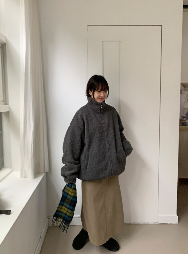 [unisex] Baben two-way ribbed fleece zip-up jumper