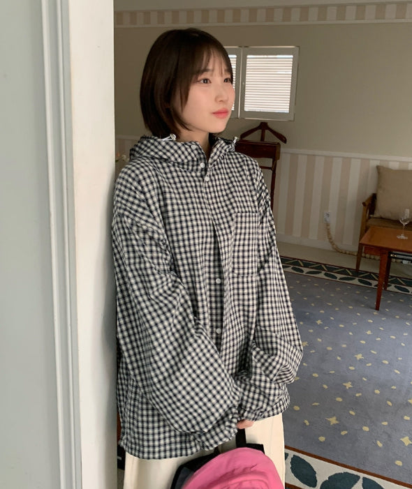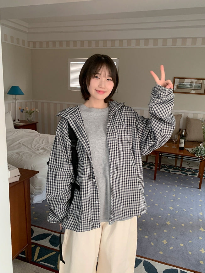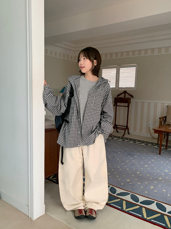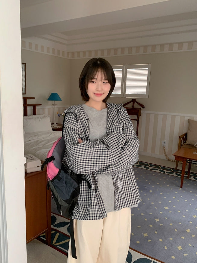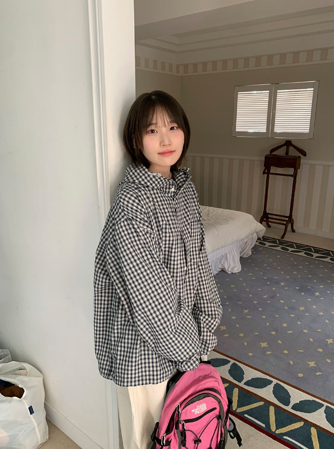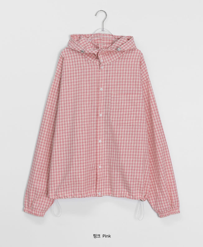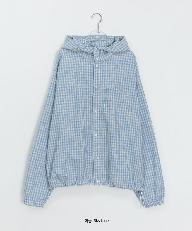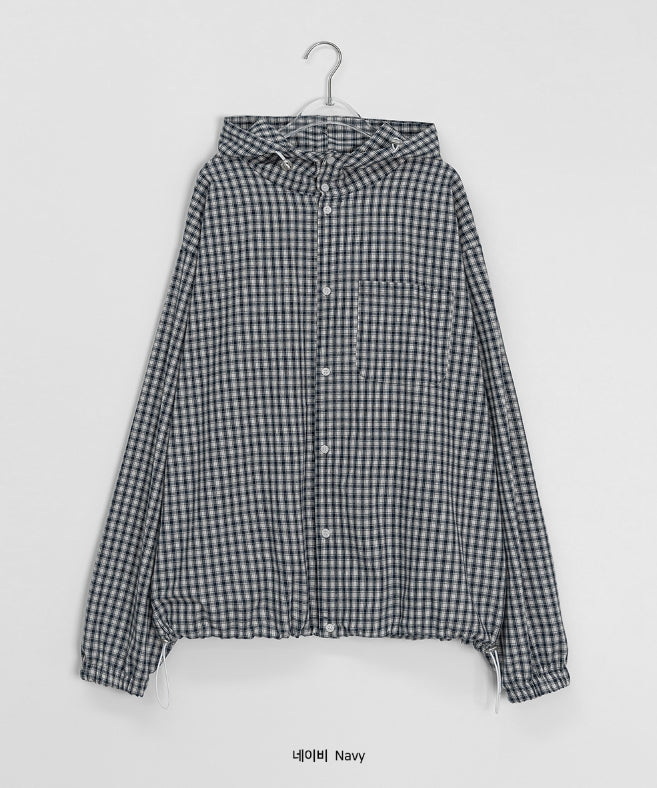 [unisex] Baden Check String Over Hood Shirt