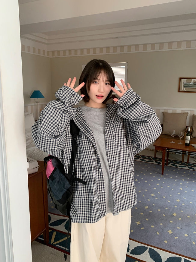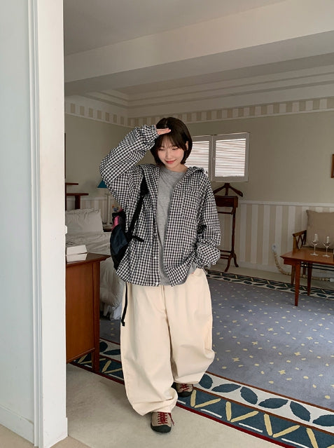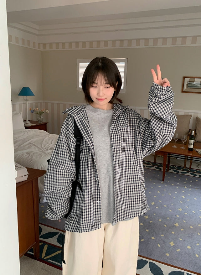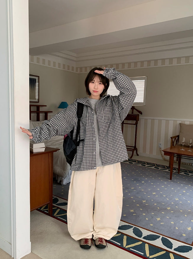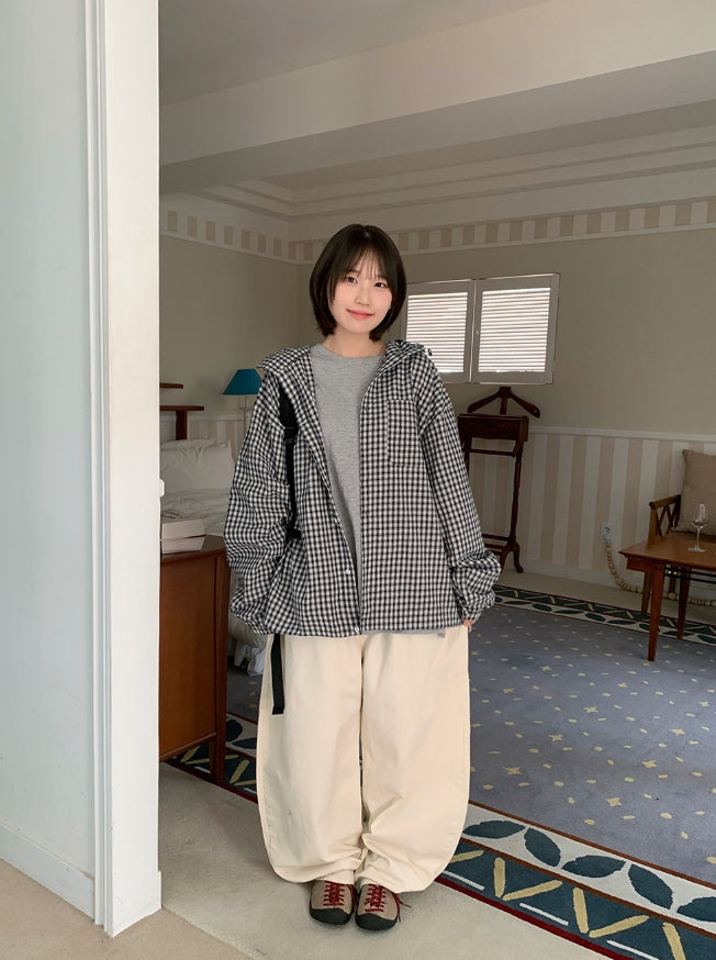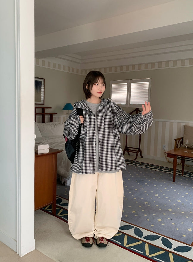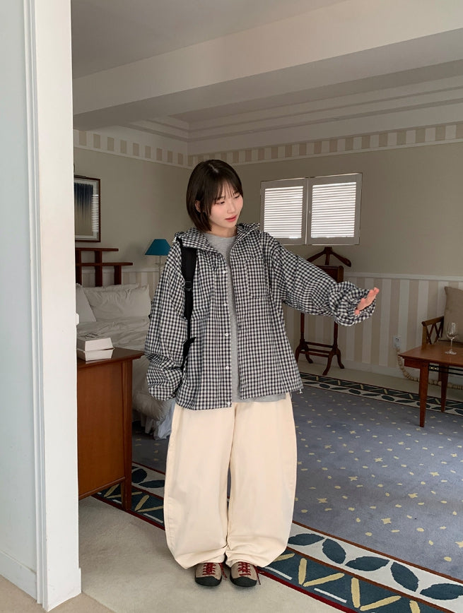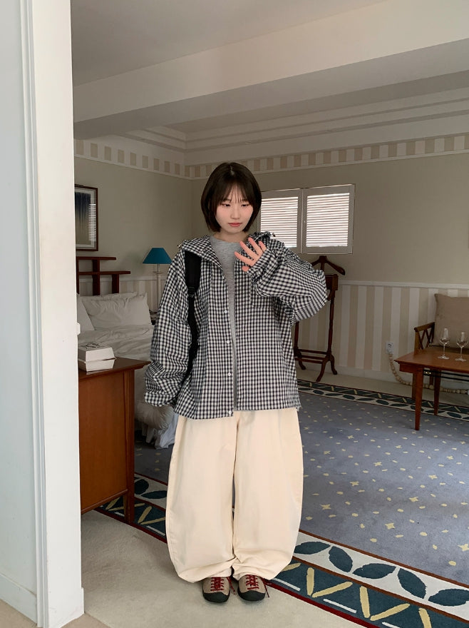 [unisex] Baden Check String Over Hood Shirt