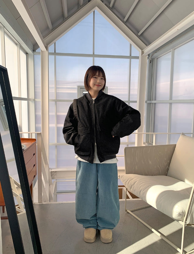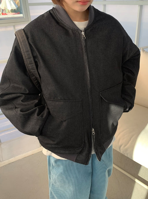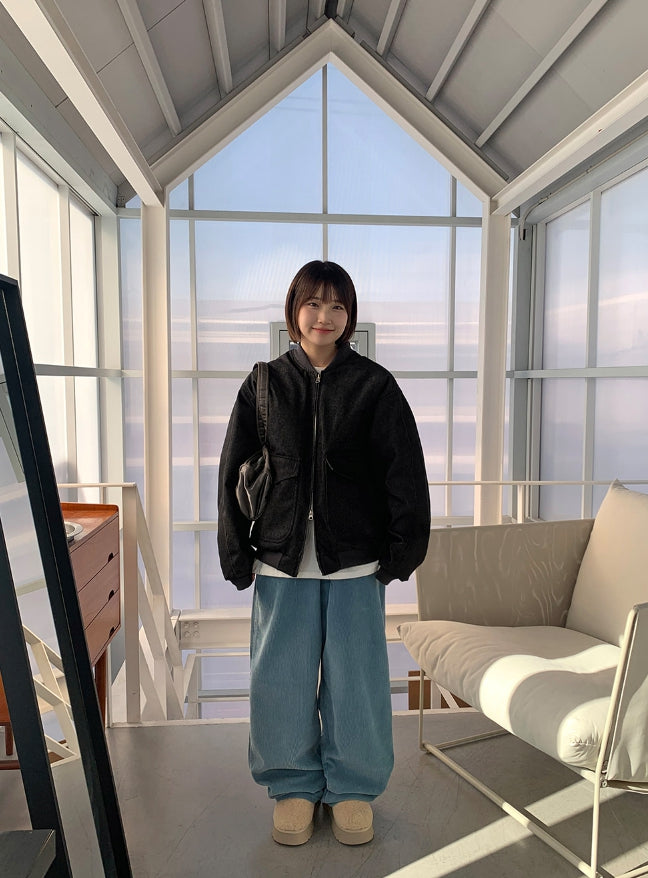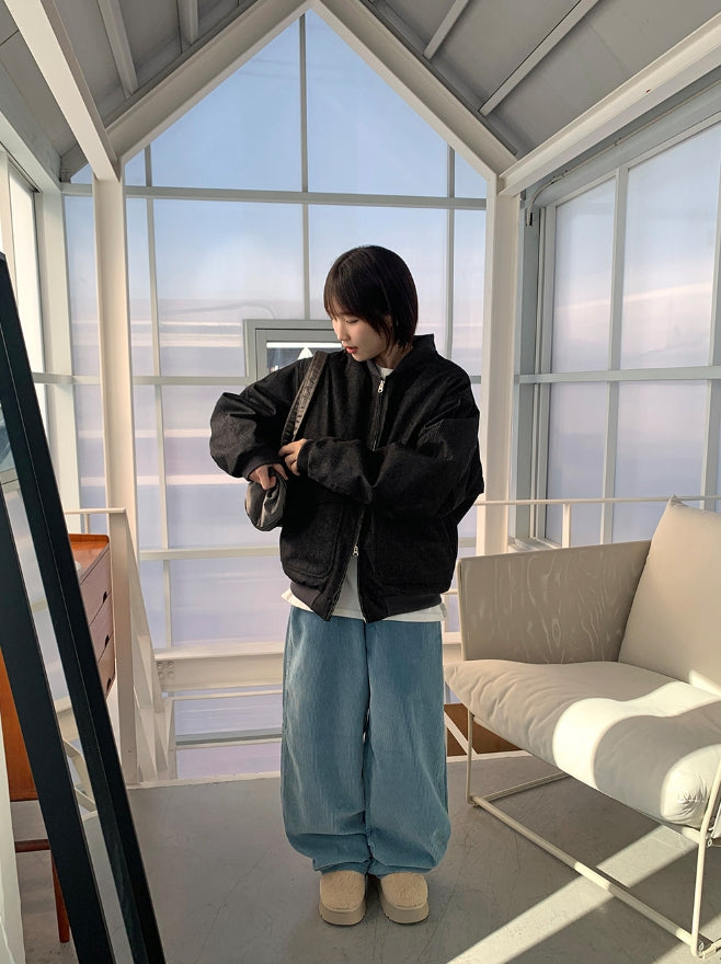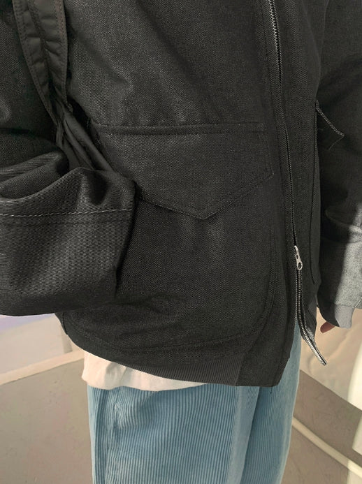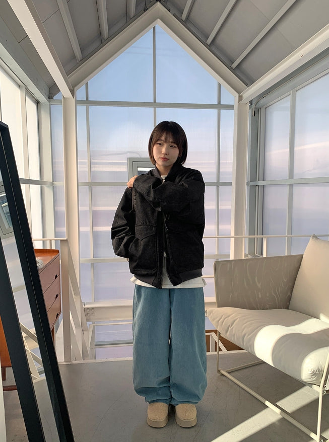 [unisex] Baoki Two-Way Quilted Denim Flight Jumper