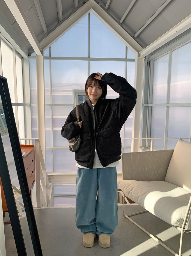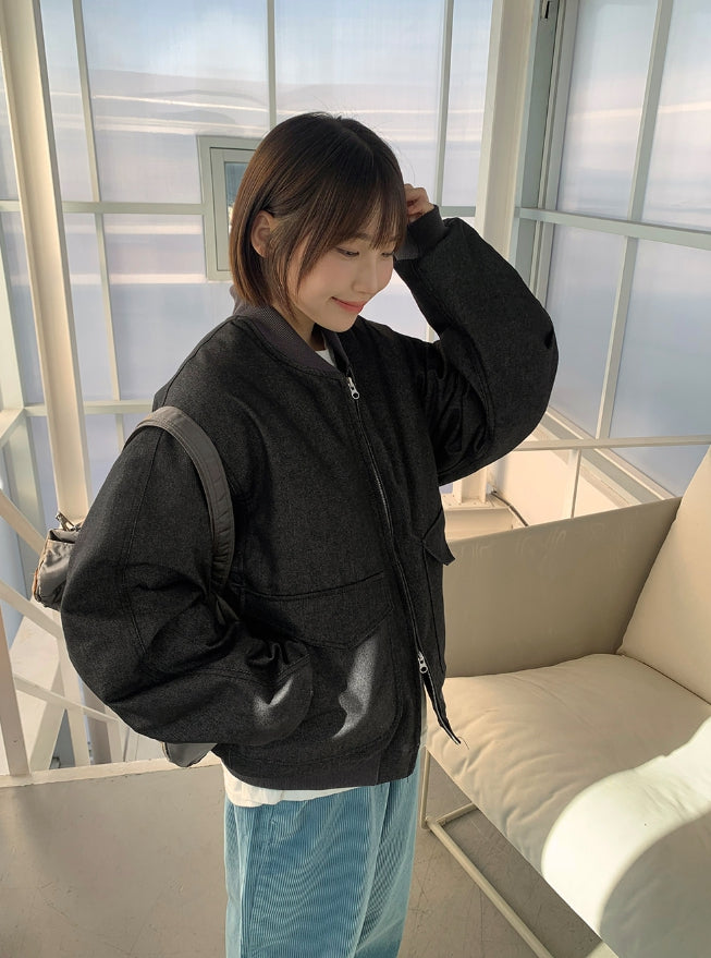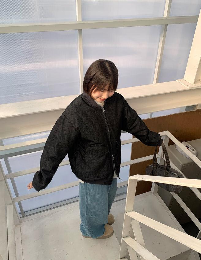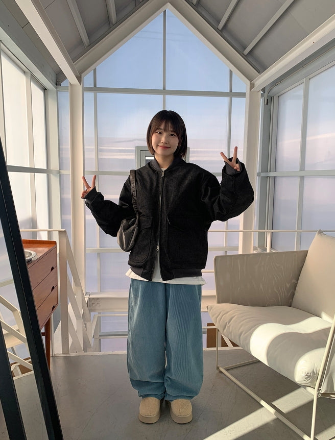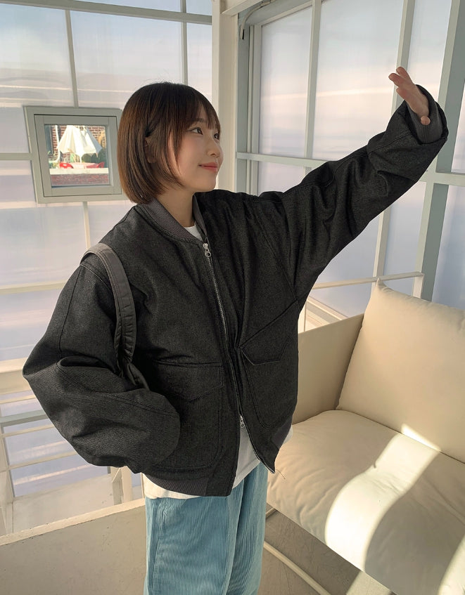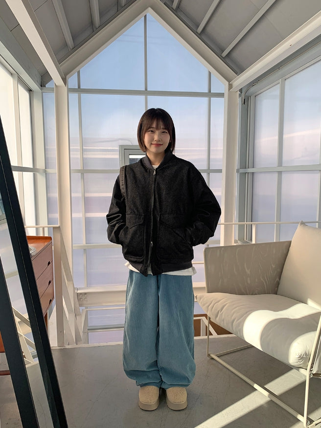 [unisex] Baoki Two-Way Quilted Denim Flight Jumper