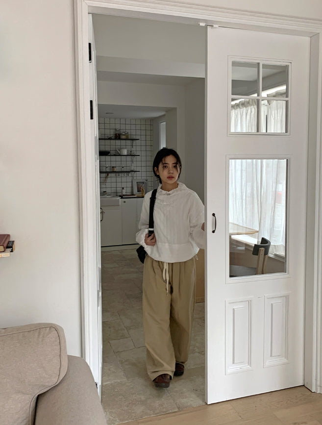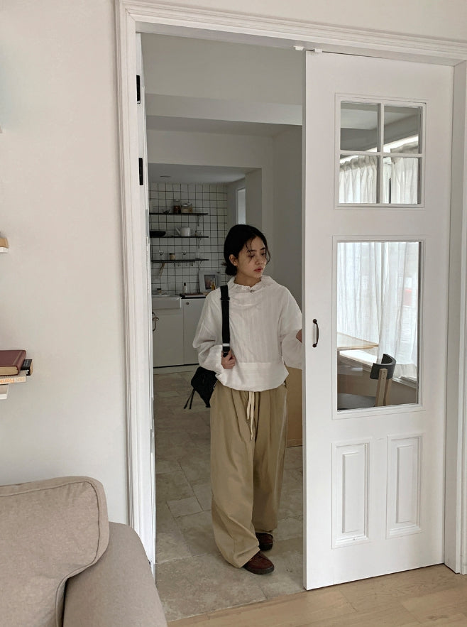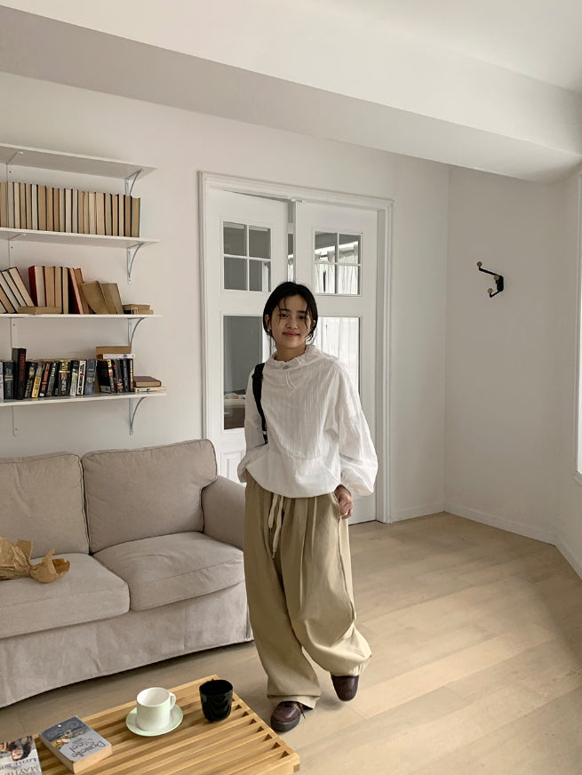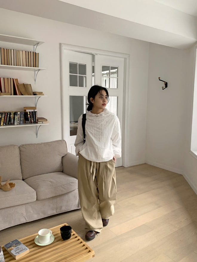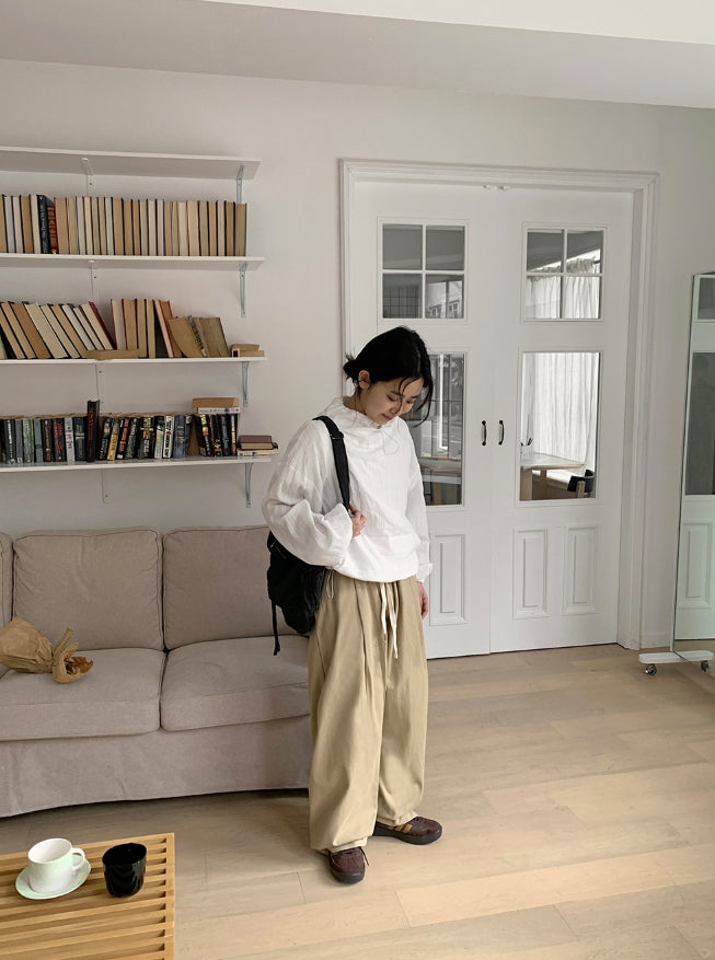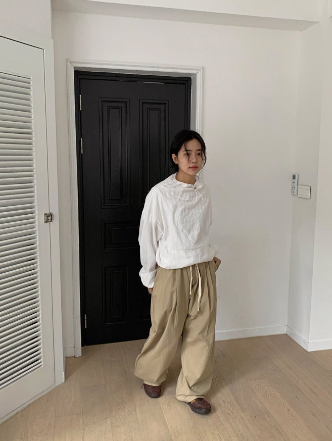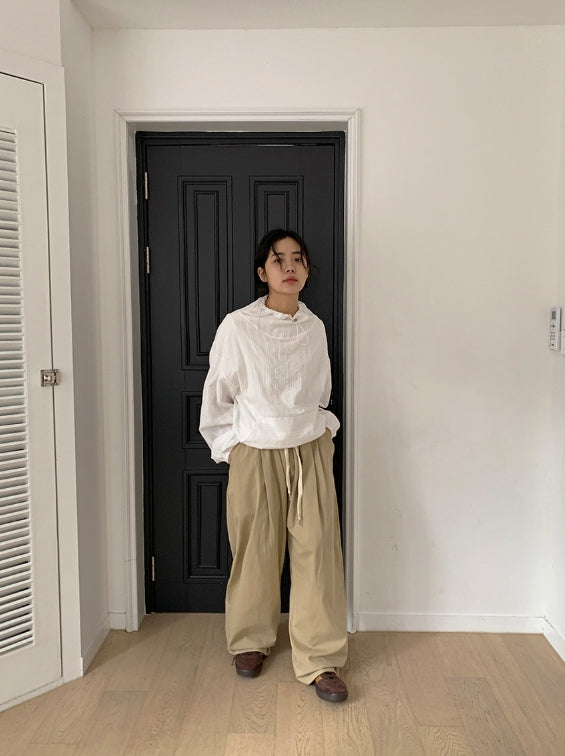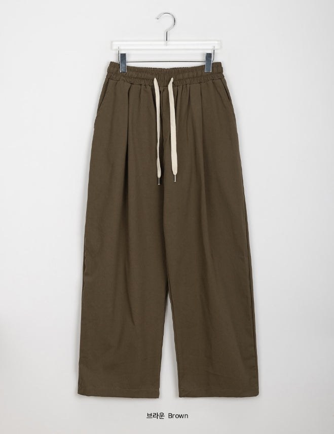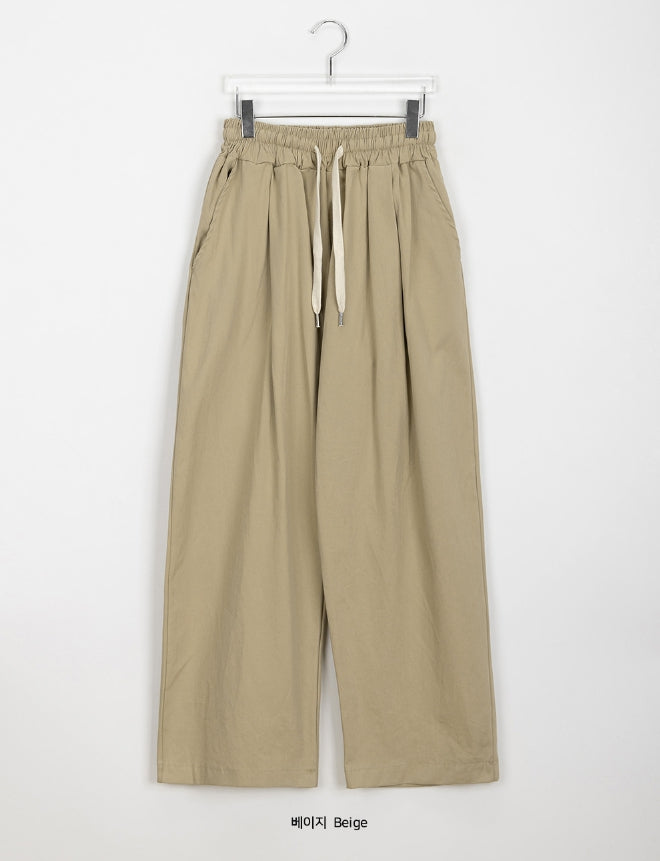 [男女兼用]バイユーピンタックバンディングワイドパンツ
