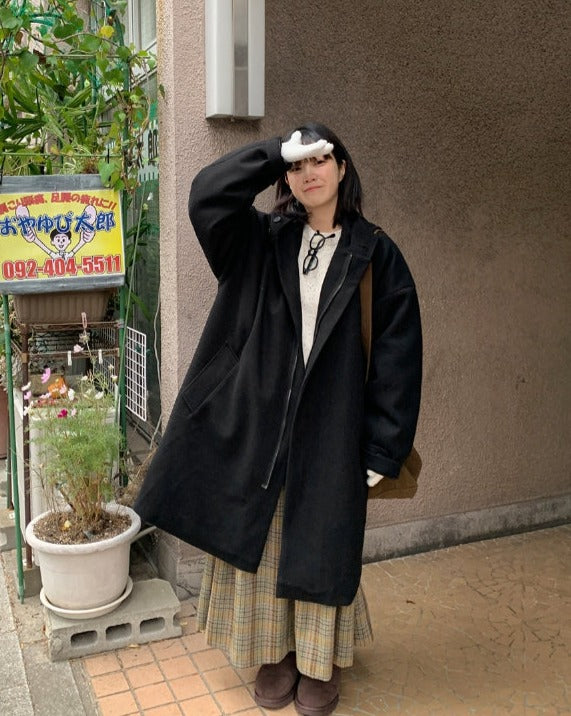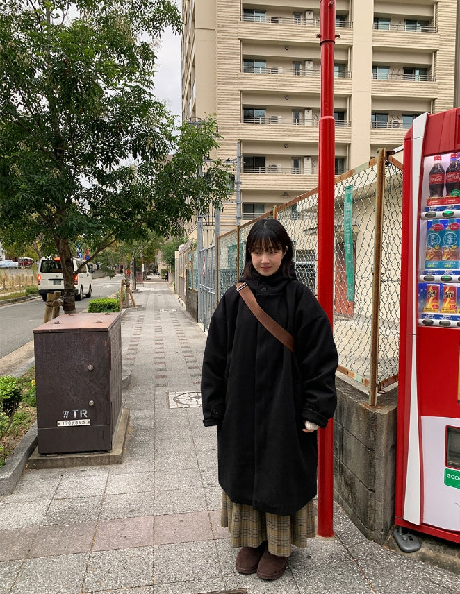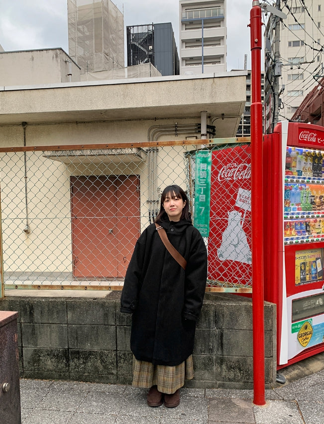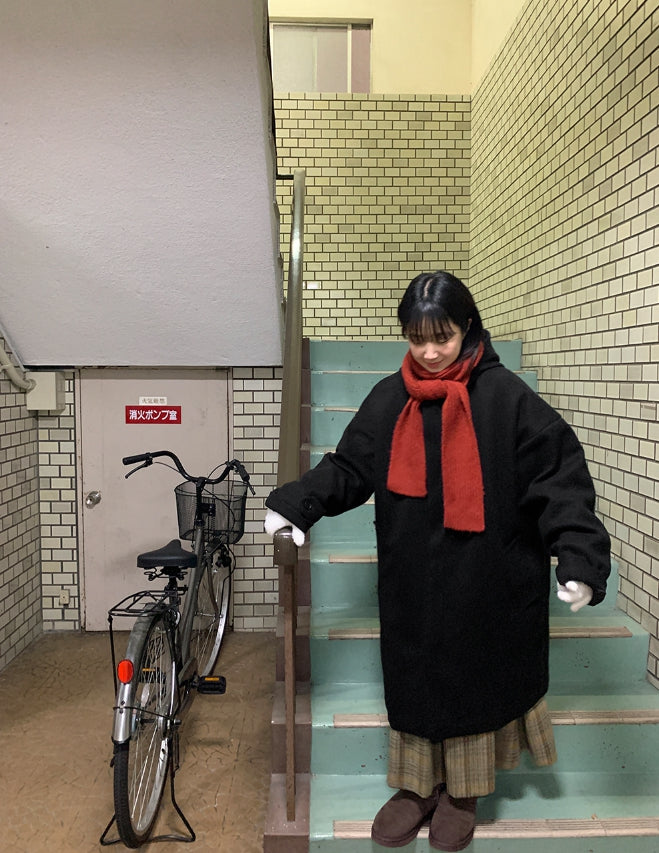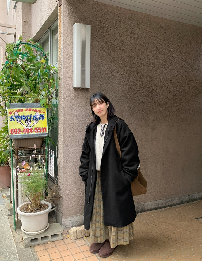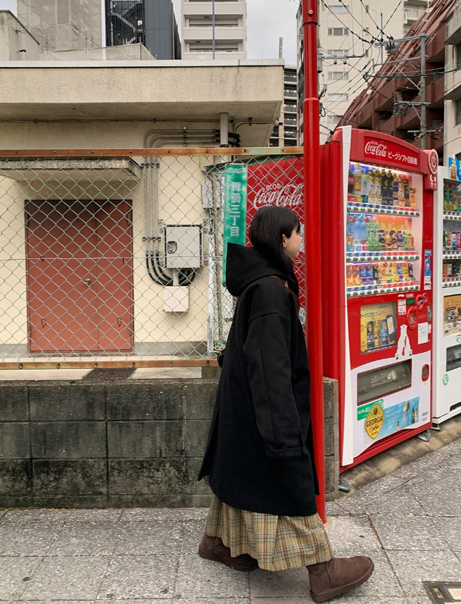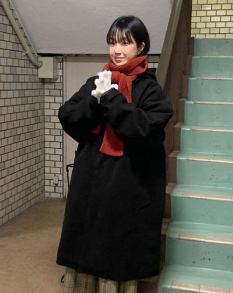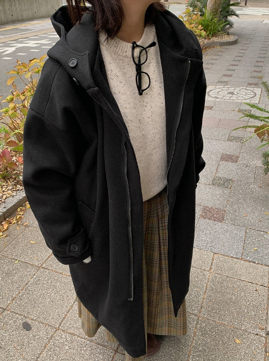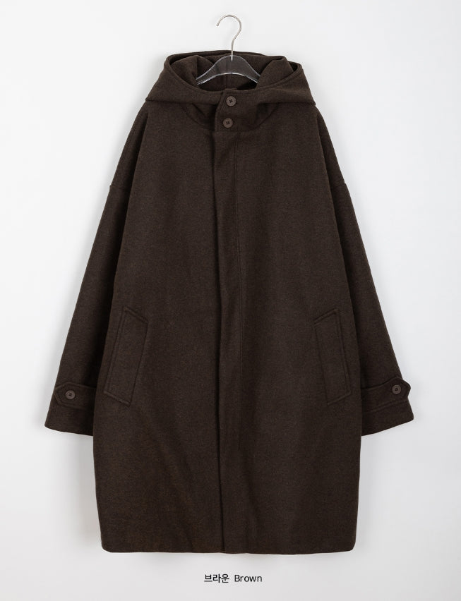 [男女兼用]ブコンウールオーバーキルティングフードロングコート