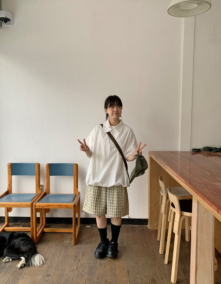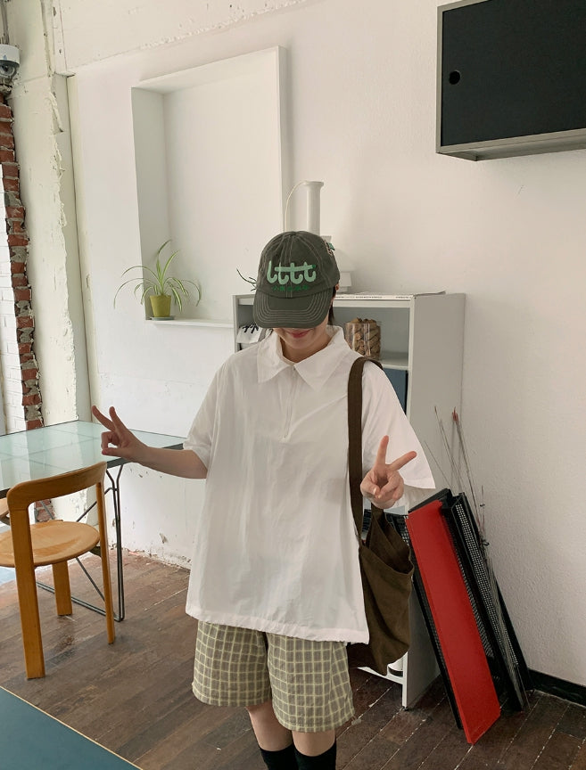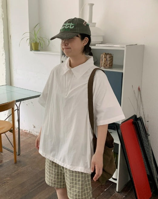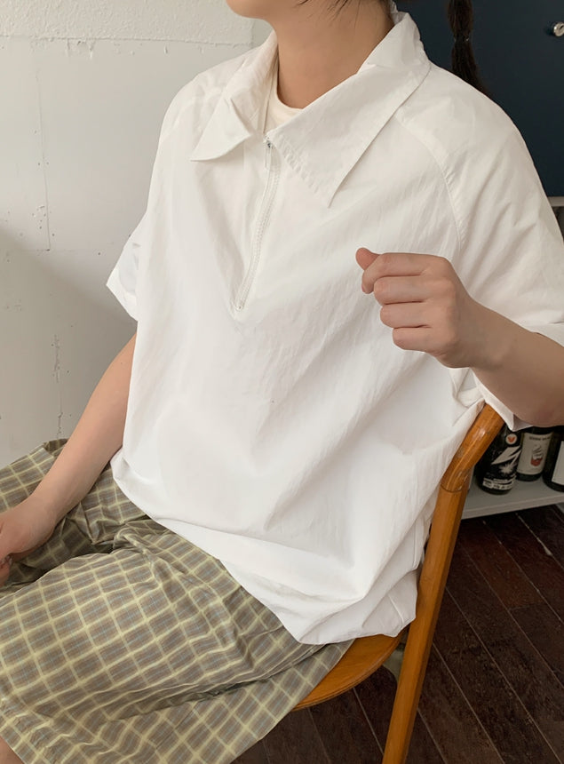 [男女兼用]ベイナナイロンストリングアノラック半袖シャツ