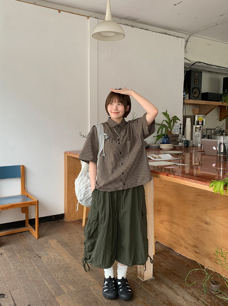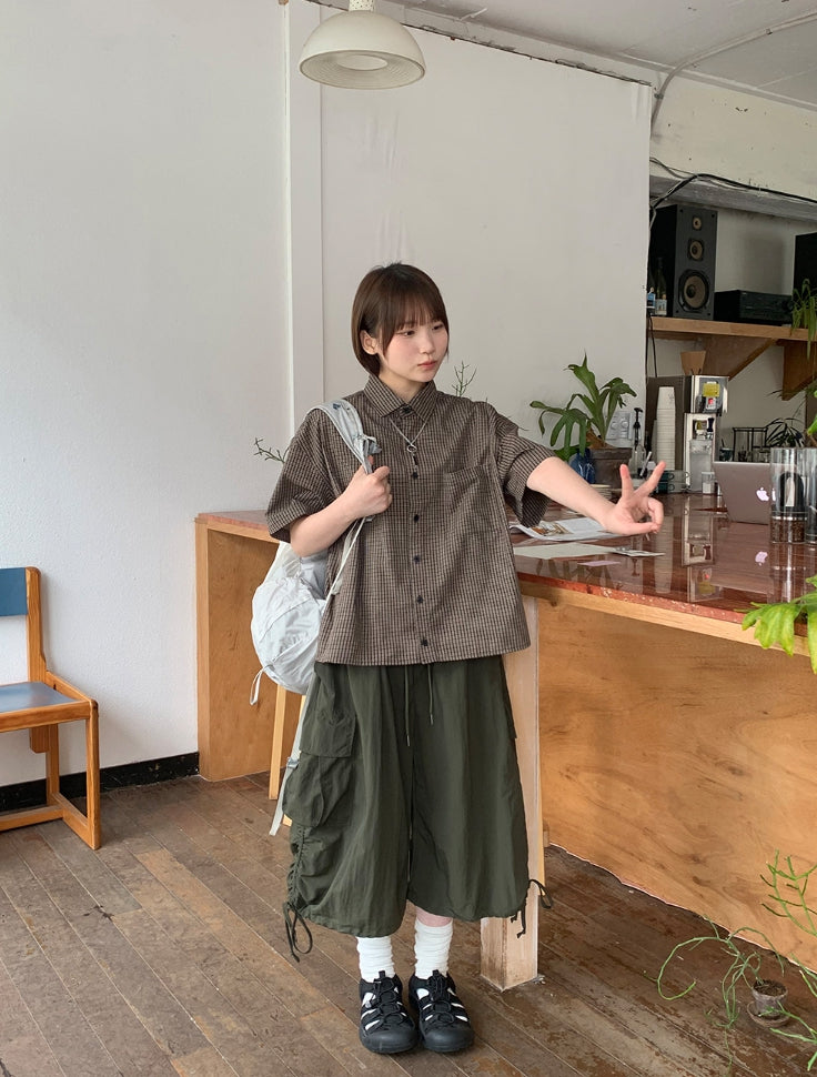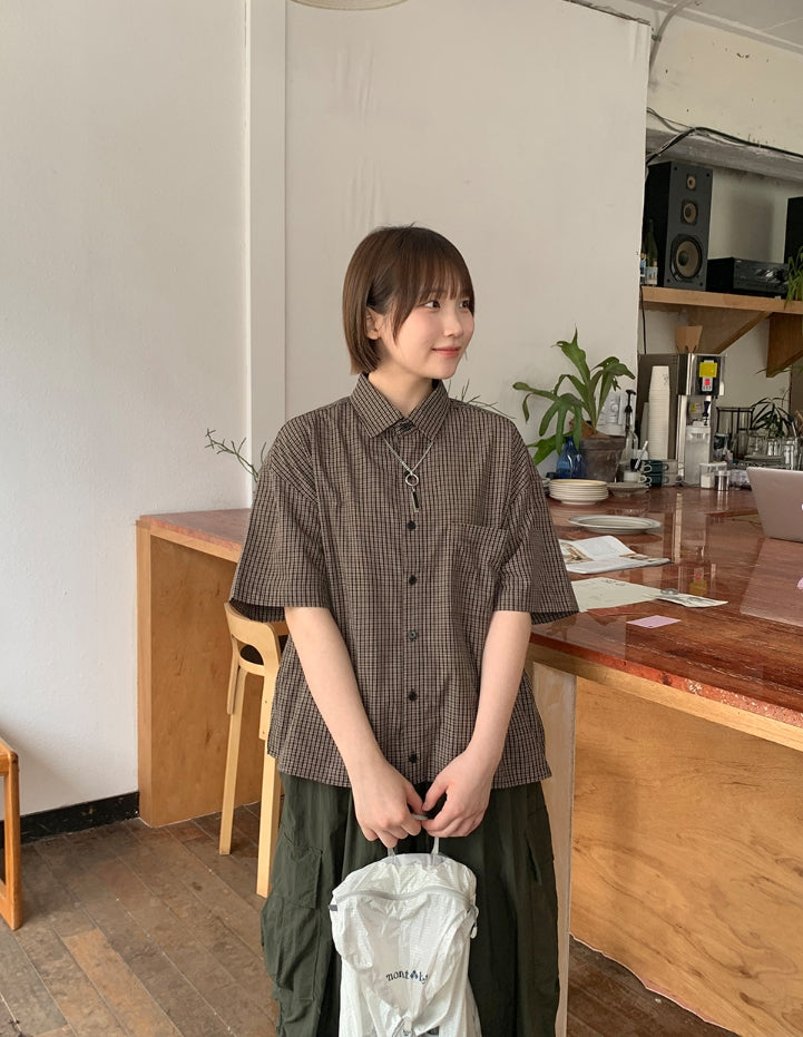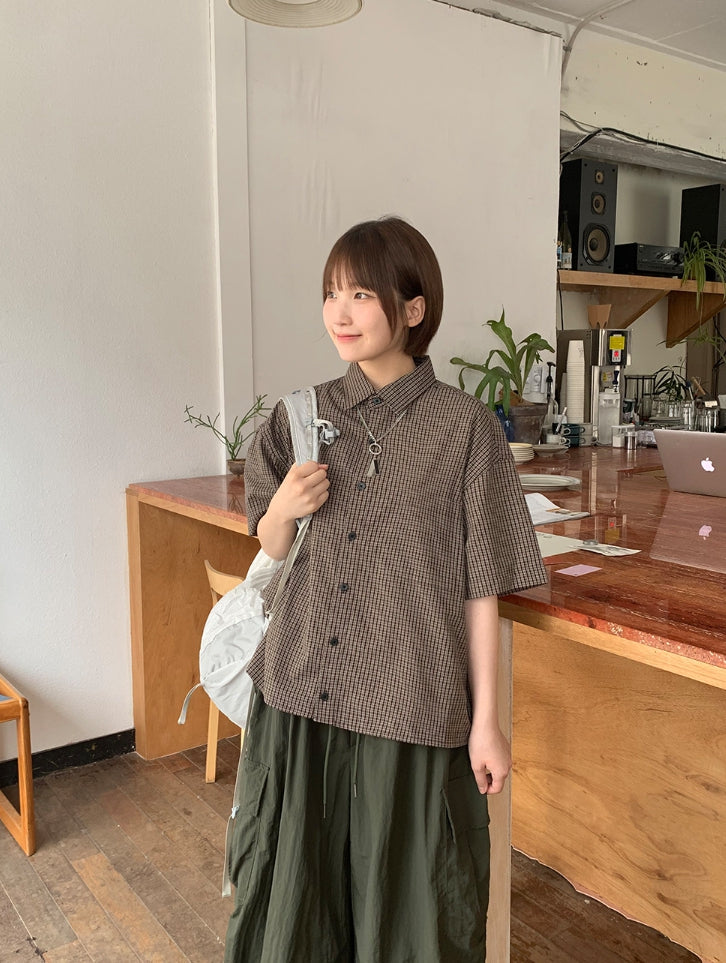 [Unisex] Belgou Crop Check Short Sleeve Shirt