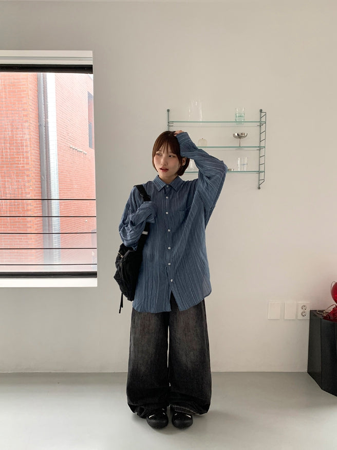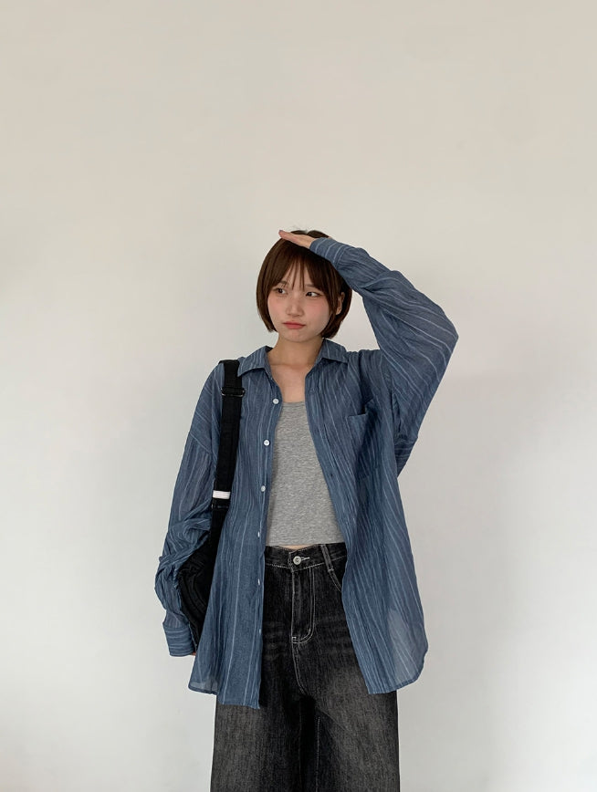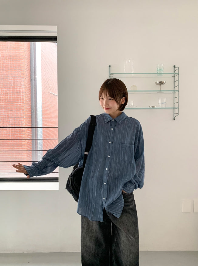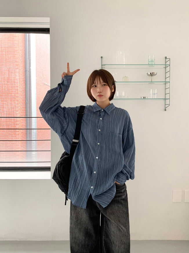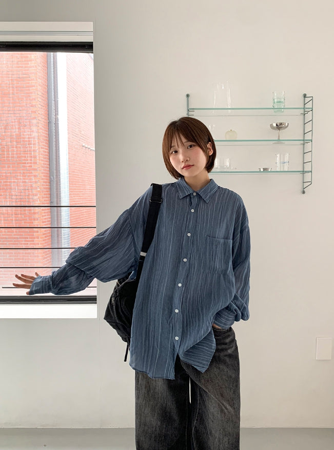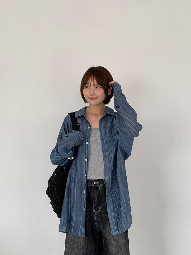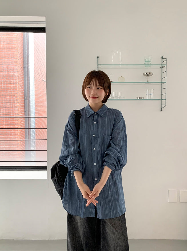 [unisex] Billmon Seersucker Stripe Over Shirt