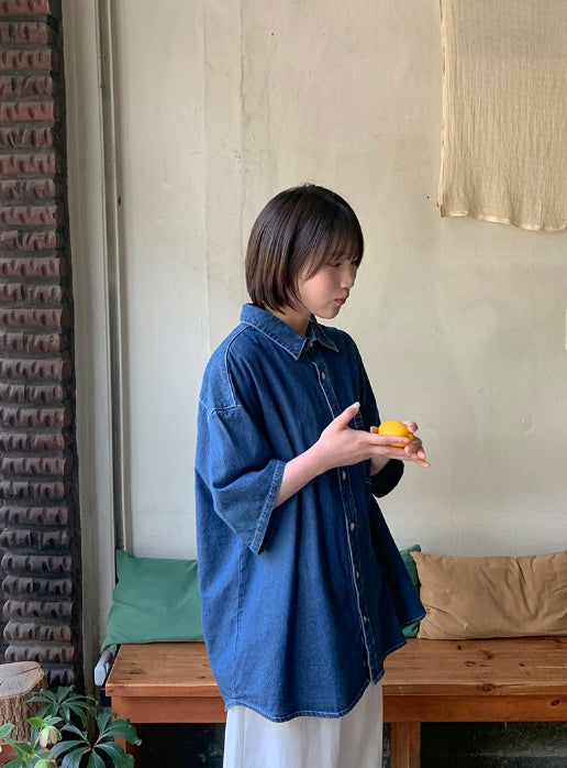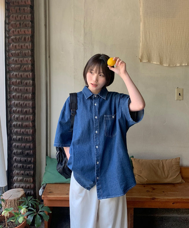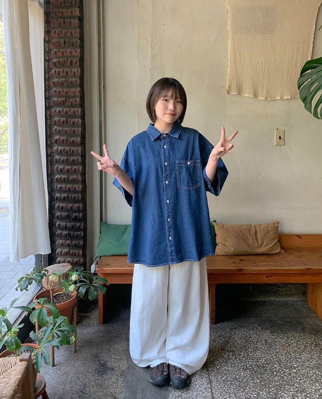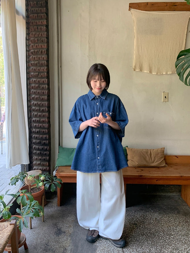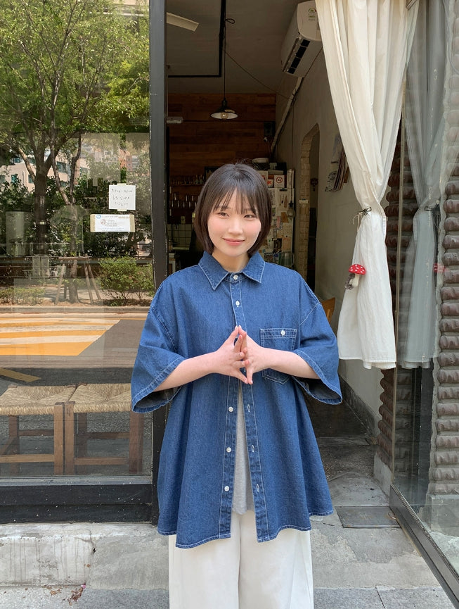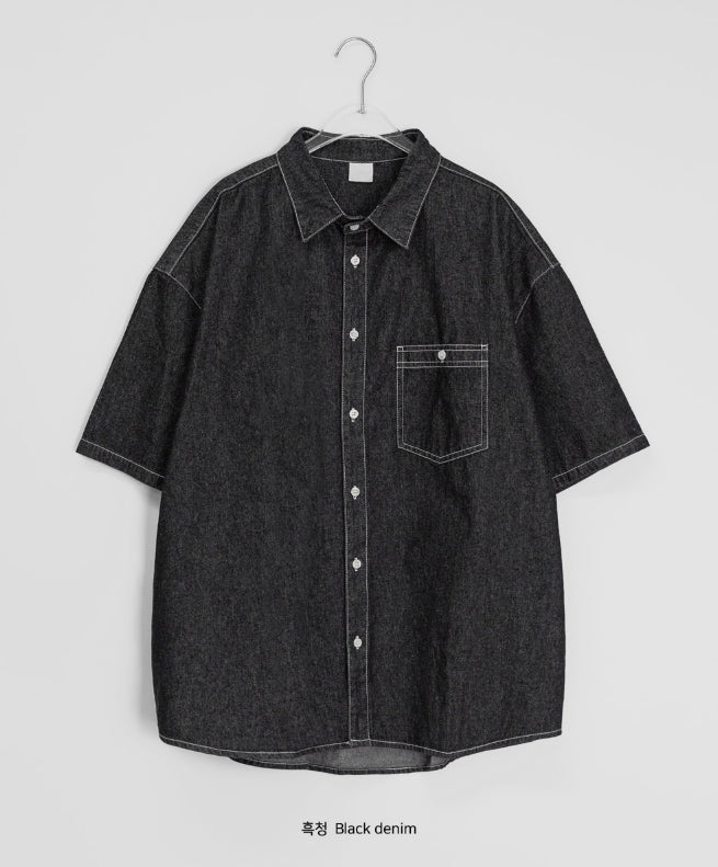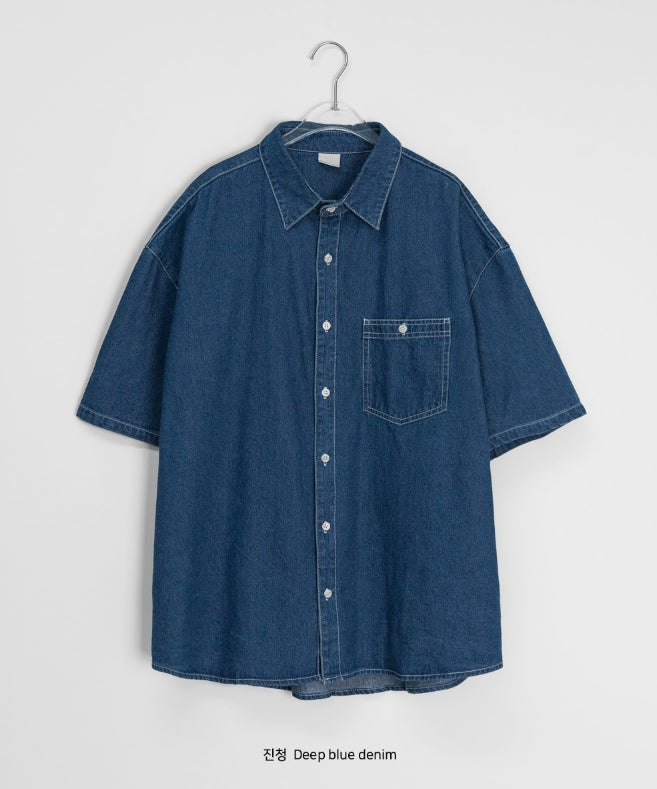 [unisex] Billud Denim Over Short Sleeve Shirt