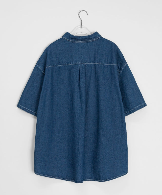 [男女兼用]ビリュードデニムオーバー半袖シャツ