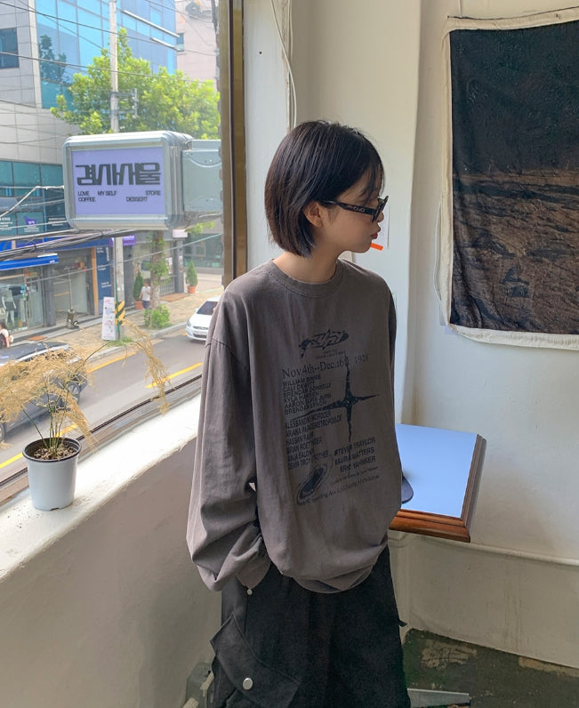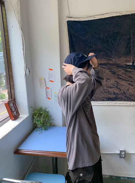 [男女兼用]ブランドピグメントプリント長袖Tシャツ