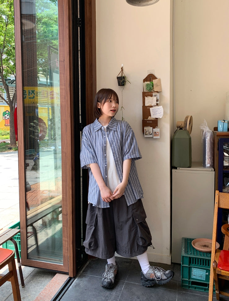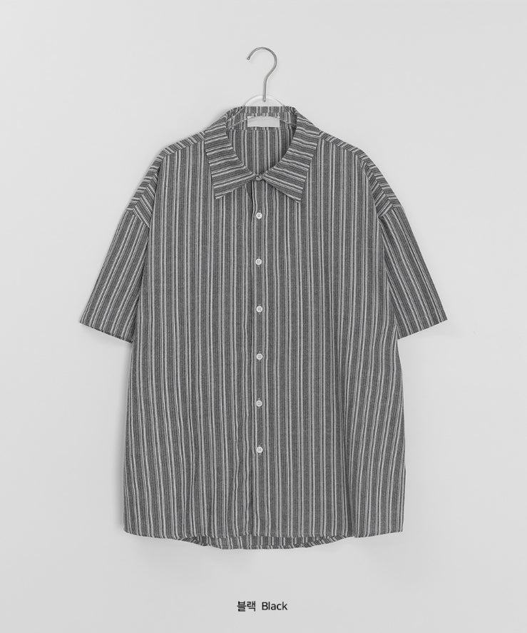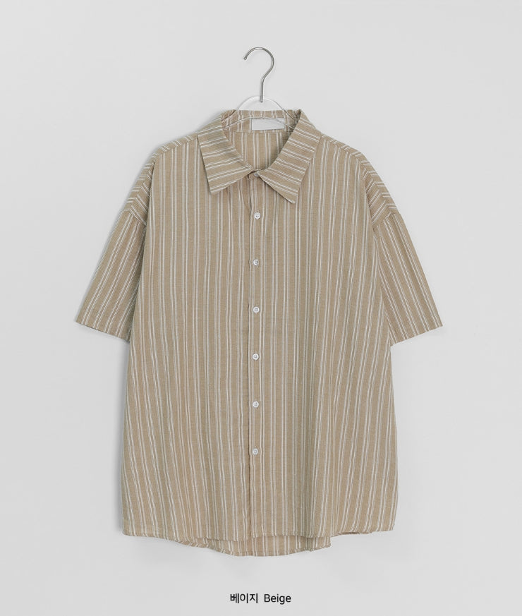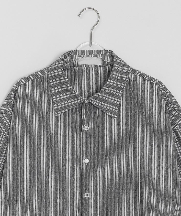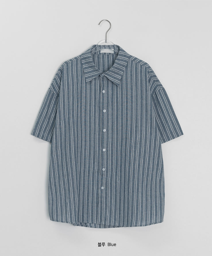 [unisex] Bubblet Stripe Linen Over Short Sleeve Shirt