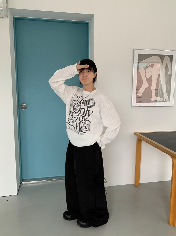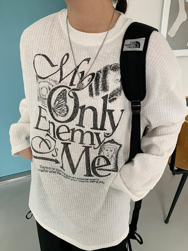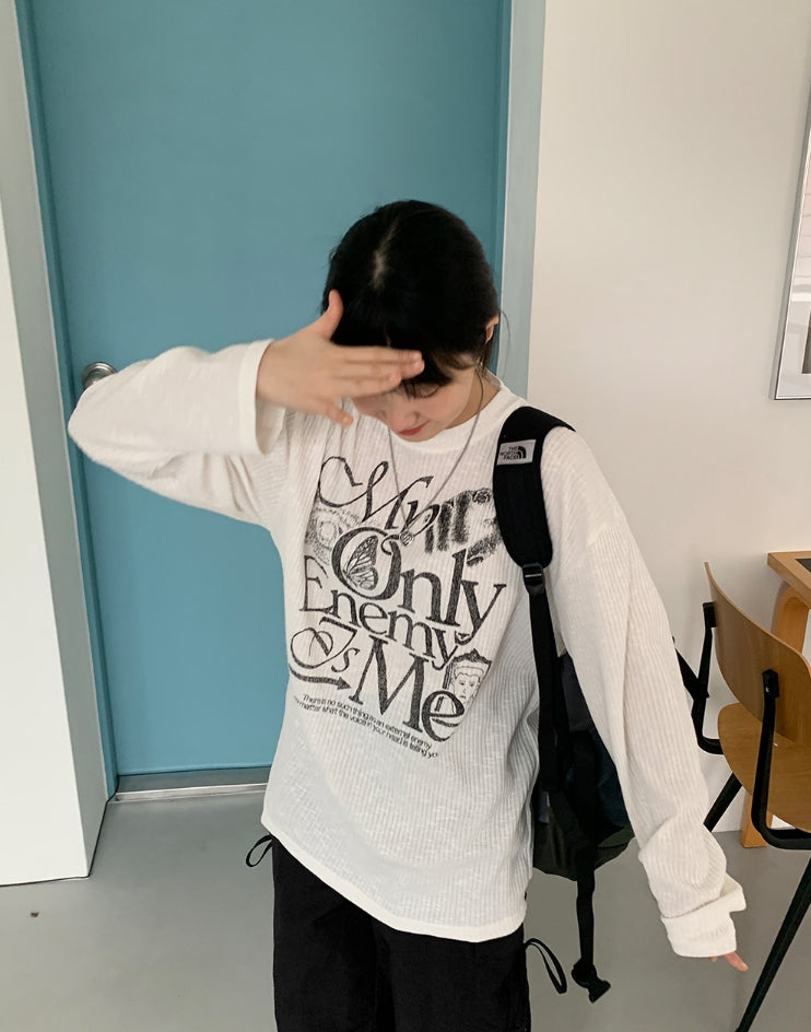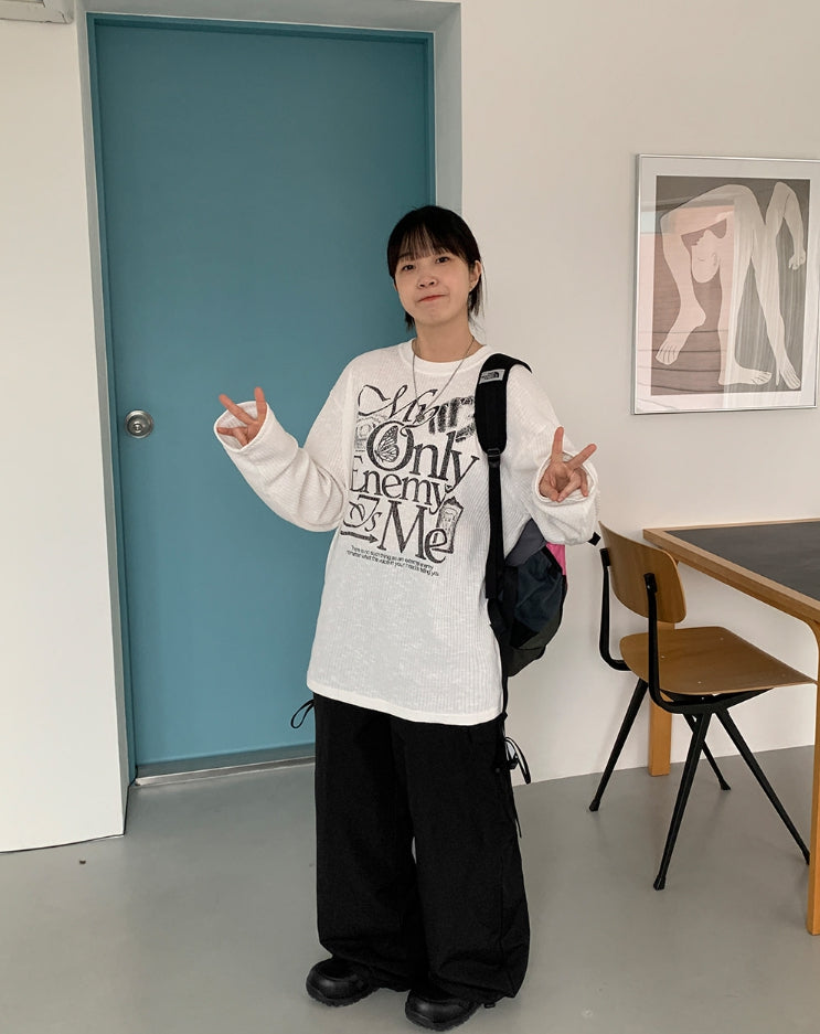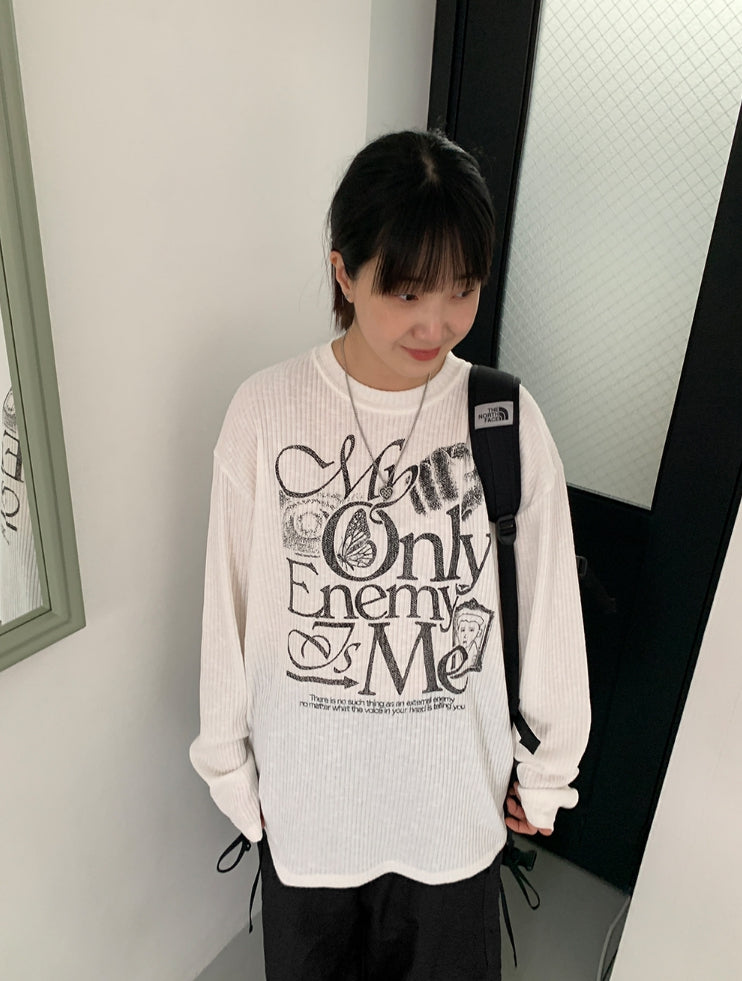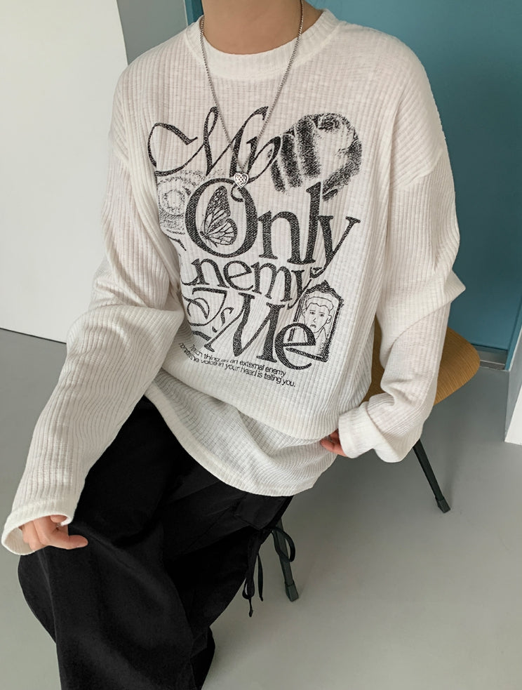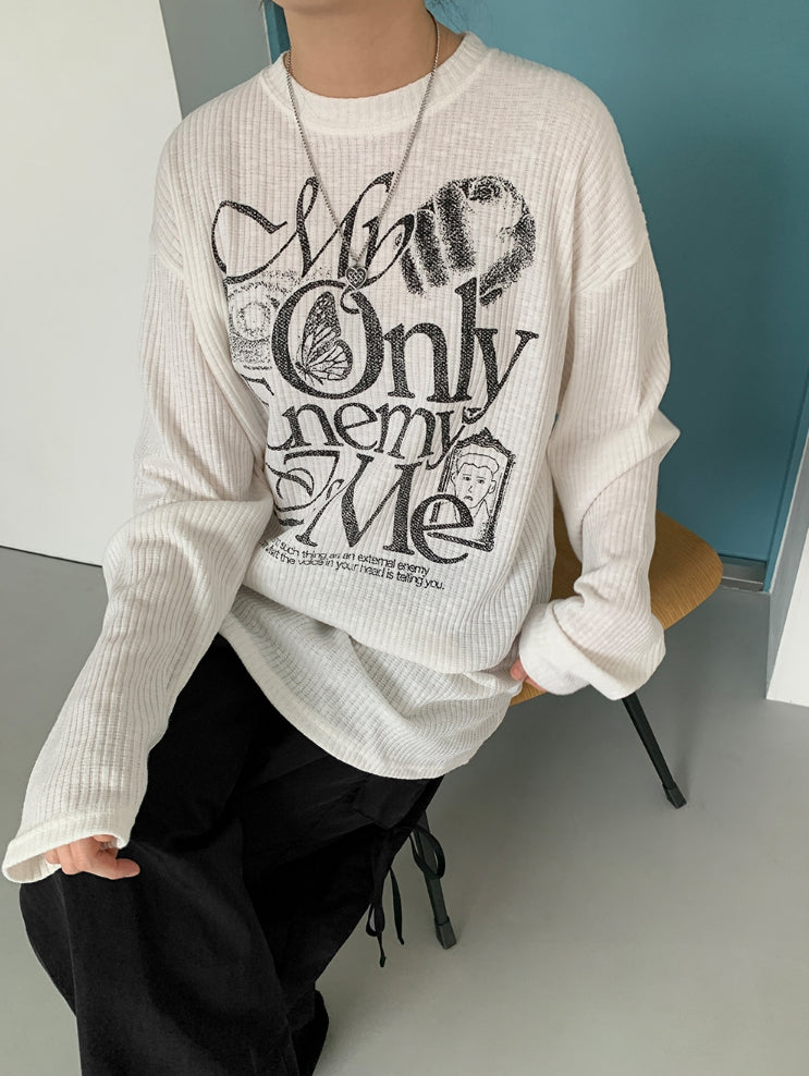 [男女兼用]ボドゥンレタリングニット長袖Tシャツ