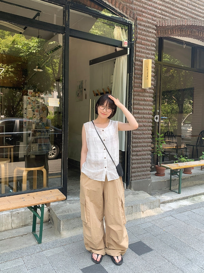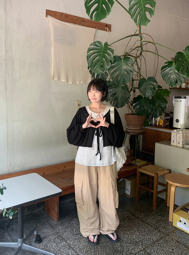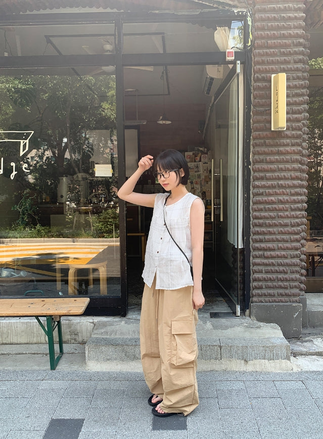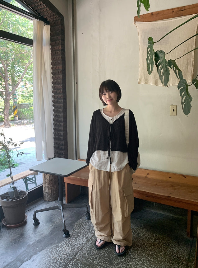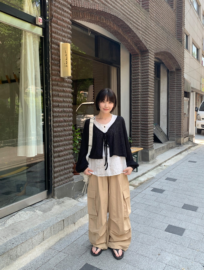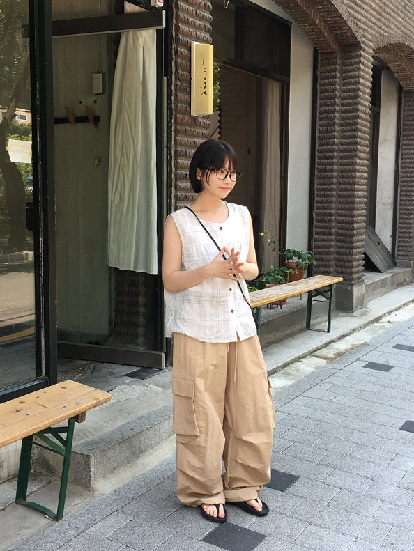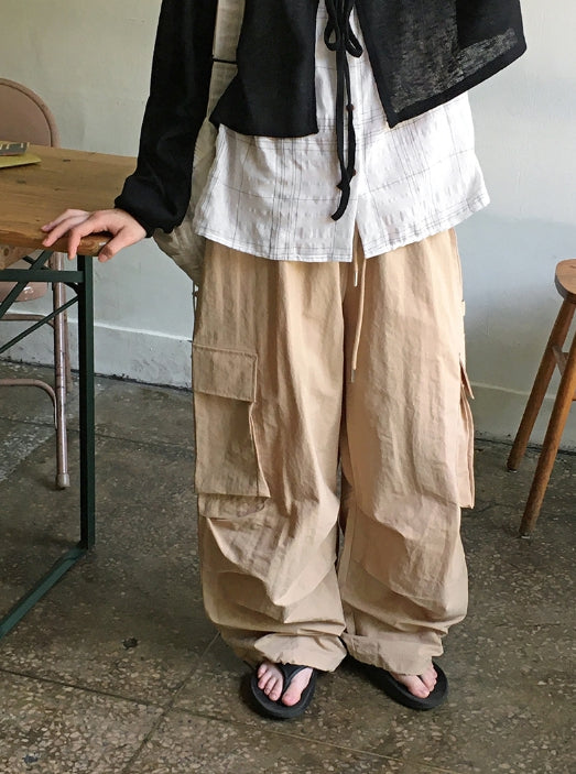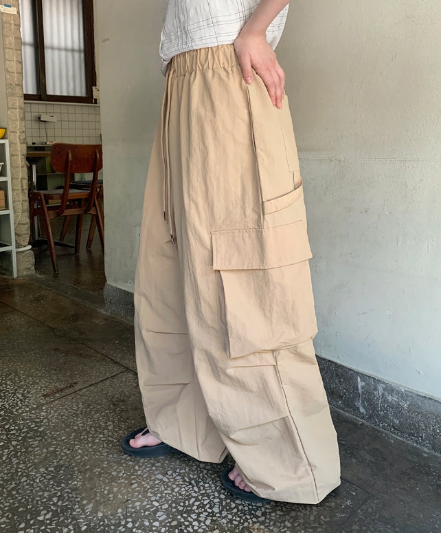[unisex] Canna Banding Nylon String Cargo Parachute Pants