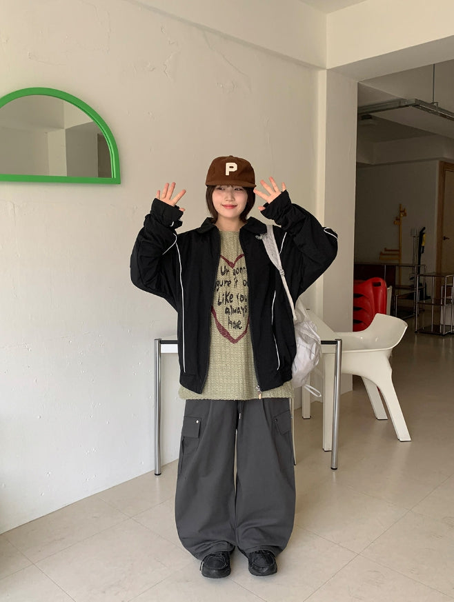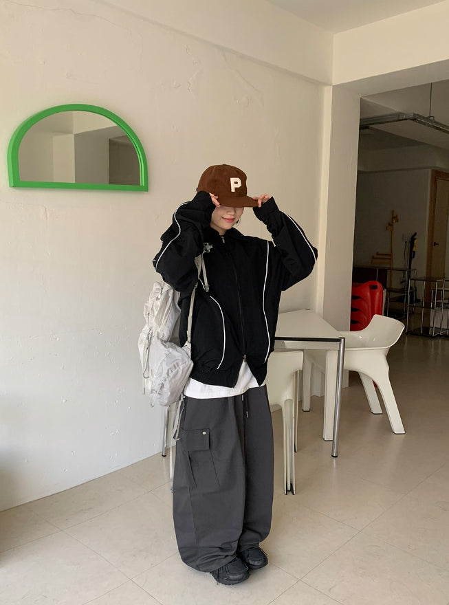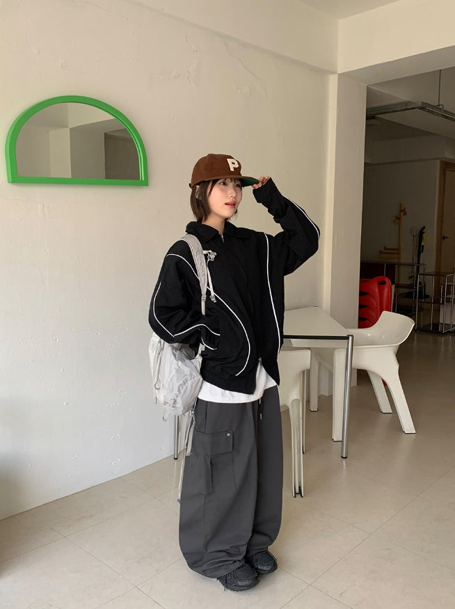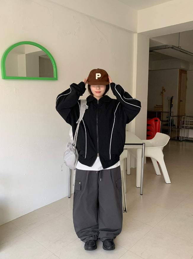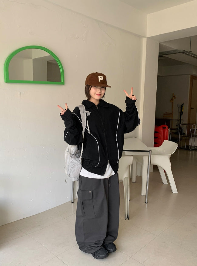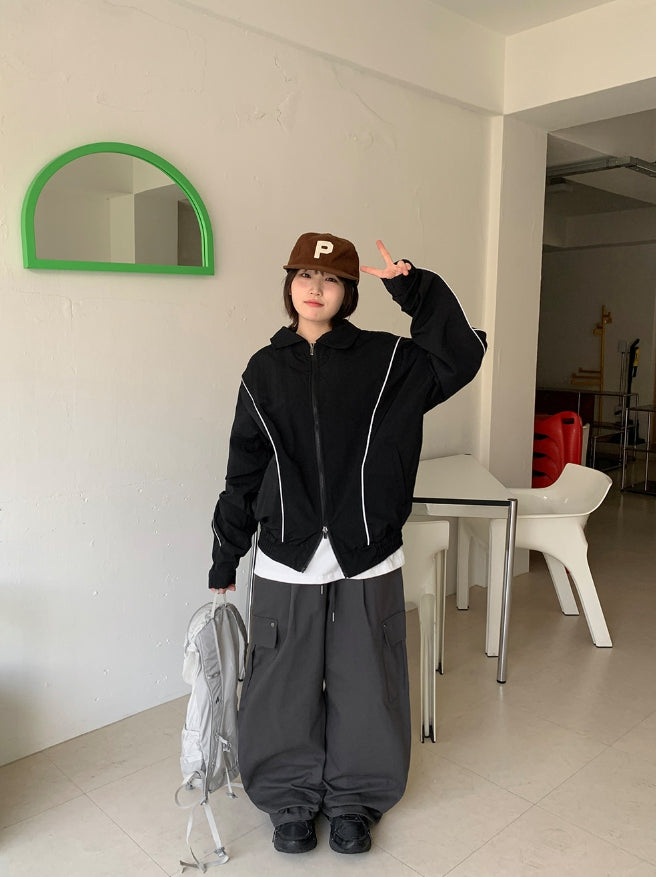 [男女兼用]ケートンパイピングラインツーウェイオーバーカラーウインドジャンパー