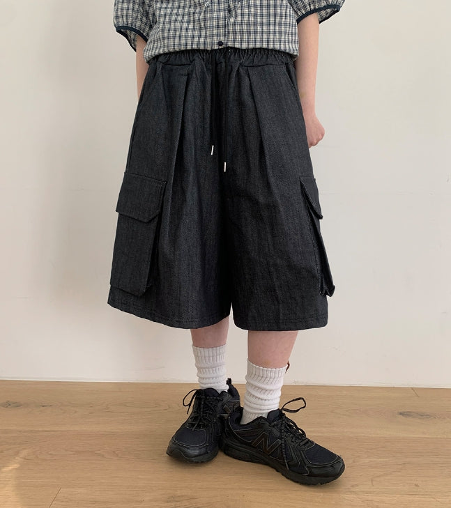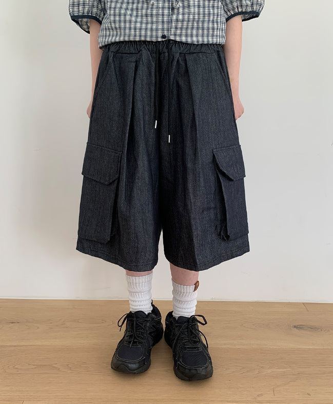 [unisex] Chanu Raw Denim Bermuda Cargo Pants
