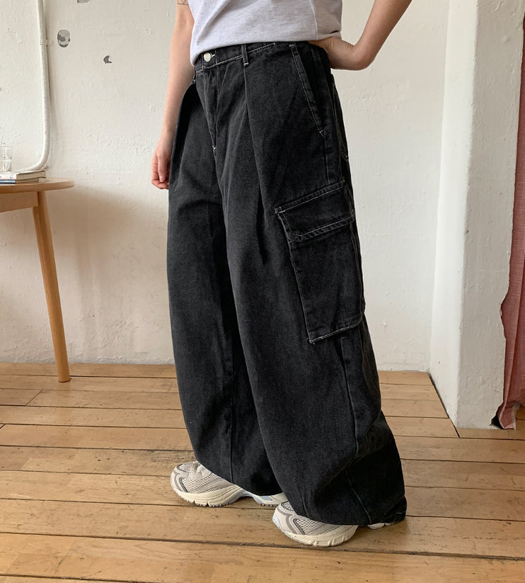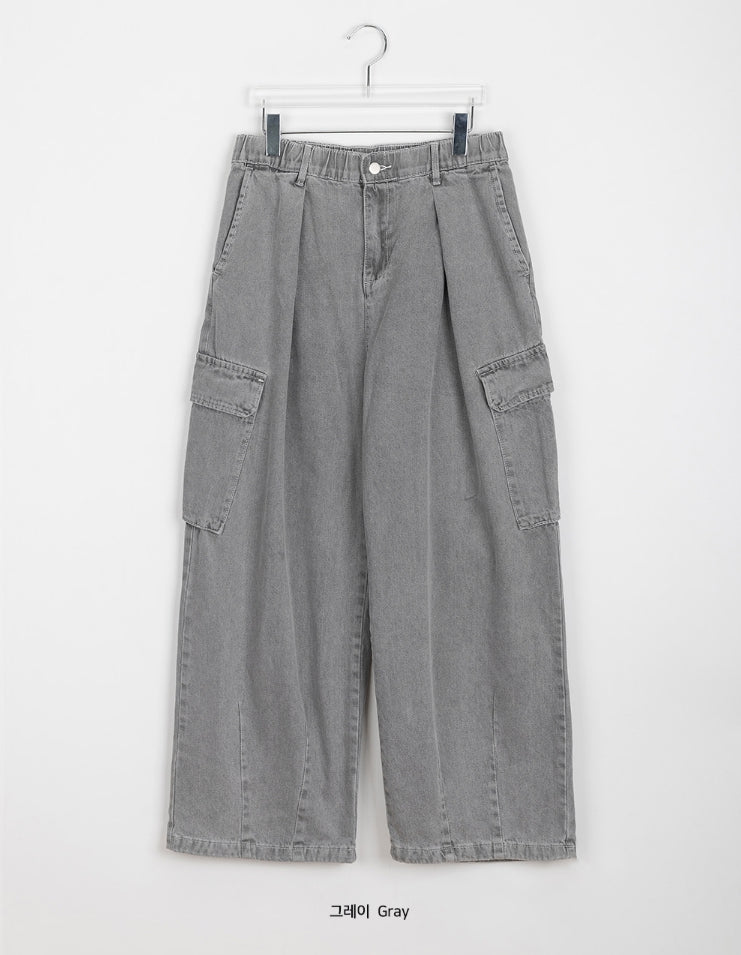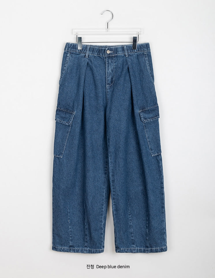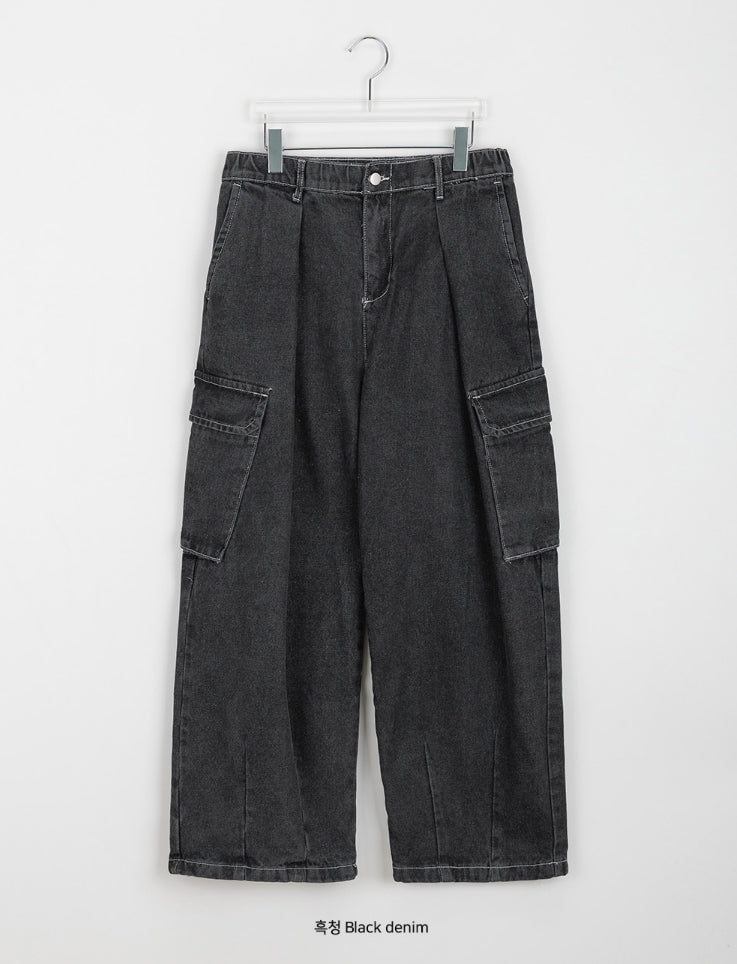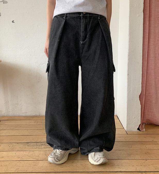 [unisex] Chofu cargo banding wide denim pants