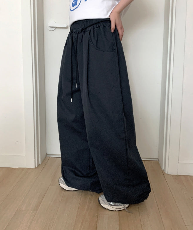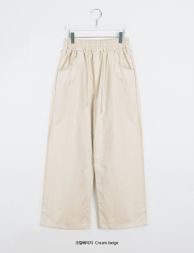 [男女兼用]チュビーピンタックバンディングリングワイドコットンパンツ