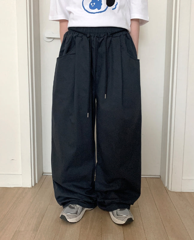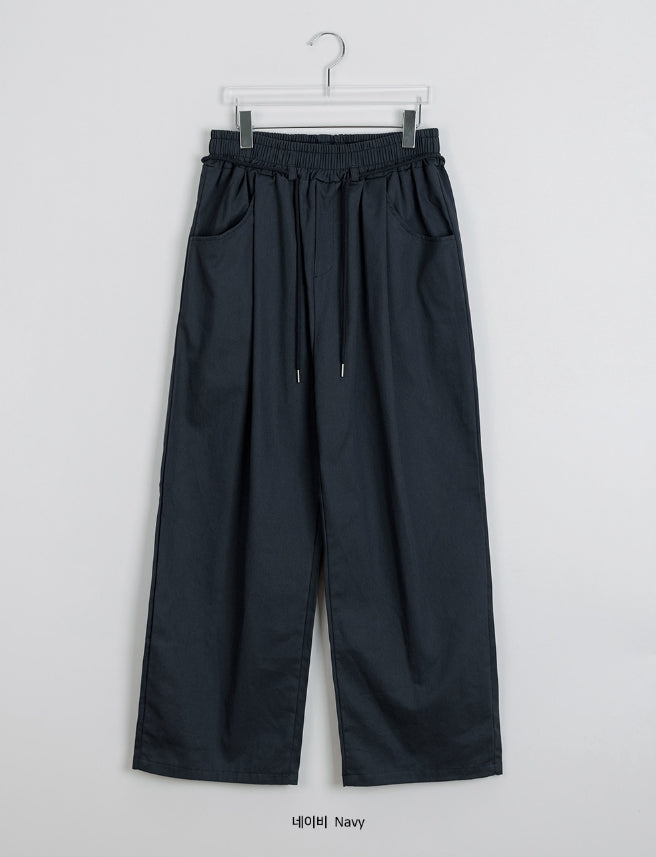 [unisex] Chubby Pin Tuck Banding Ring Wide Cotton Pants