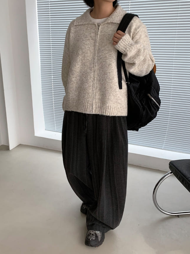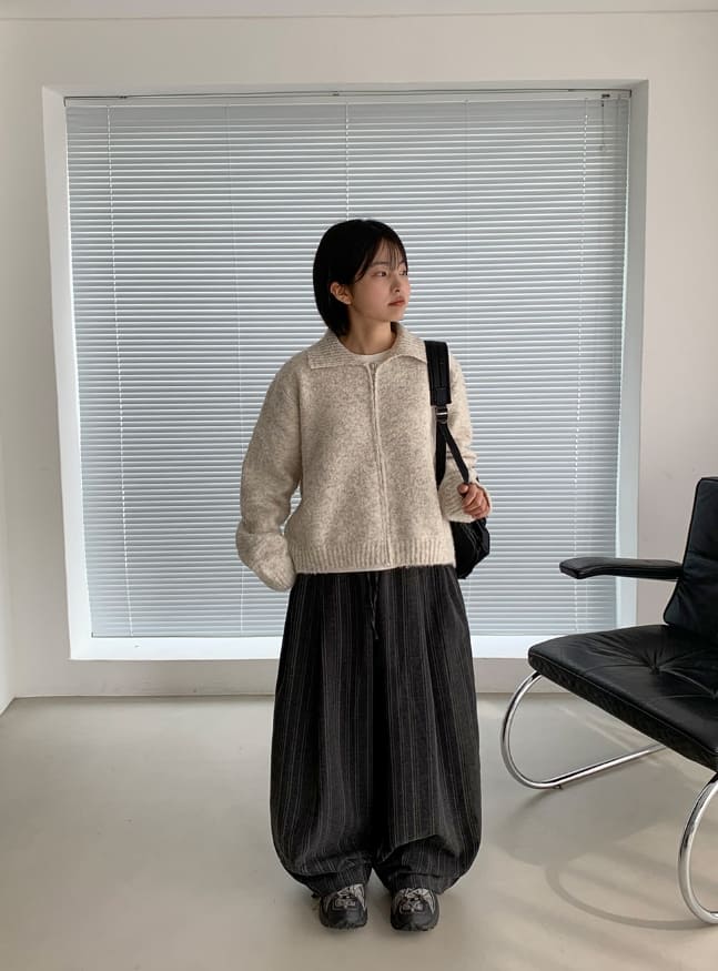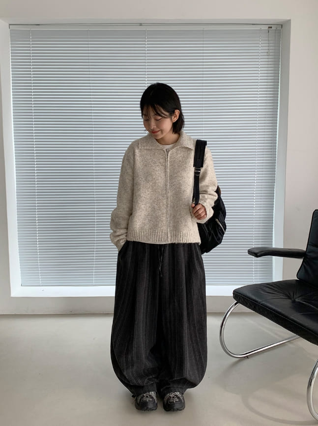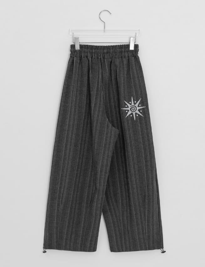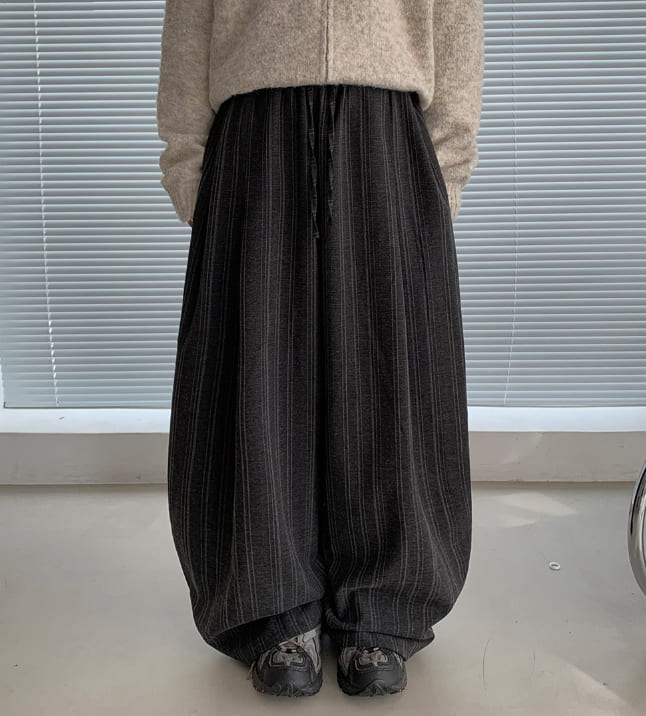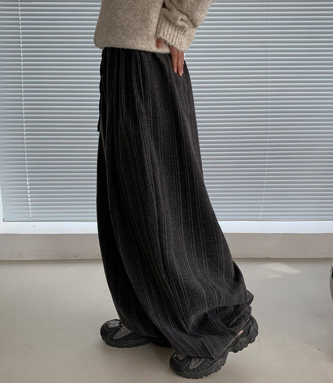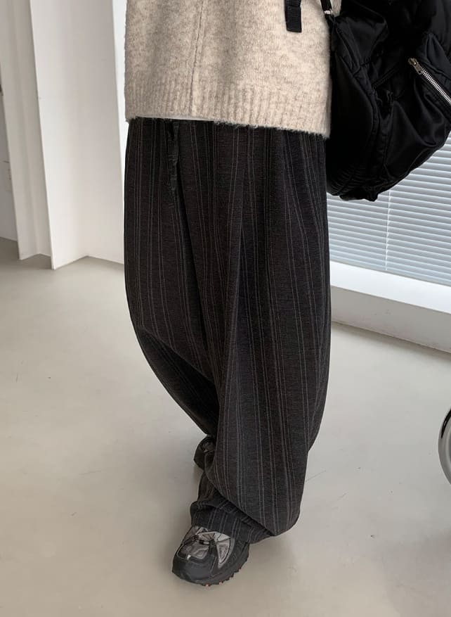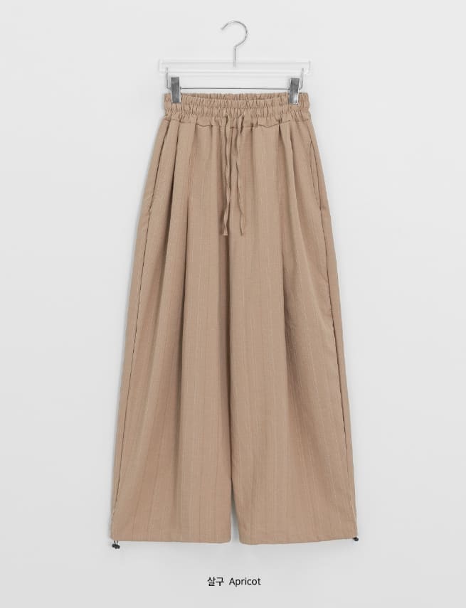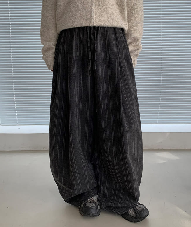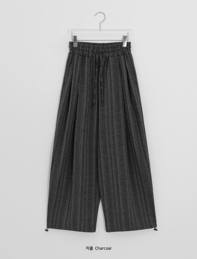 [Unisex] Cochaco Stripe Pintuck Banding Wide Pants