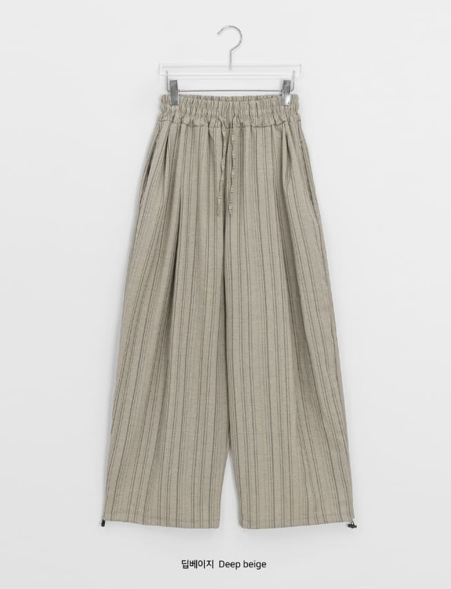 [男女兼用]コカコストライプピンタックバンディングワイドパンツ