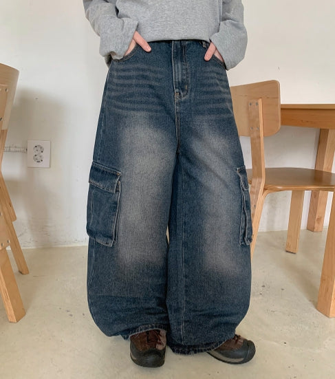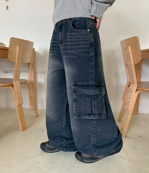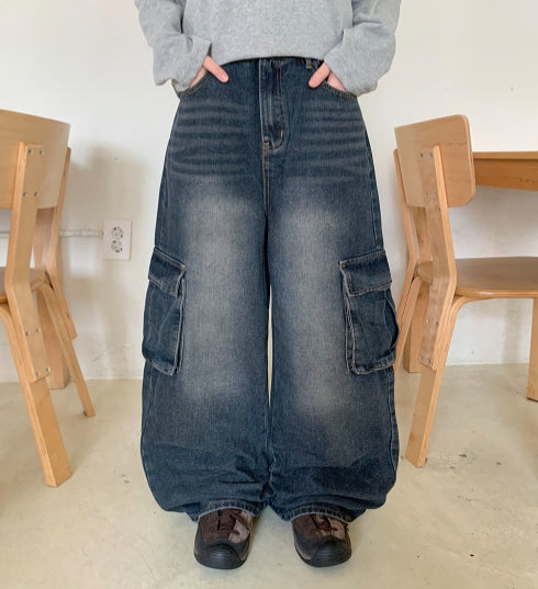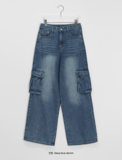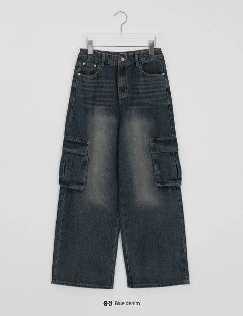 [unisex] Cocoru Washing Cargo Wide Denim Pants