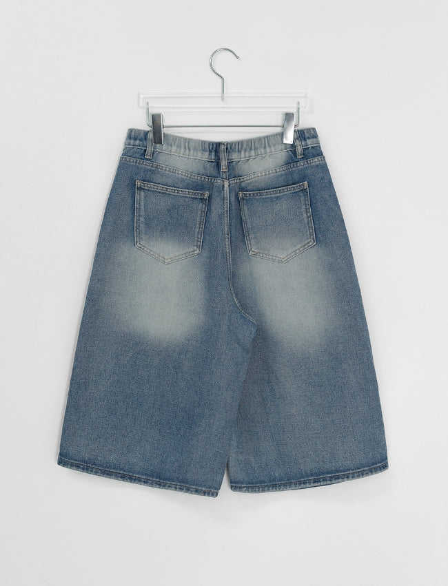 [Unisex] Collend Banding Washing Denim Bermuda Pants