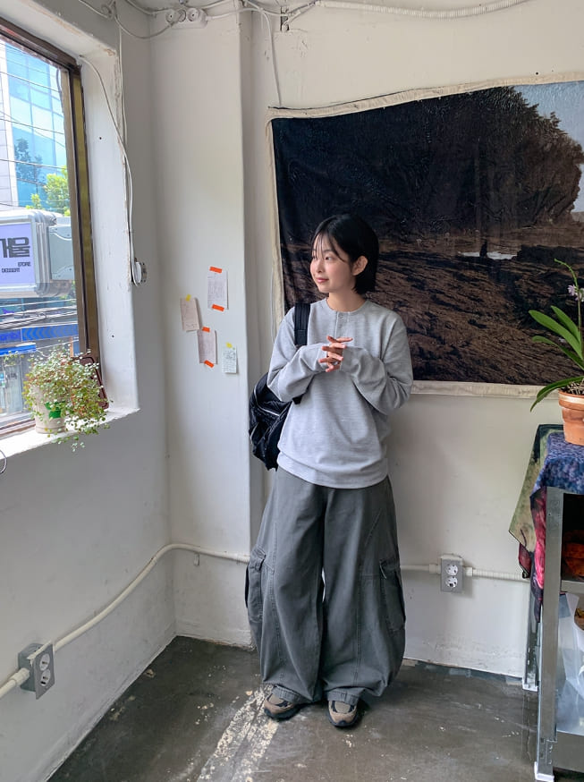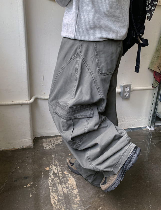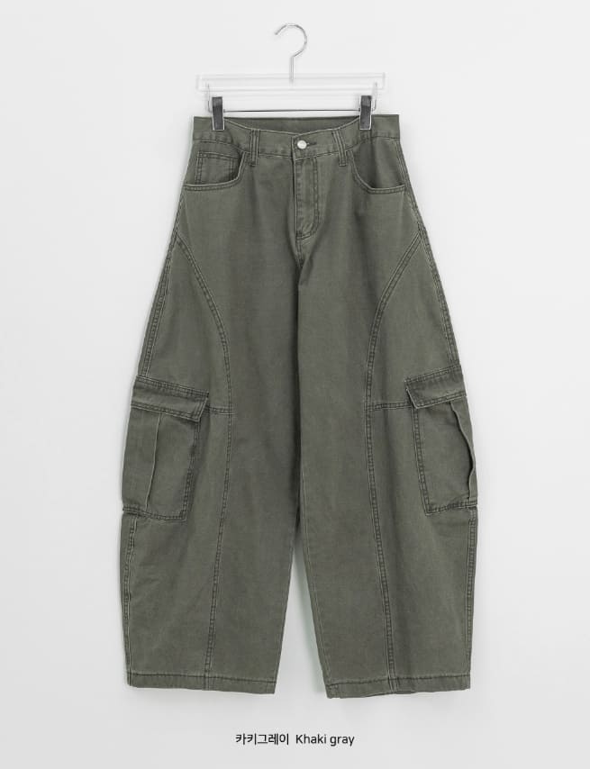 [unisex] Collet Pigment Curved Cargo Balloon Wide Pants