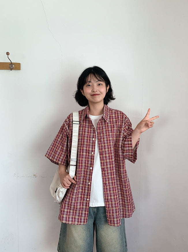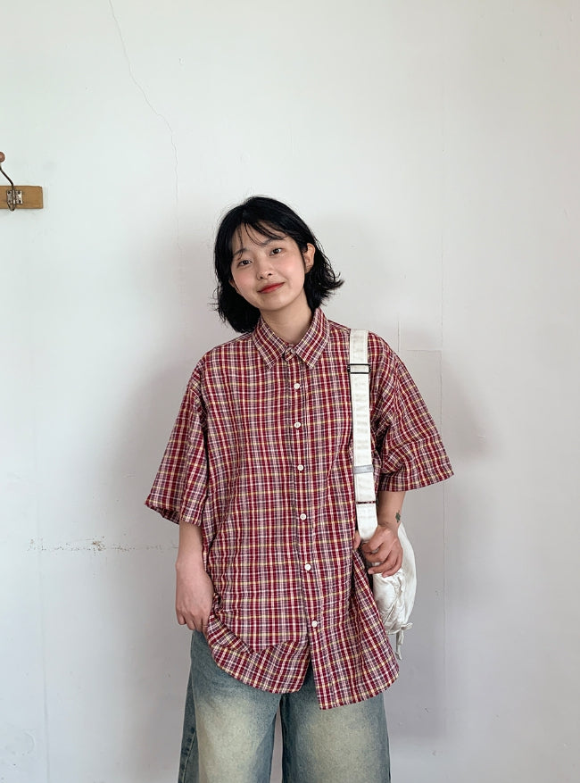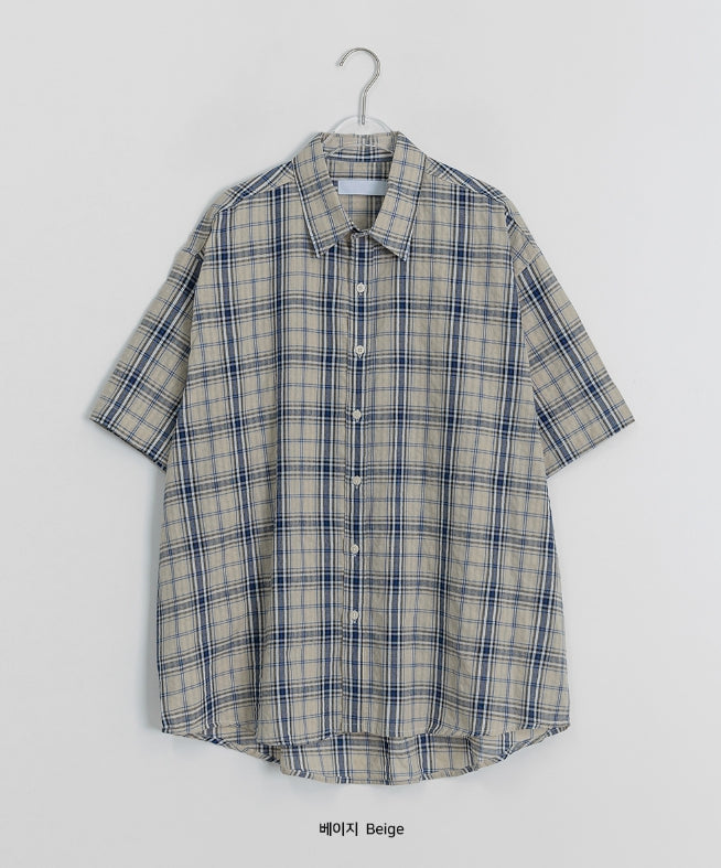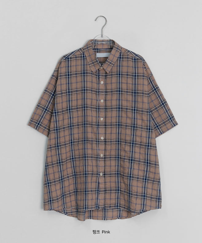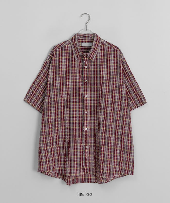 [unisex] Colmas Check Seersucker Short Sleeve Shirt