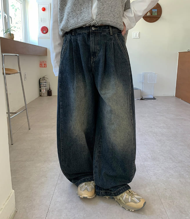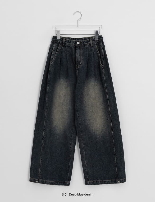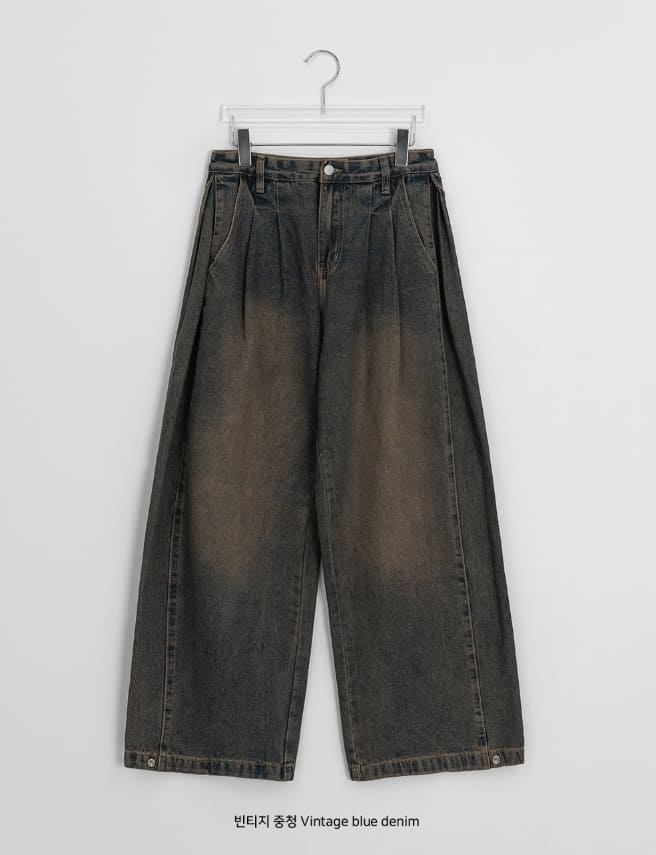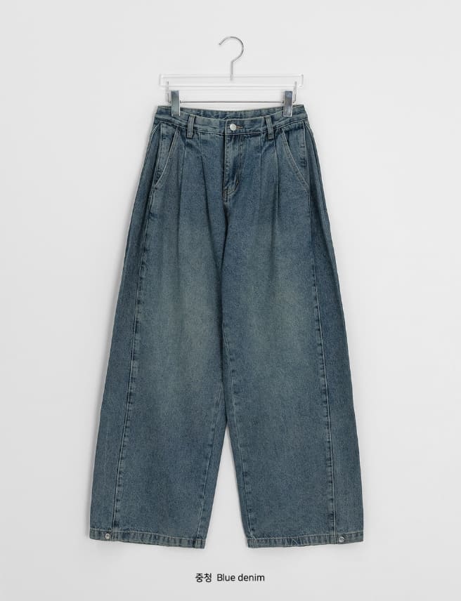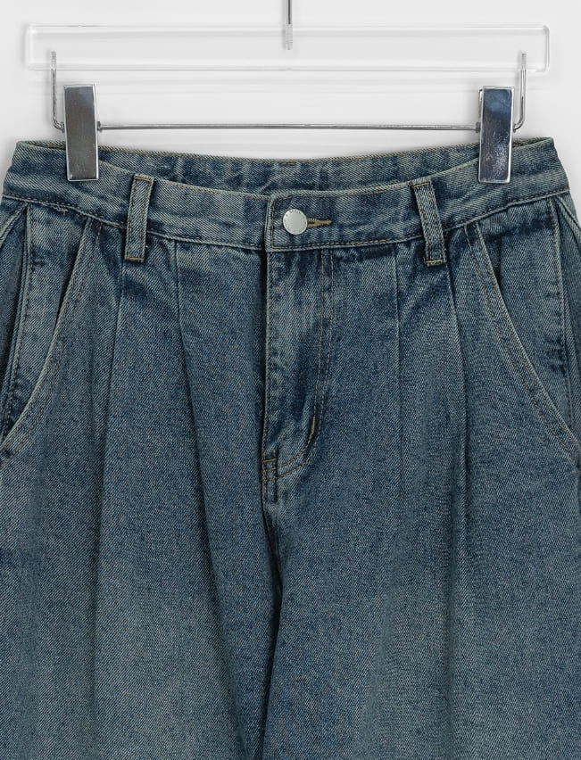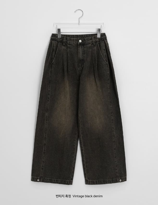 [男女兼用]コンデンピンタックデニムワイドパンツ