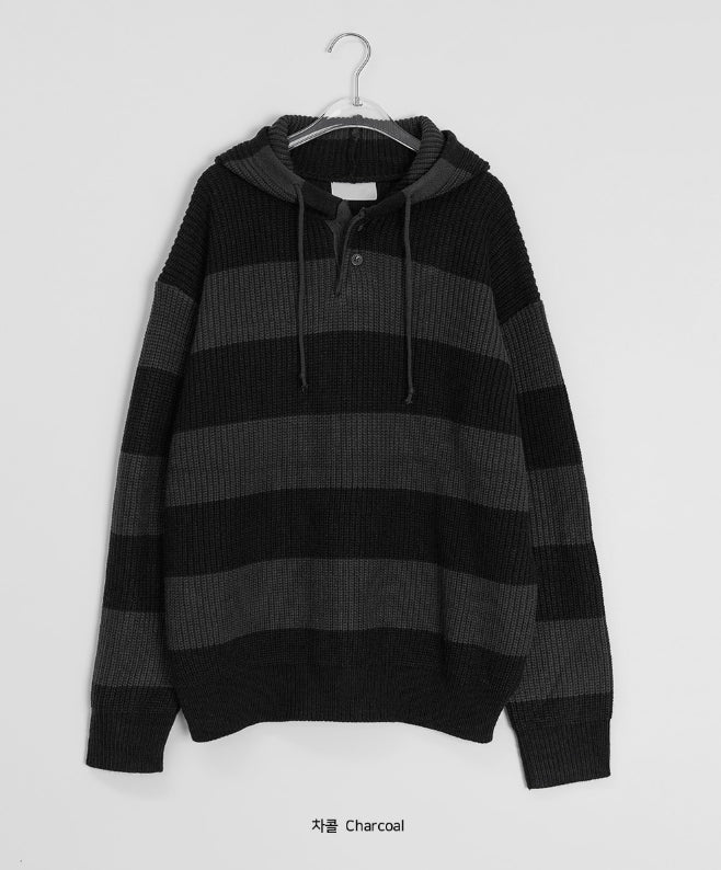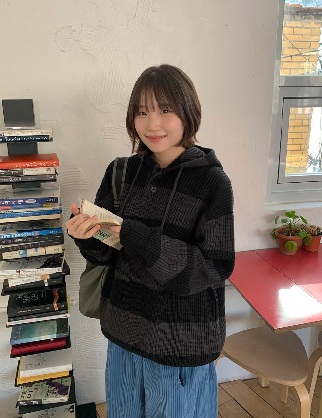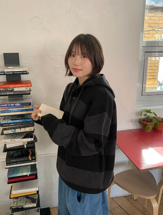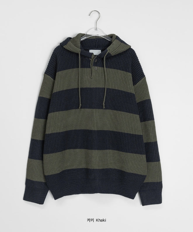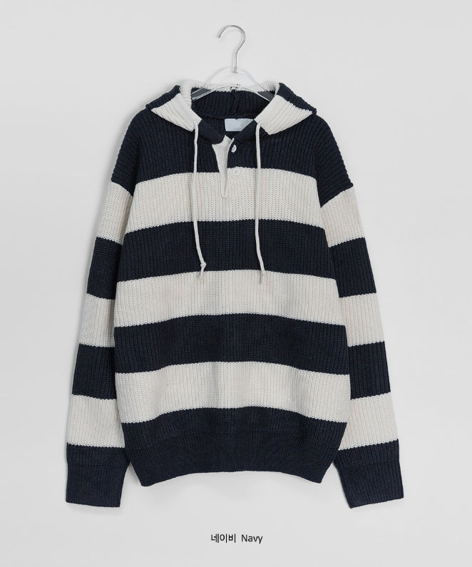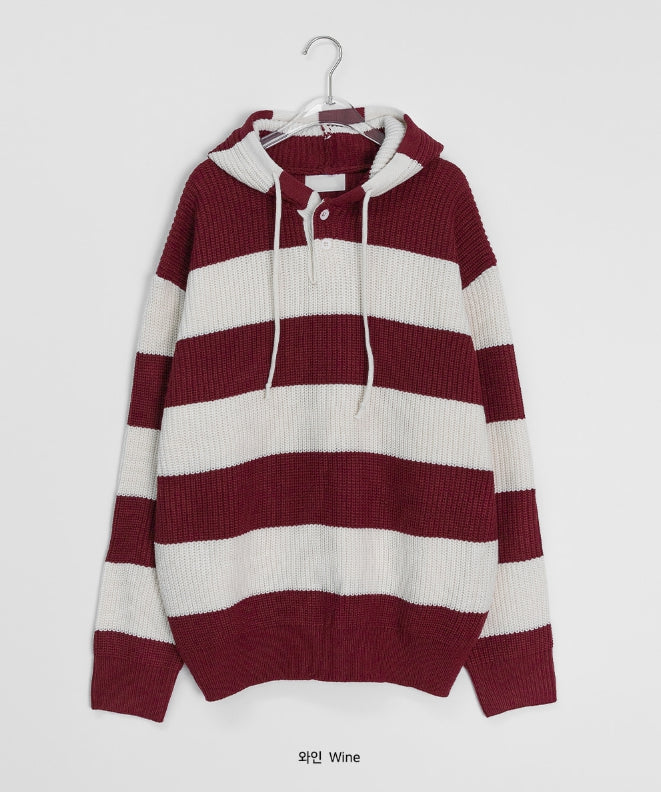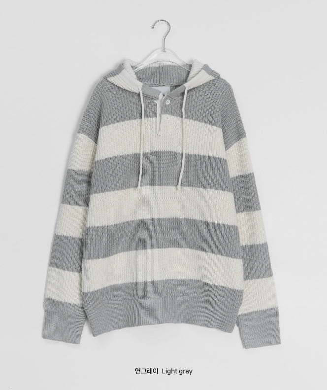 [男女兼用]コーリンボーダーボタンオーバーフードニット
