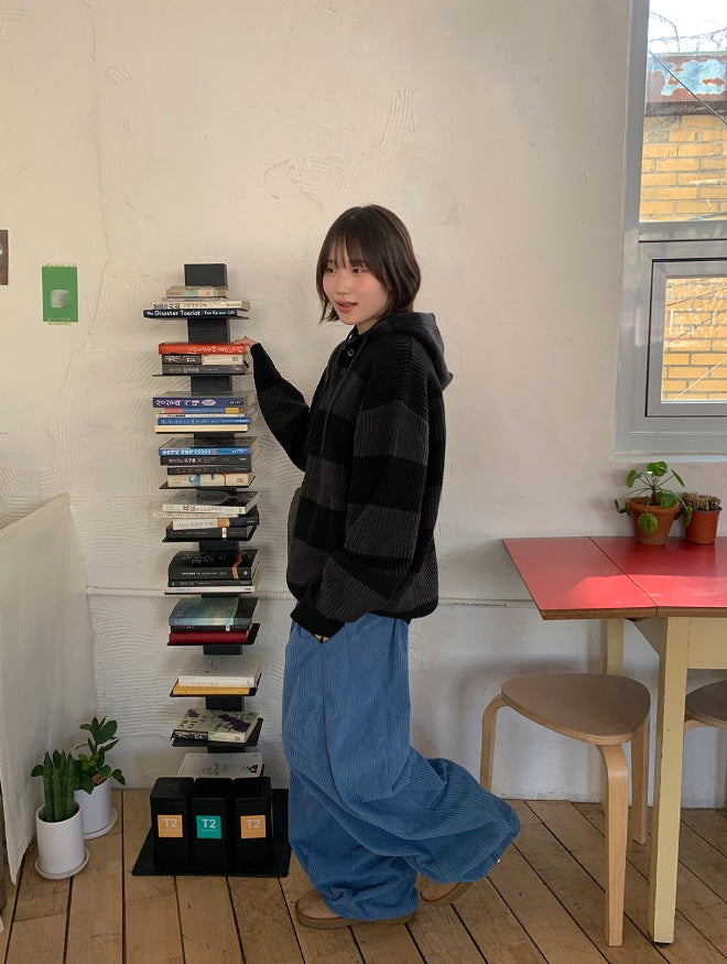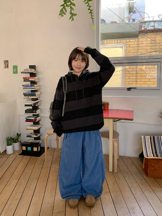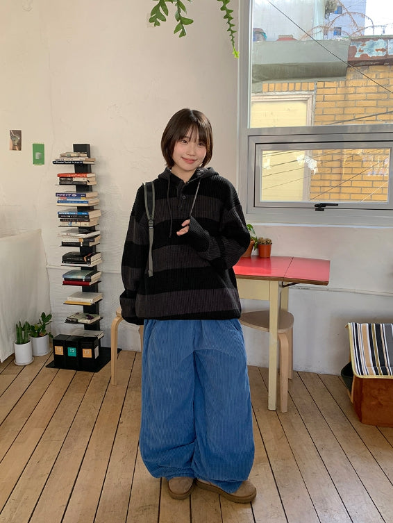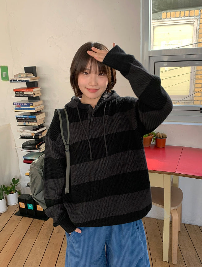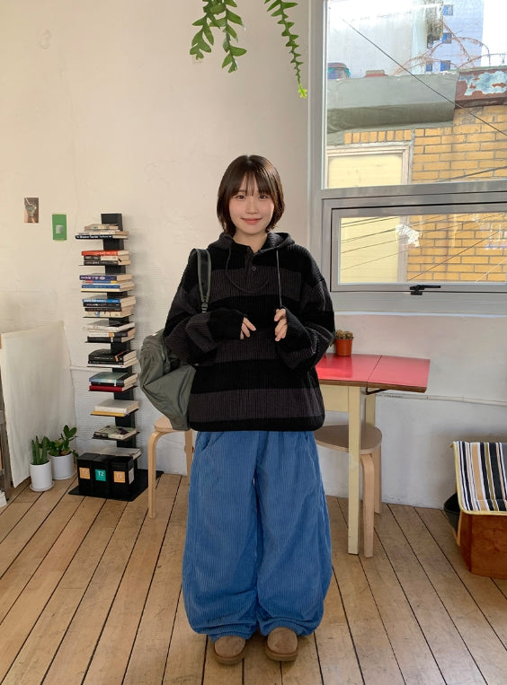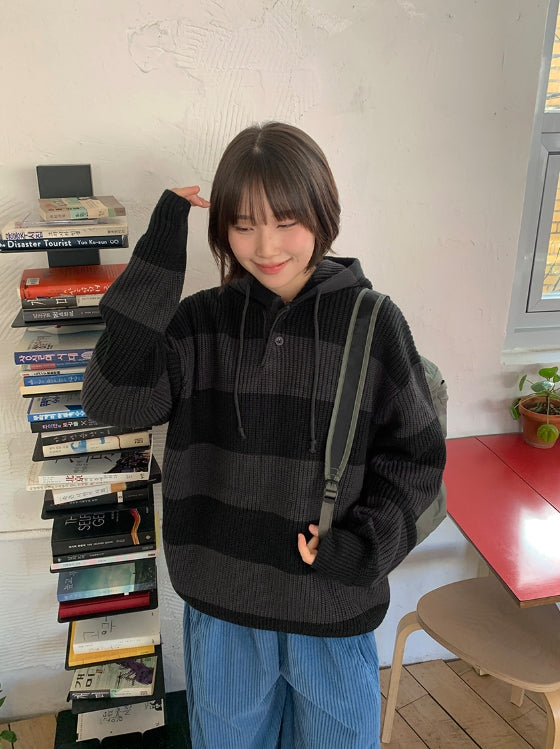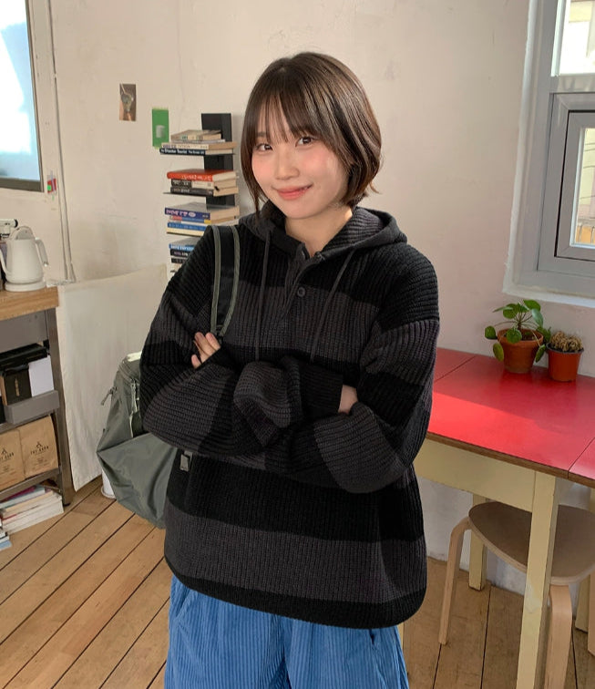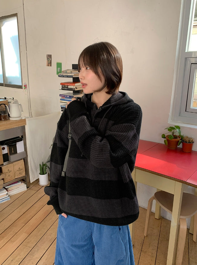 [男女兼用]コーリンボーダーボタンオーバーフードニット