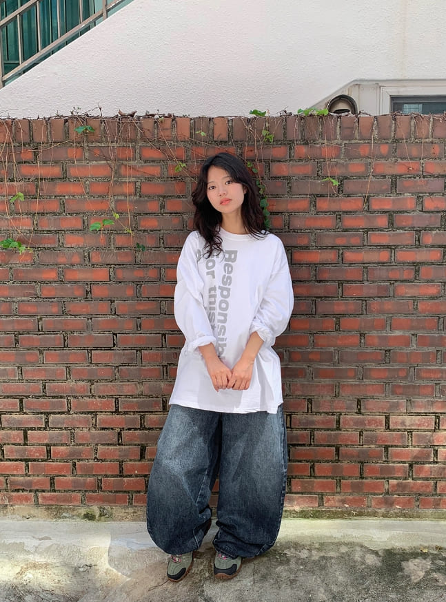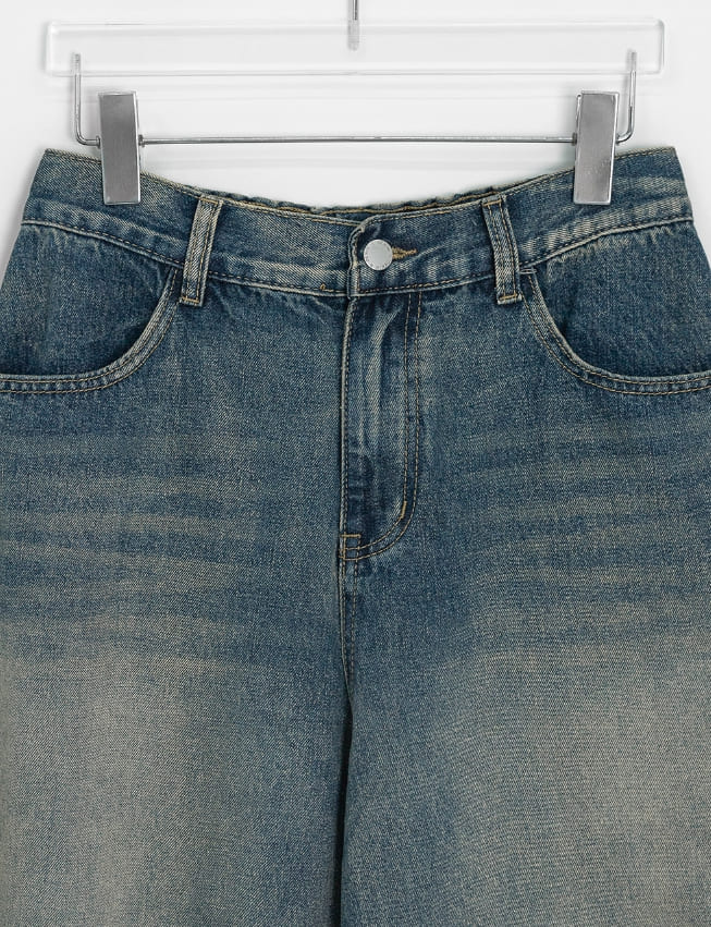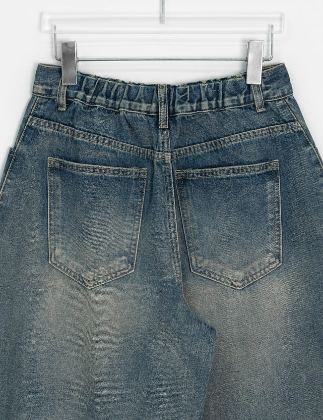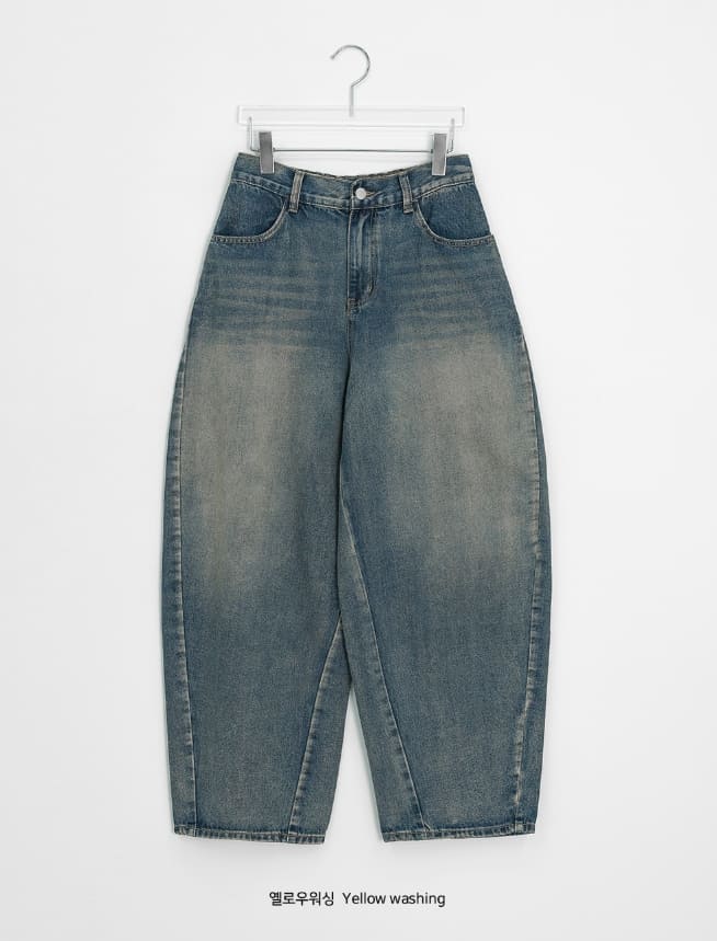 [unisex] Crion Washed Denim Banding Balloon Wide Pants
