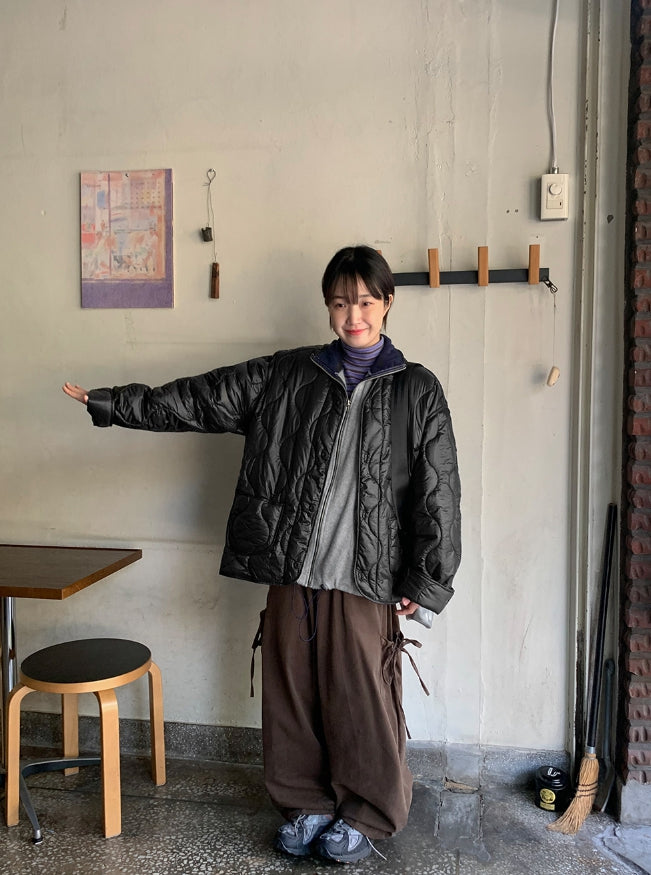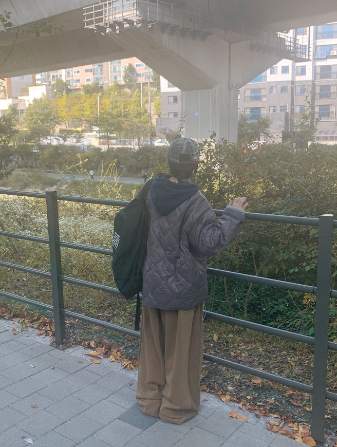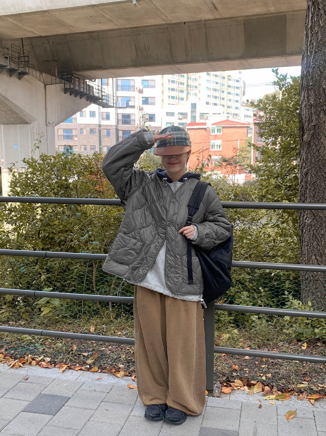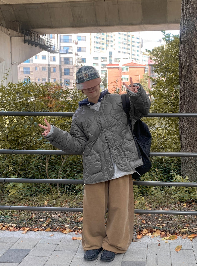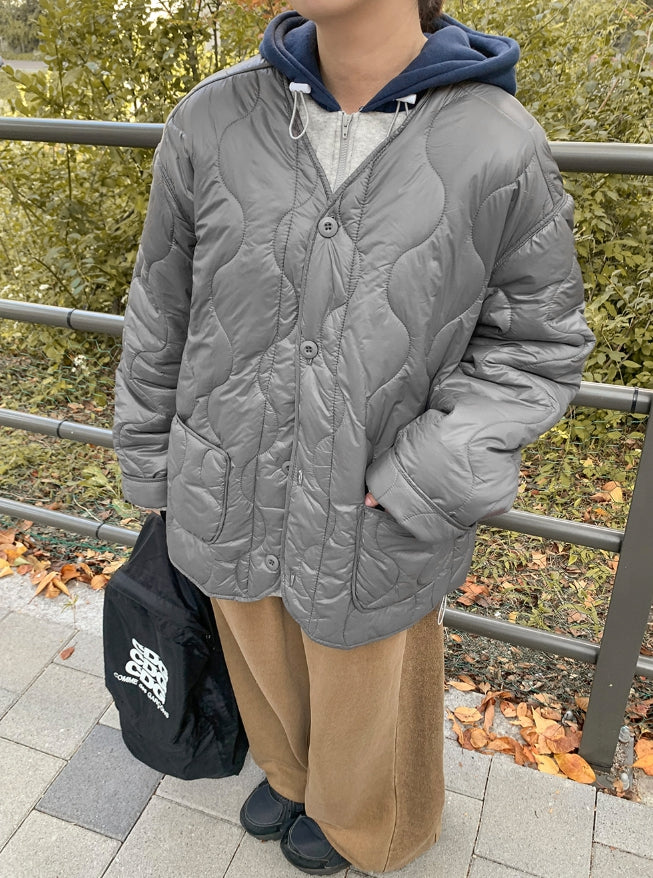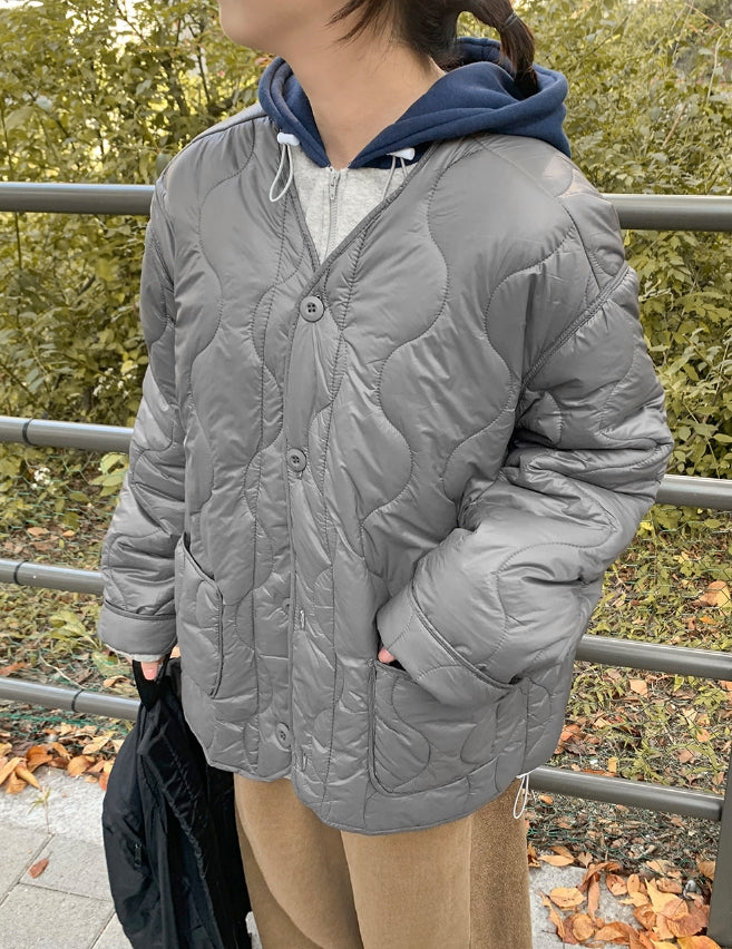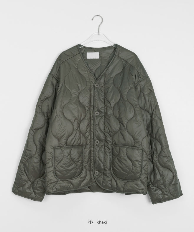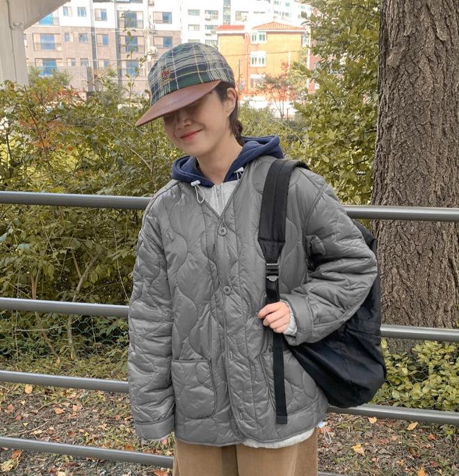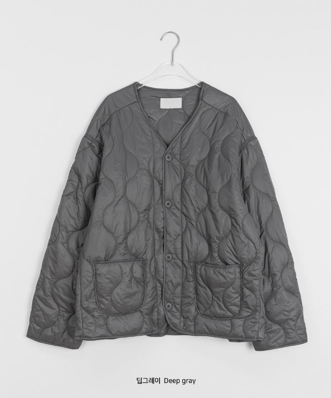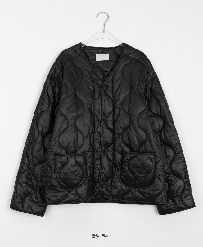 [unisex] Curie Button V-neck Pocket Quilted Jumper