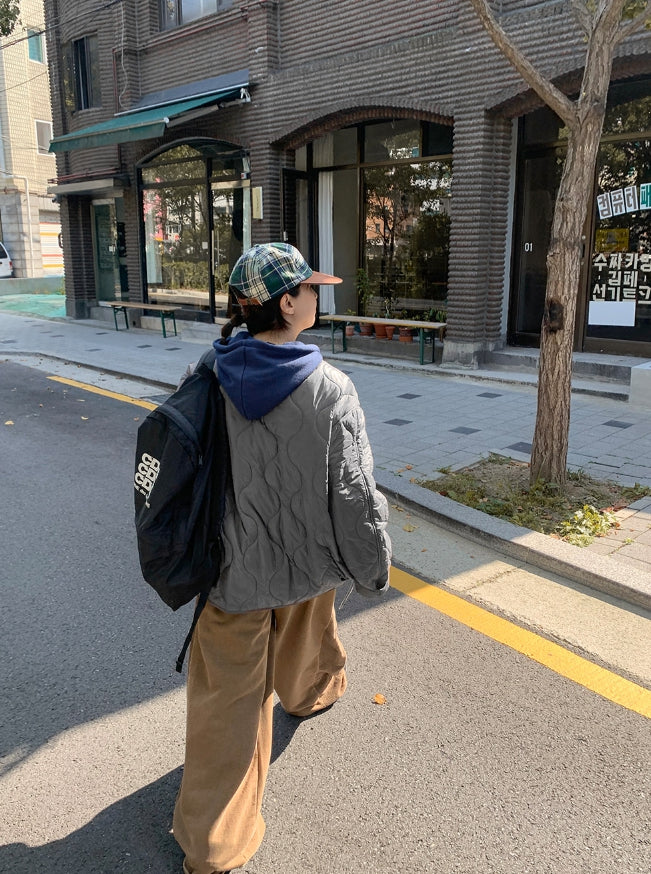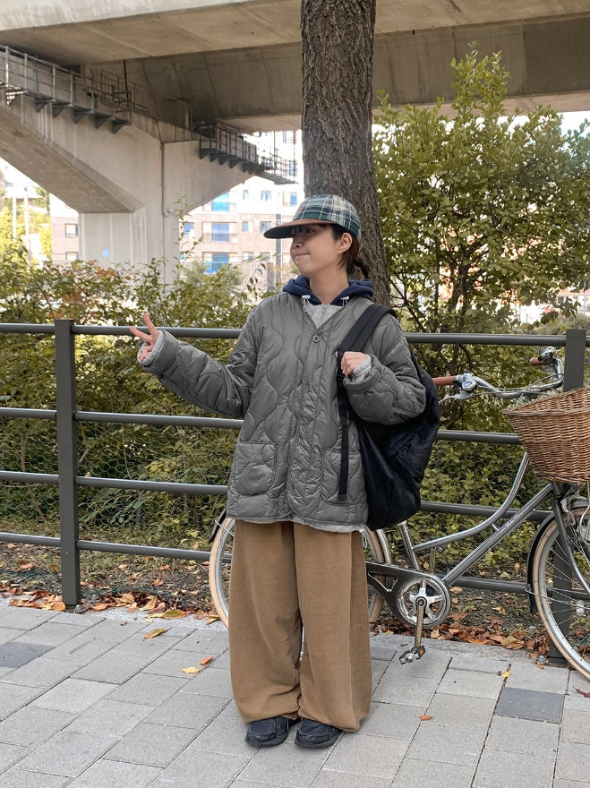 [男女兼用]キュリーボタンVネックポケットキルティングジャンパー