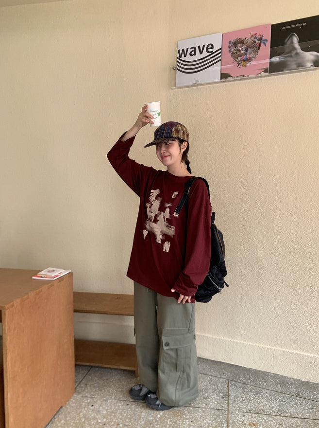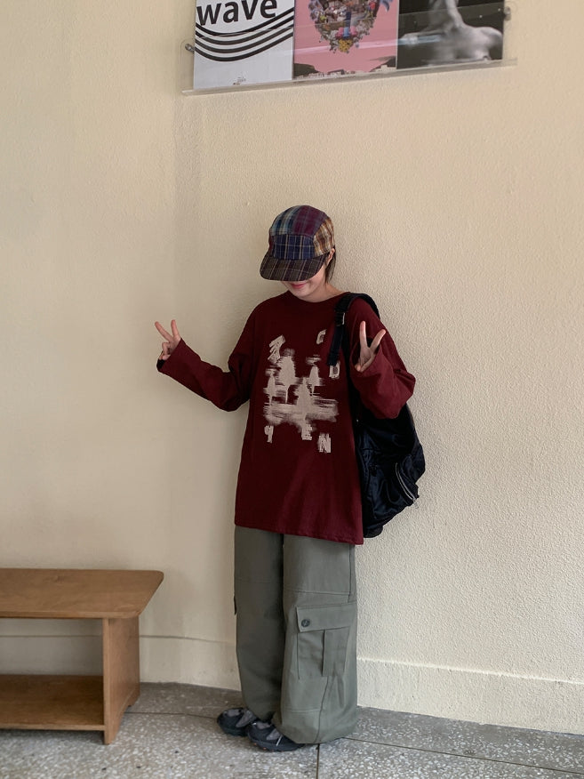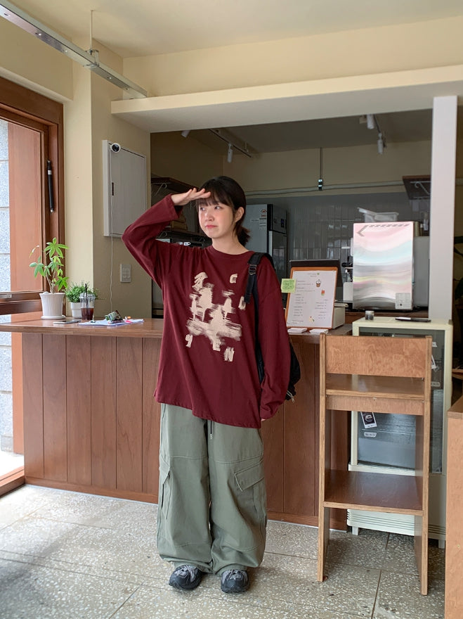[男女兼用]ジュニットプリンティングオーバー長袖Tシャツ
