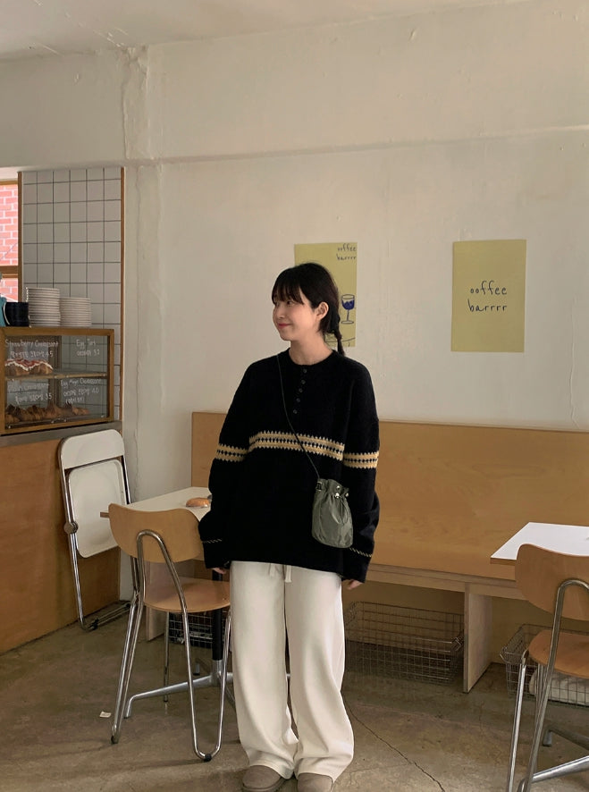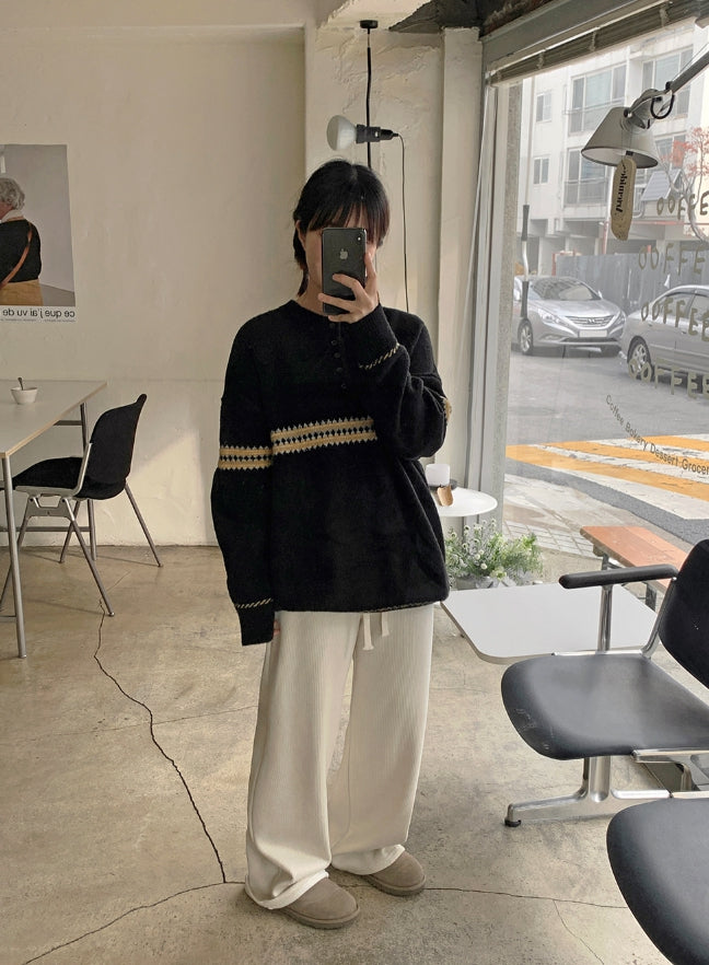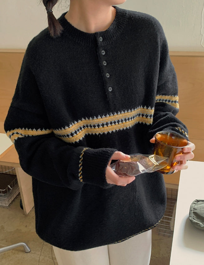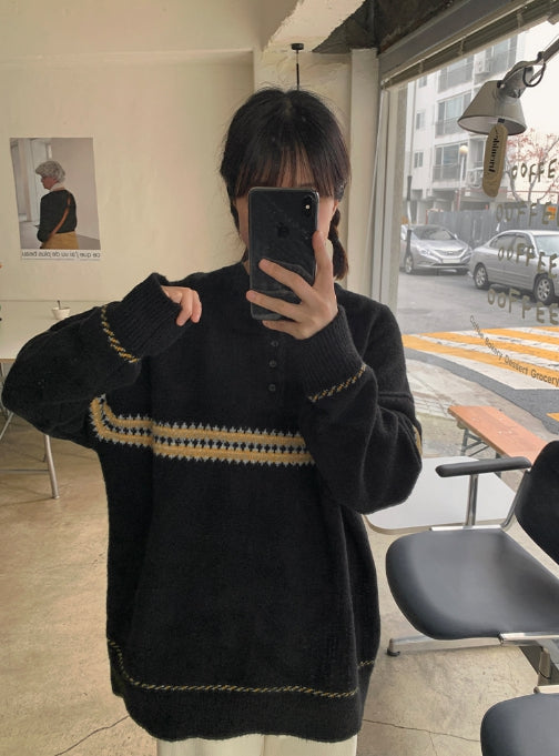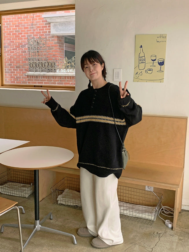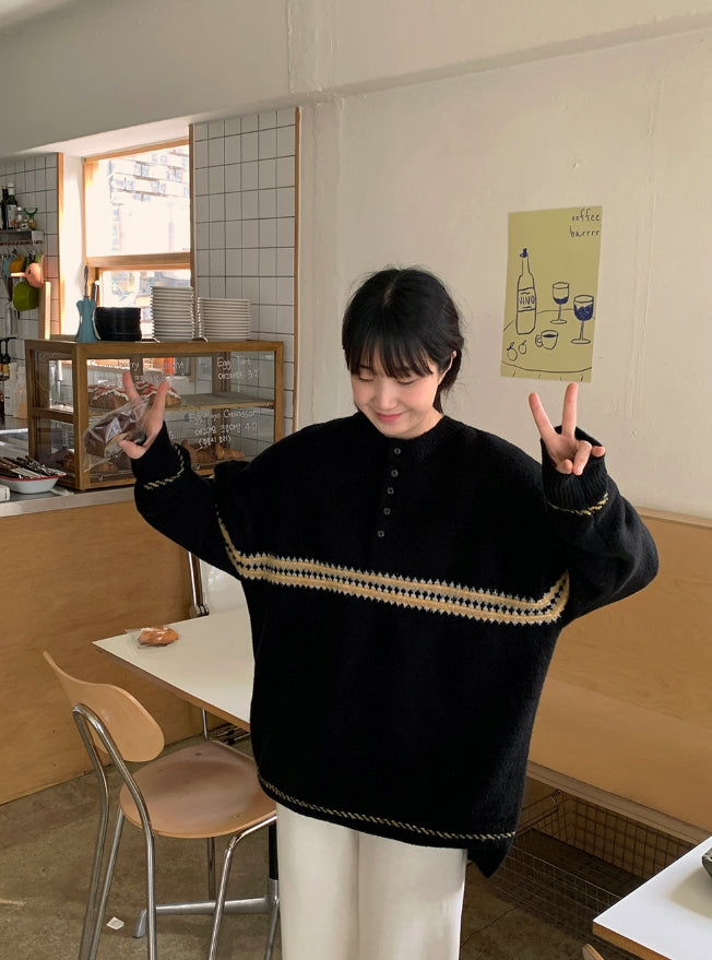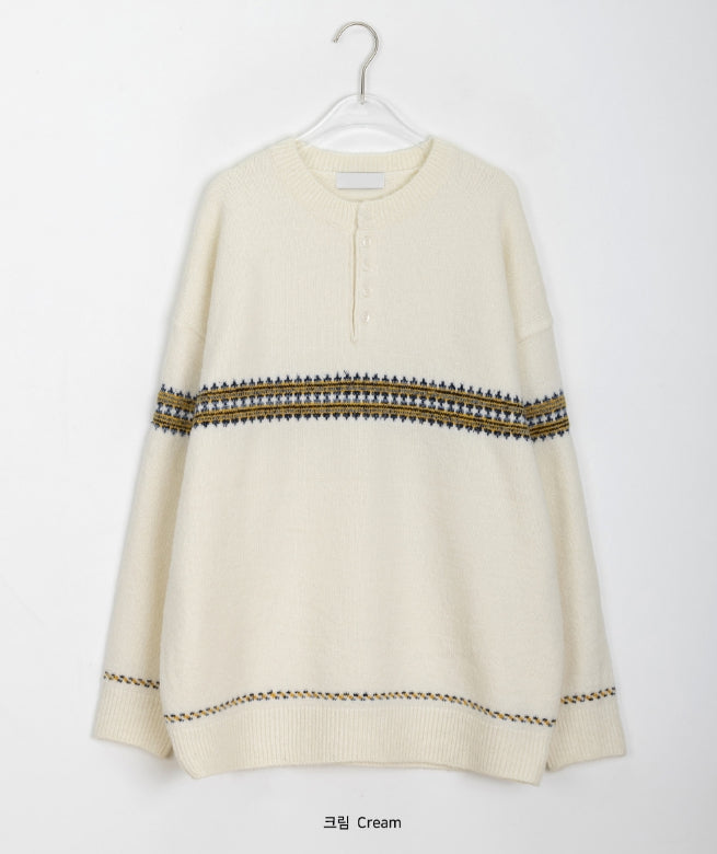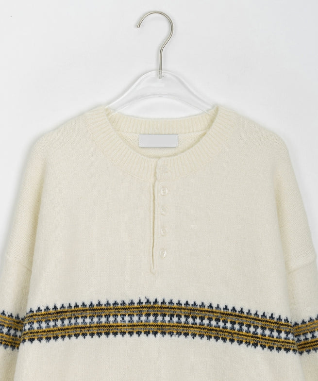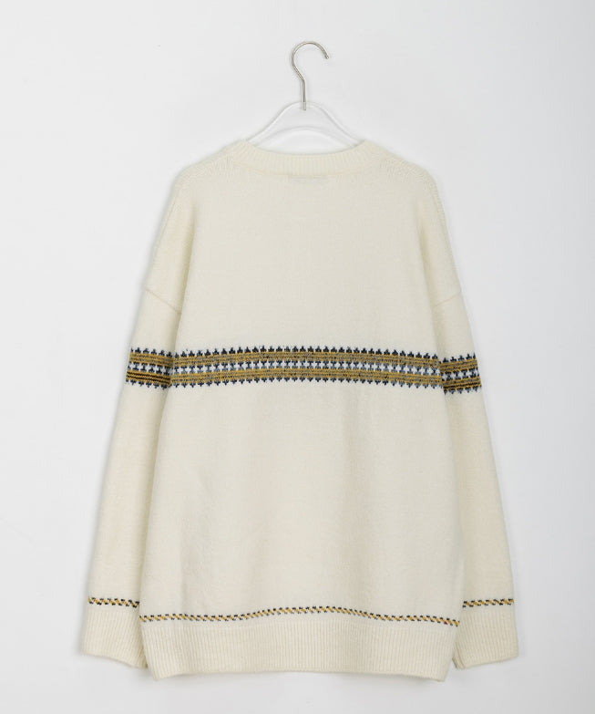 [男女兼用]レッチパターンハーフオープンオーバーニット