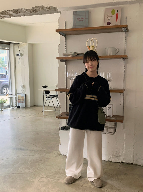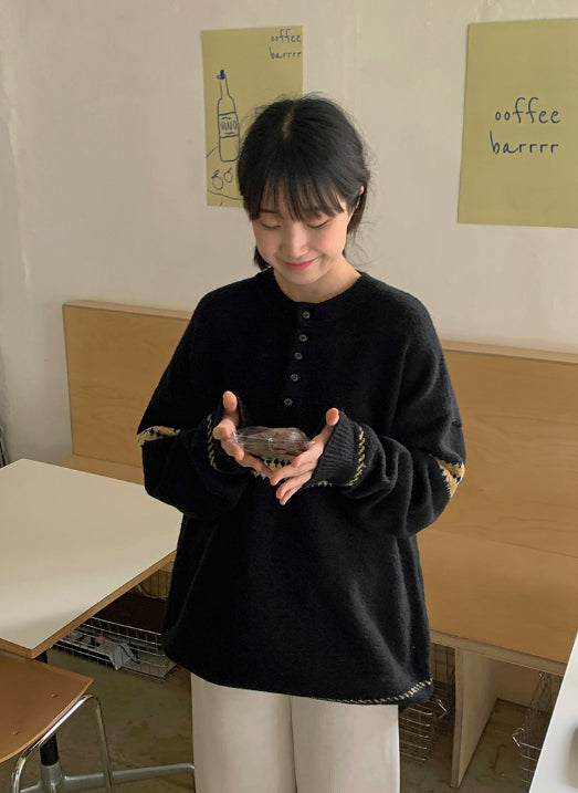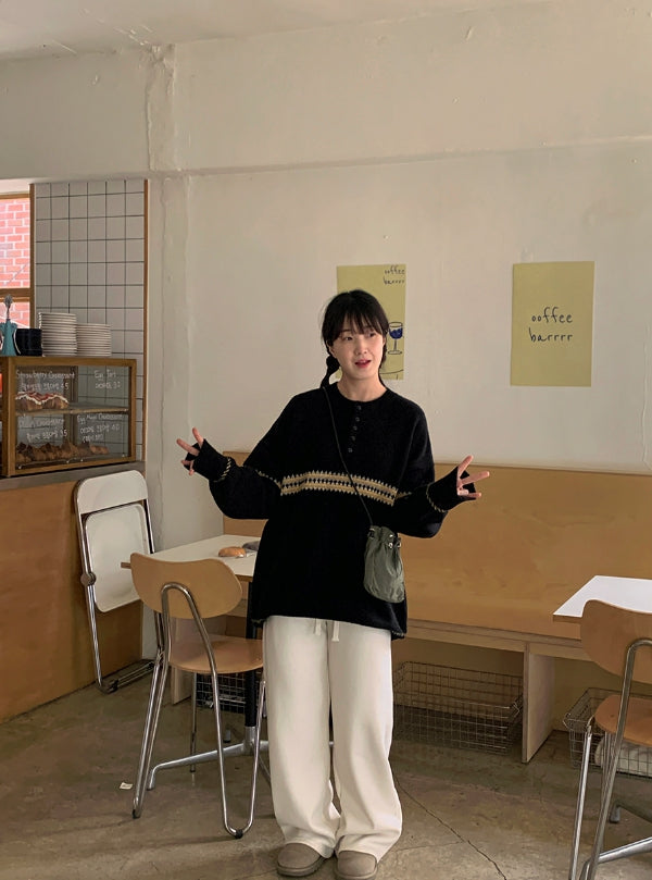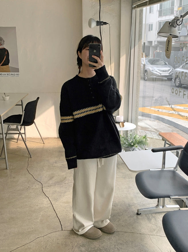 [unisex] Letchy Pattern Half Open Over Knit