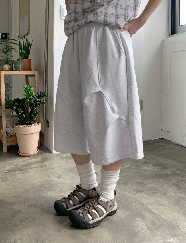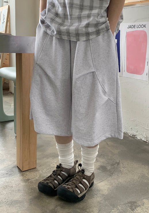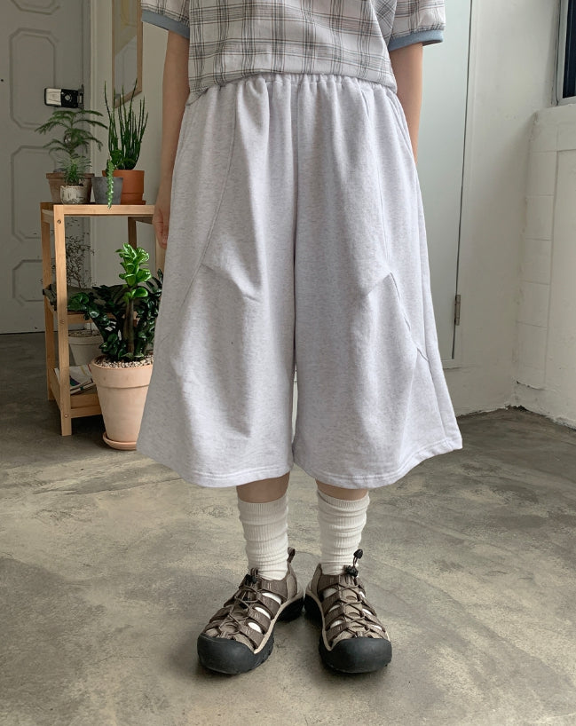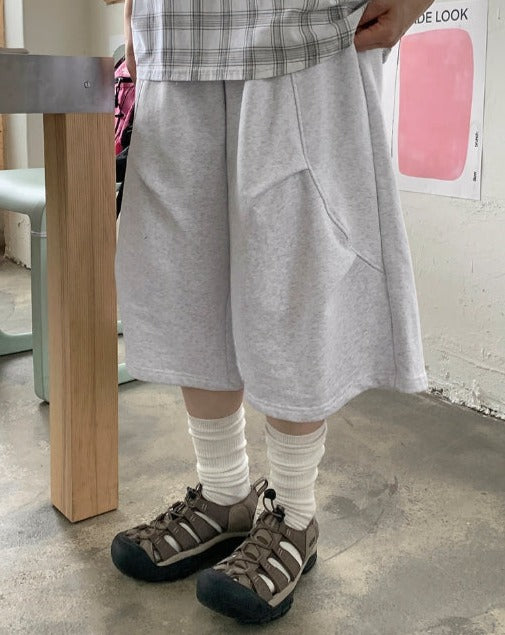 [UNISEX] Linty Banding Incised Pin-Tuck Bermuda Sweatpants