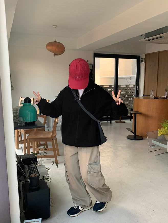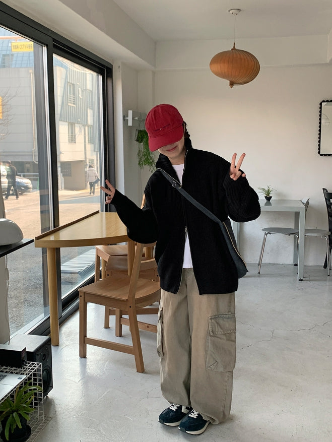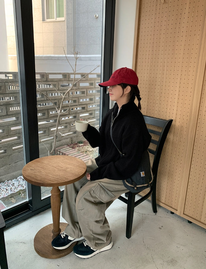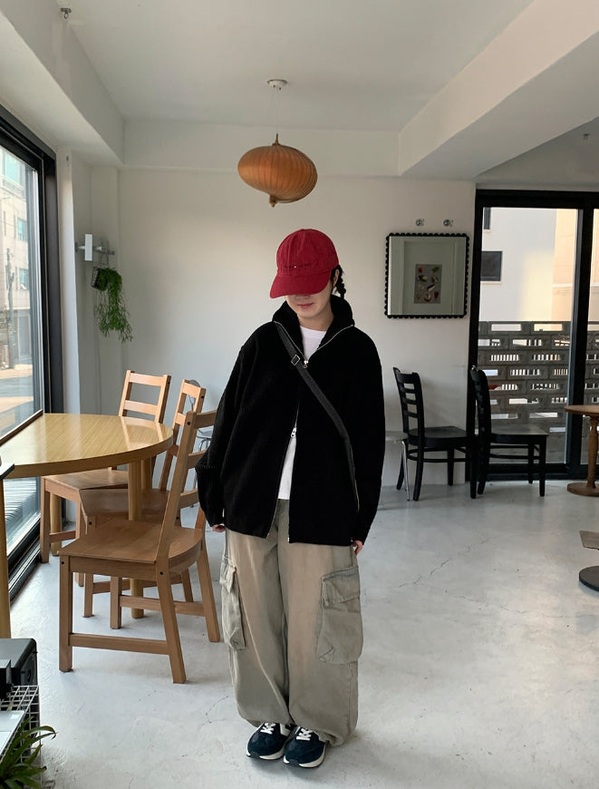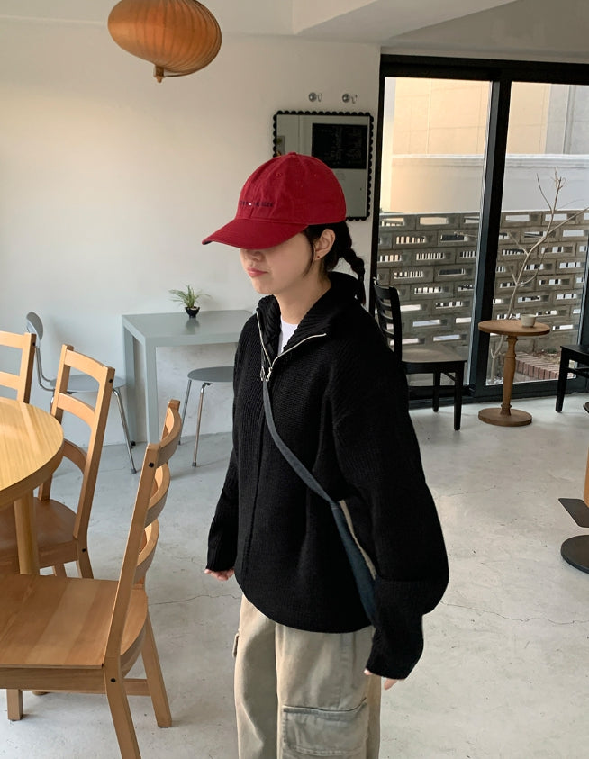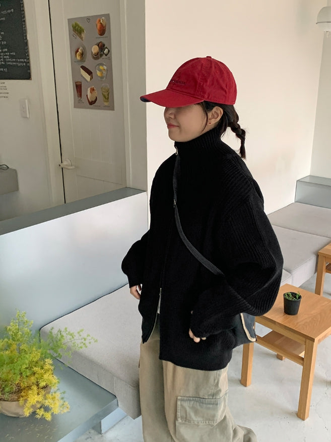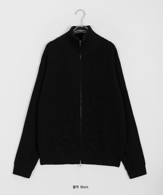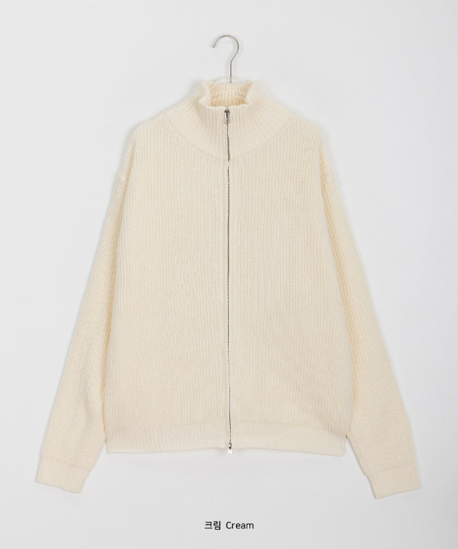 [unisex] Linve two-way high neck knit zip-up cardigan